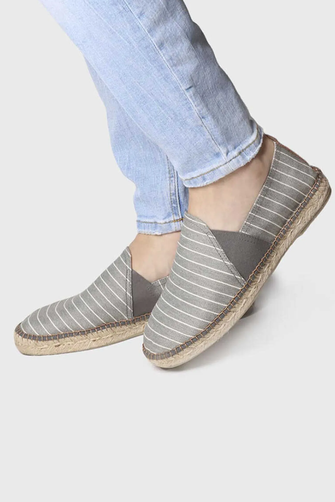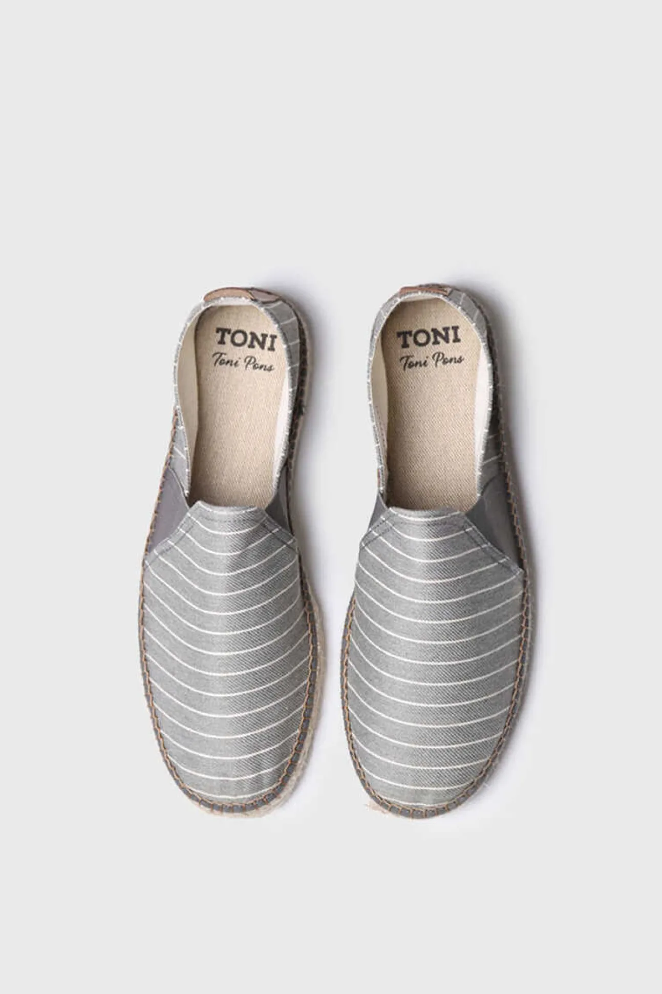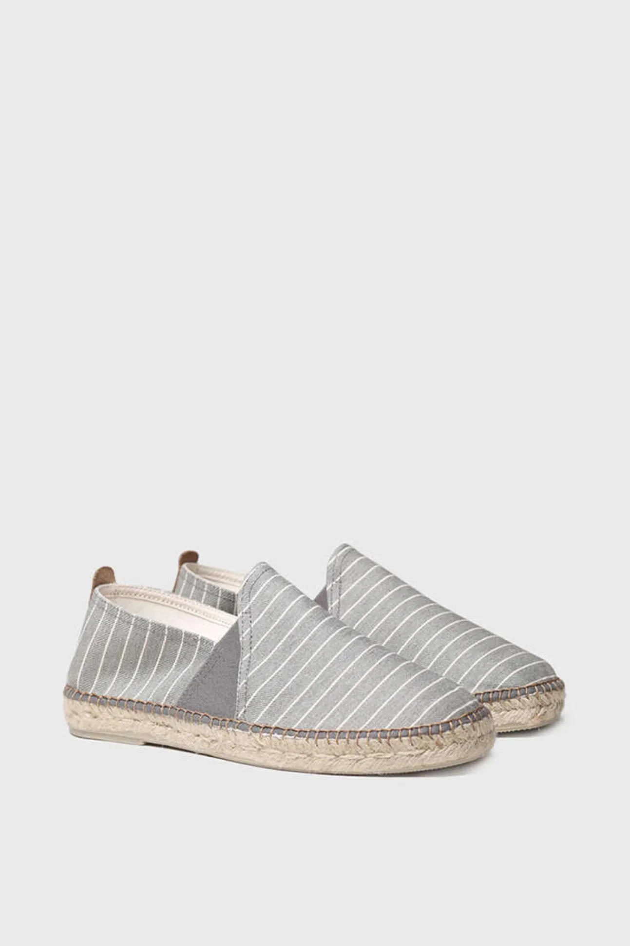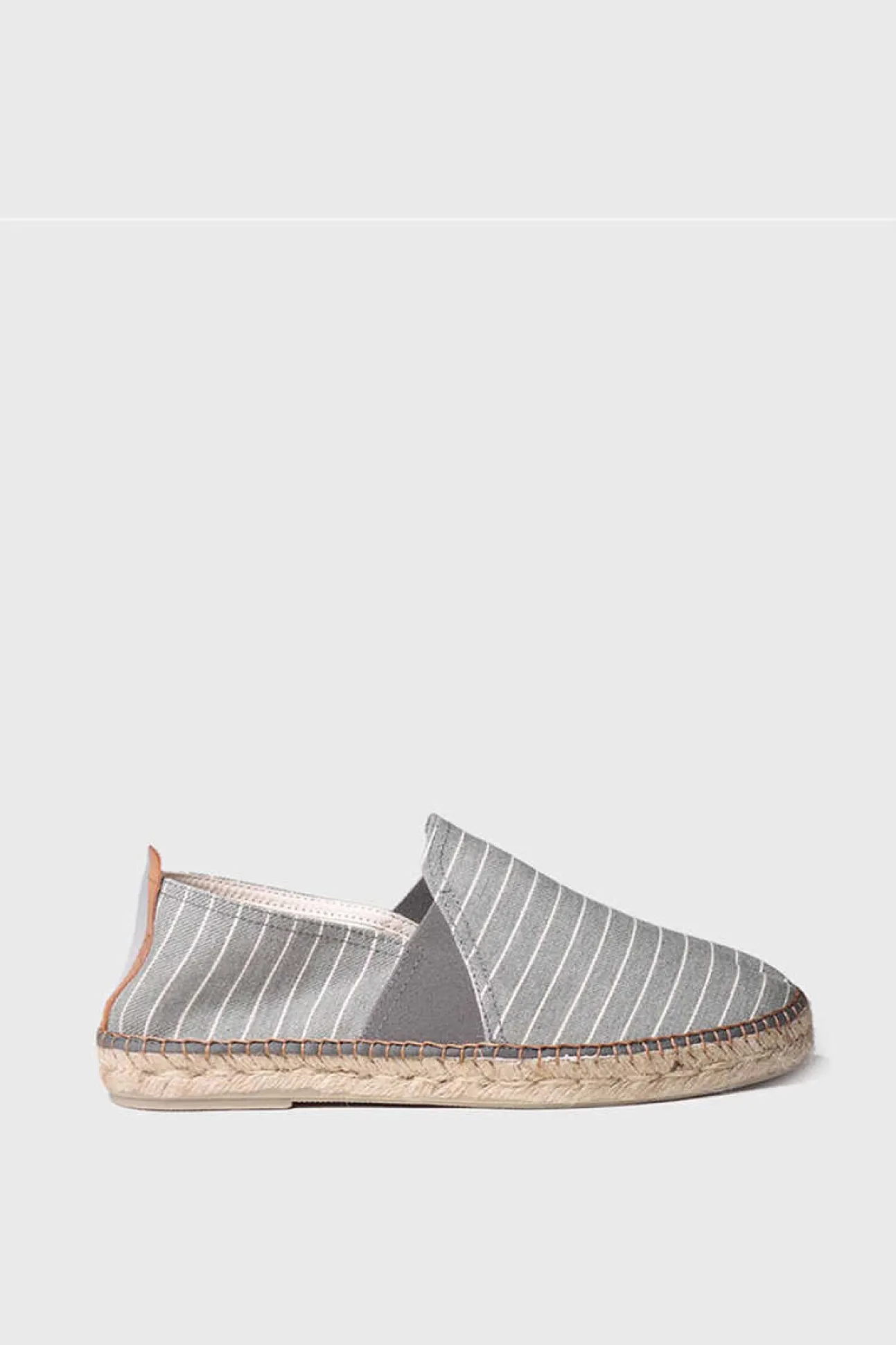 Dago-Sr Da Toni Pons. Classica Alpercata Para Homem Em Tecido De Algodao. Elaborada Em Tons Listrados Contrastando Os Elasticos Laterais E Uma Tira De Pele Na P … Arte Do Calcanhar. A Sola E Rasa, Feita De Juta E Borracha, E A Palmilha Interior E De Juta, Forrada De Tecido. A Uniao Do Tecido E Da Sola Esta Cosida A Mao Com Um Fio De Algodao De Alta Qualidade. Ver Mais