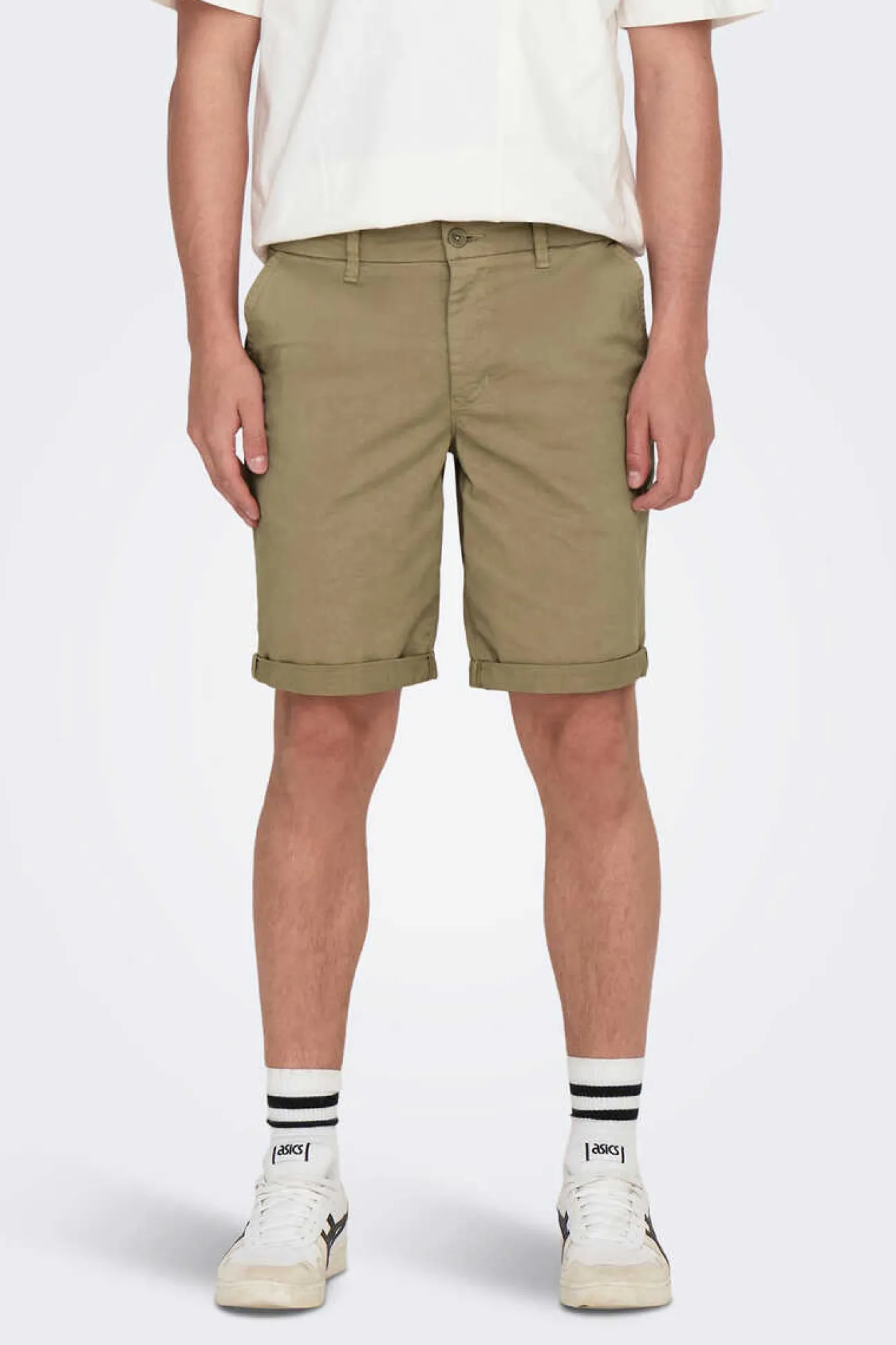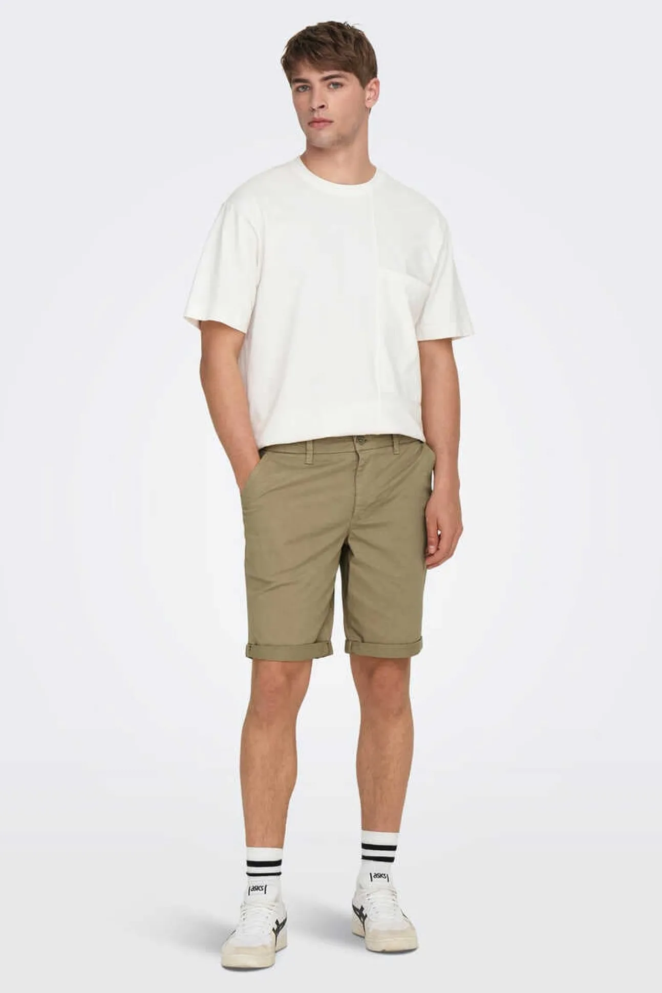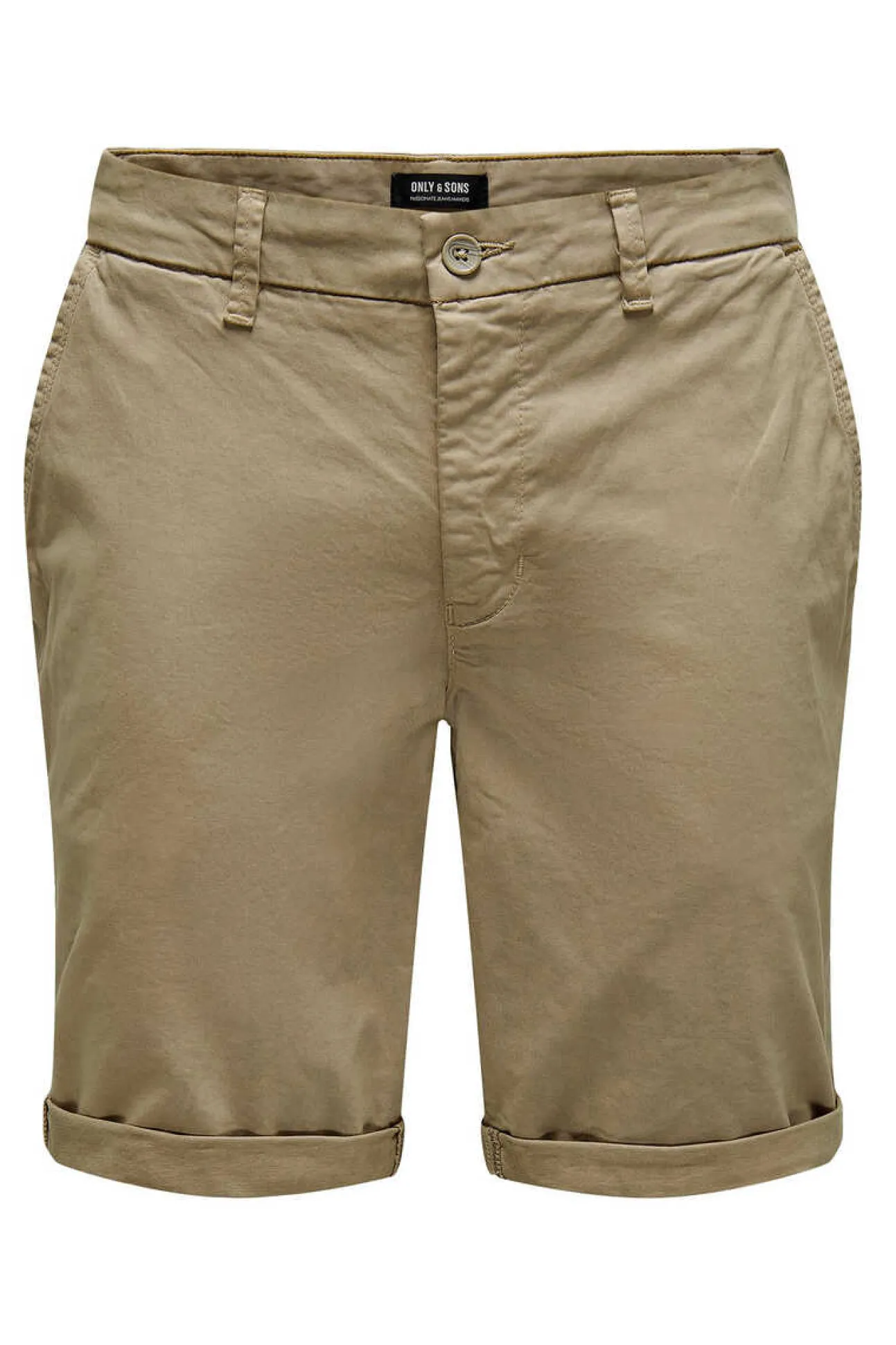 Bermuda Estilo Chino, Fecho De Botao E Fecho-Eclair, Bolsos Com Debruns Traseiros E Bainha Com Dobra
