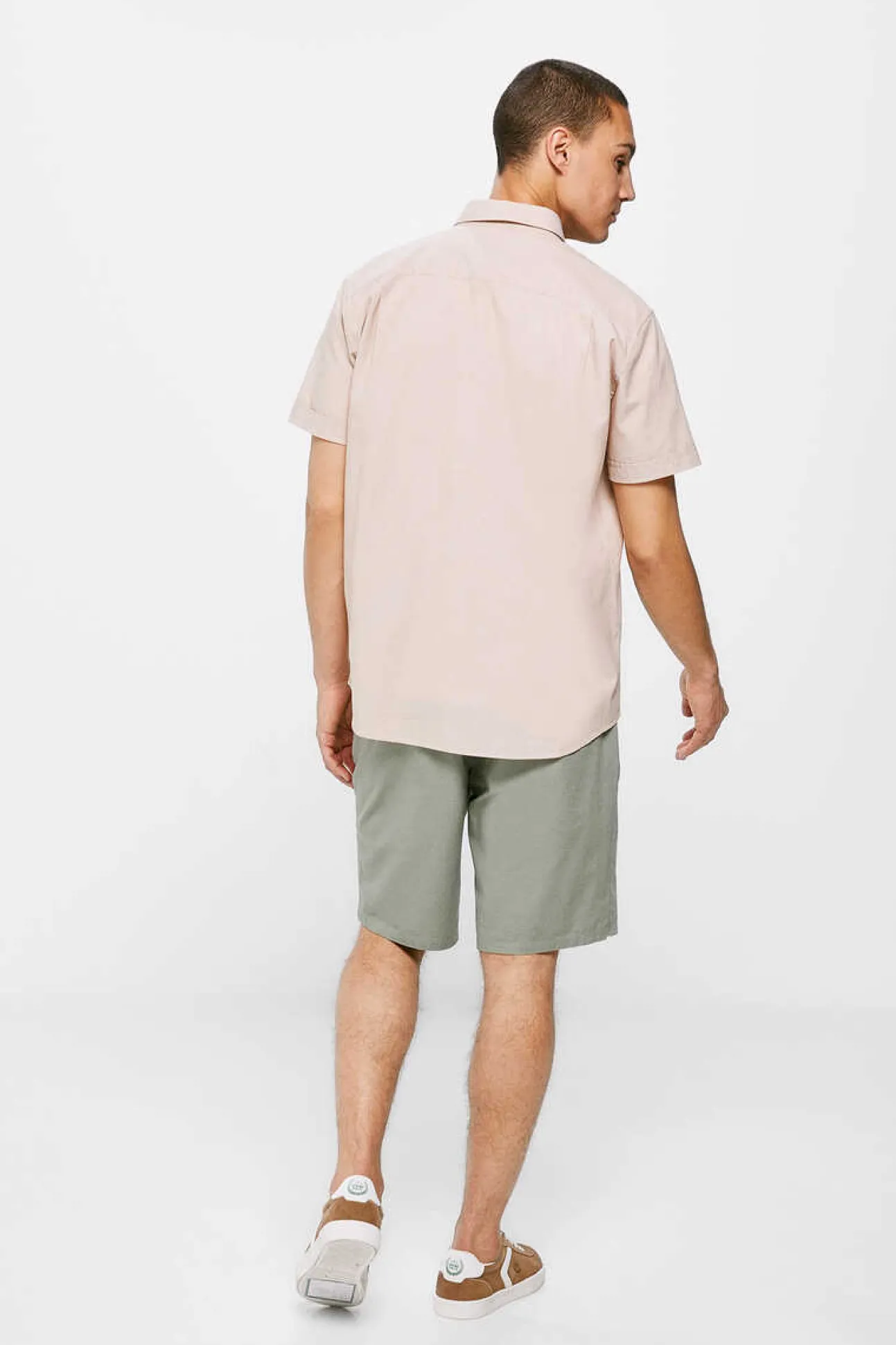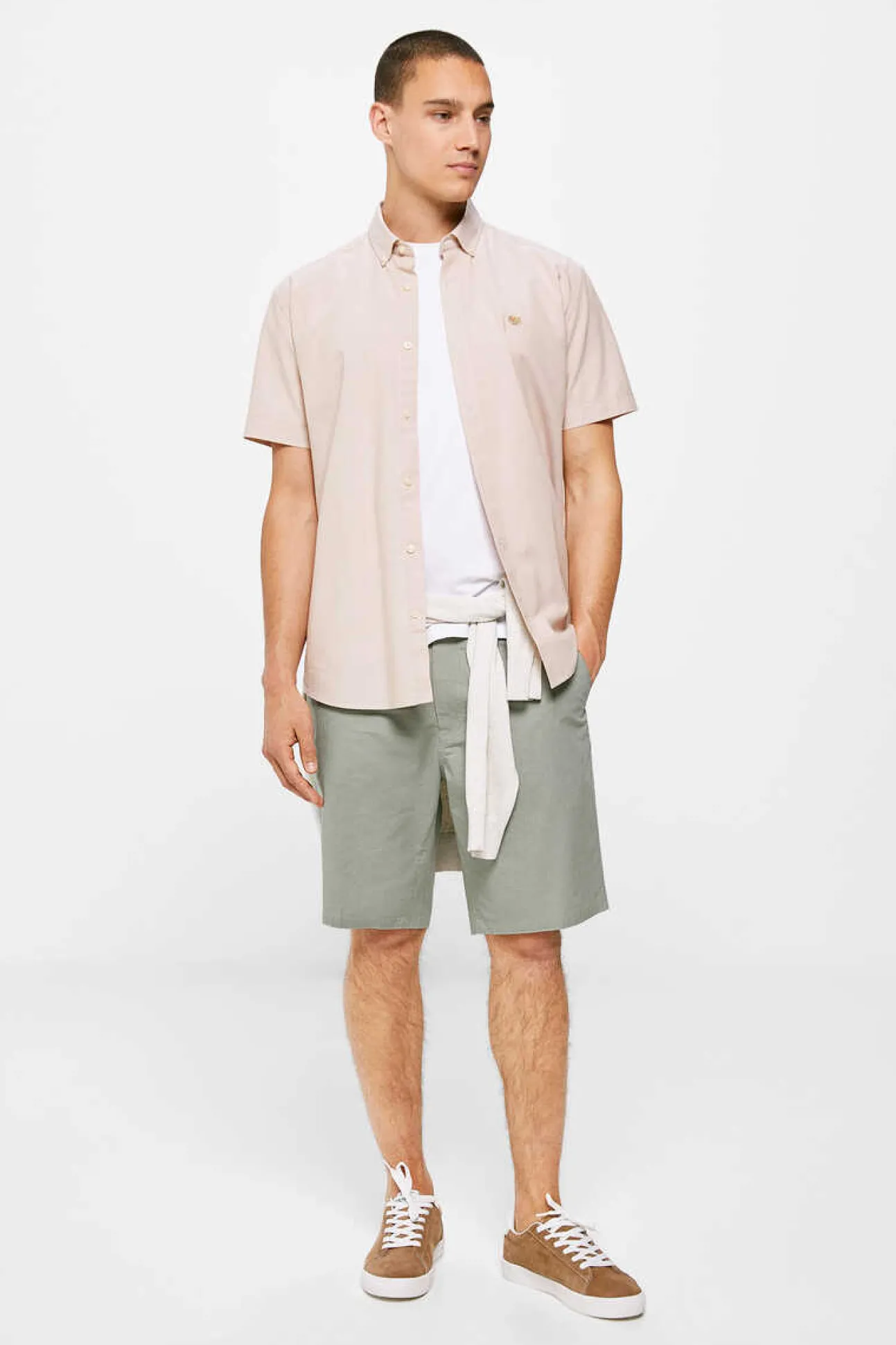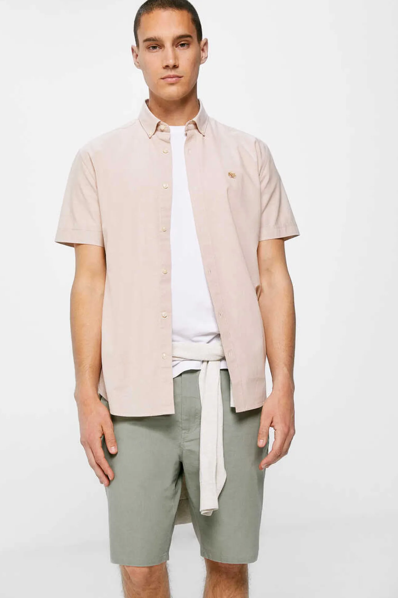 Bermuda Chino Em Tecido Leve Com Aspeto De Linho. Com Etiqueta Da Marca Em Pele. Fecho De Botao Na Cintura E Fecho-Eclair Na Braguilha. Projeto Reconsider.