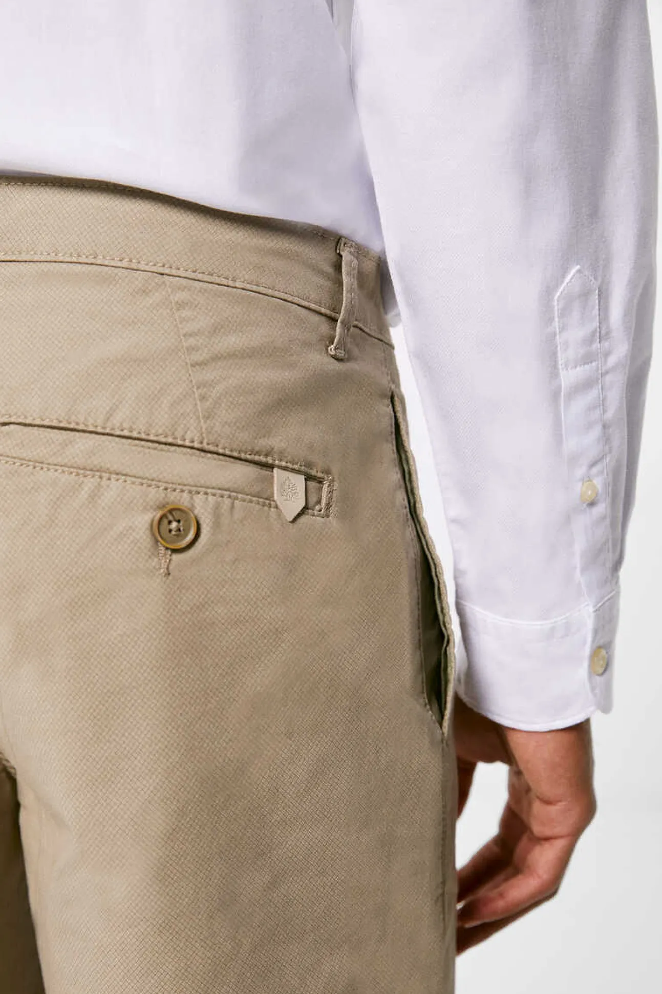 Bermudas Chino Em Tecido De Algodao Elastico Micro Estampado Tom Sobre Tom. Bolsos Laterais Nas Costuras E Etiqueta De Pele Com Arvore Gravada. Fecho De Botao N … A Cintura E Fecho-Eclair Na Braguilha. Colecao Reconsider.Ver Mais