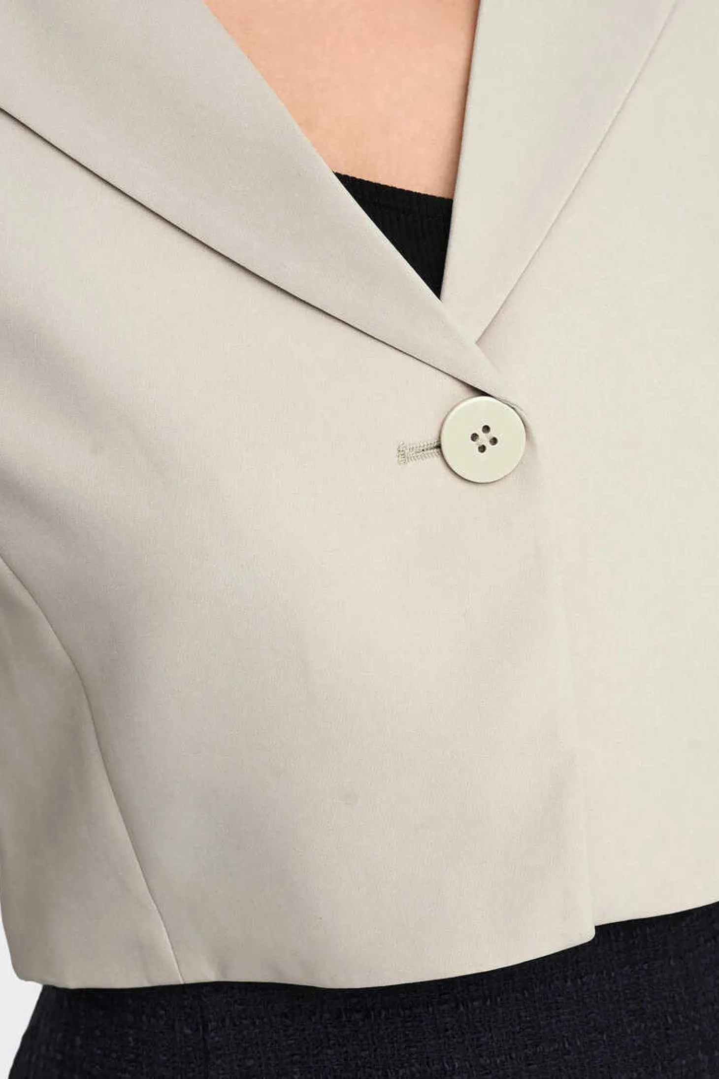 Blazer Crop Com Fecho De Botao Na Parte Central E Gola De Lapelas.