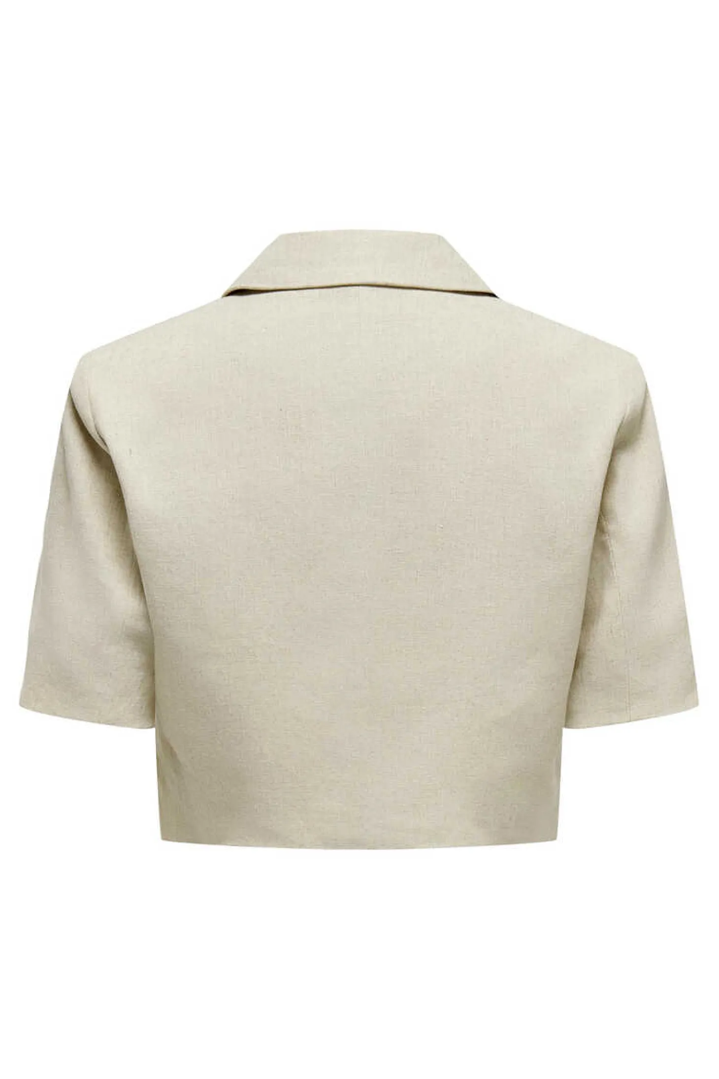 Blazer Curto De Mistura De Linho Com Mangas Curtas. Gola De Lapelas E Fecho Frontal Com Botao. Contem Linho.