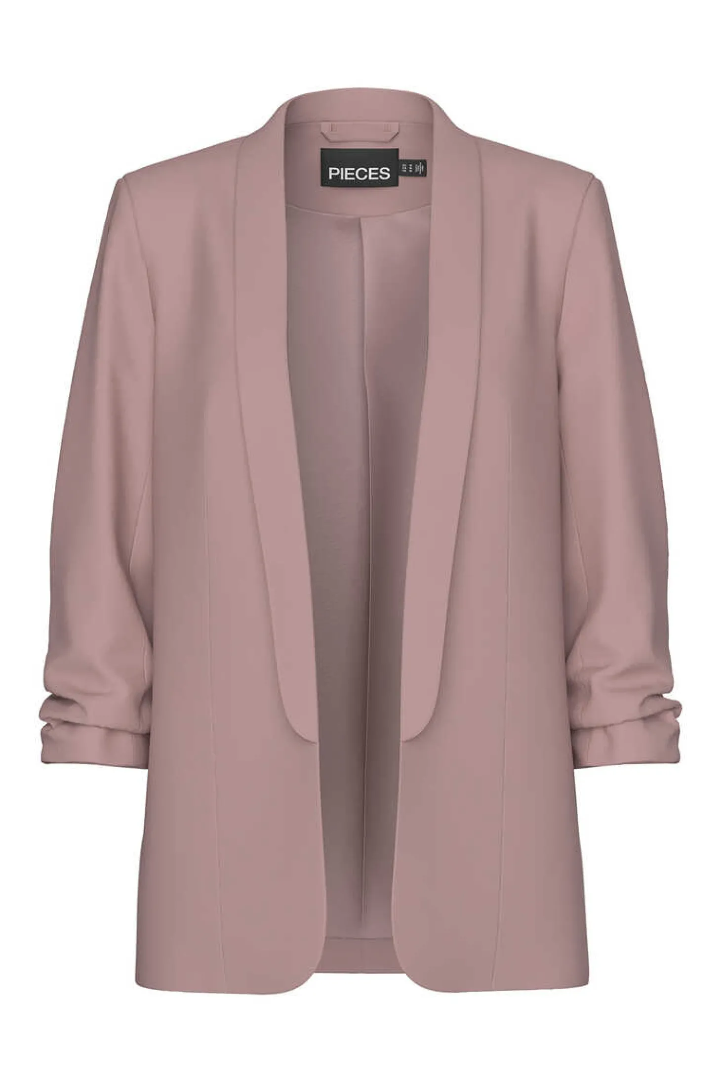 Casaco Estilo Blazer Fluido, De Manga 3/4. Com Lapelas, Sem Botoes.