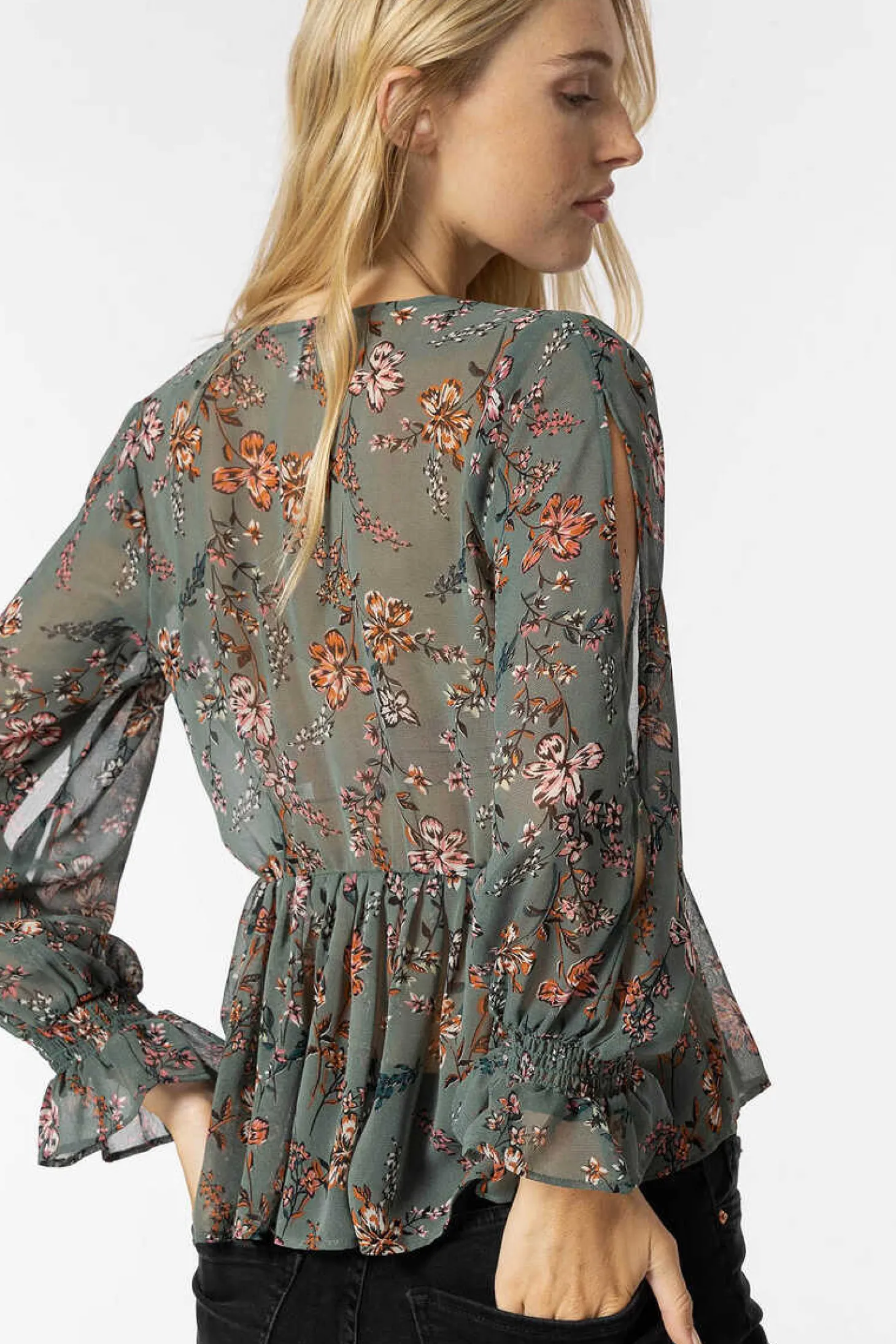 Blusa De Decote Cruzado Com Detalhe De Folhos E Manga Comprida. Elastico Nos Punhos E Cintura. Estampado All Over. Altura Modelo: 178 Cm | Tamanho: S