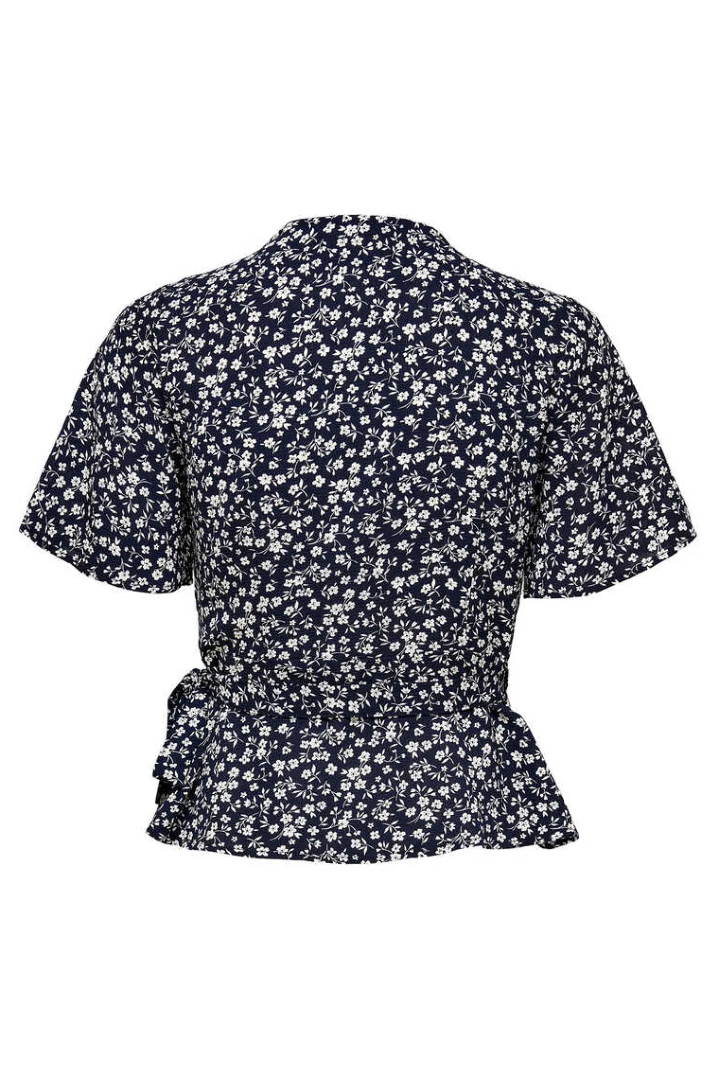 Blusa Cruzada Com Laco Lateral, Folho E Decote Em Bico. Manga Curta.