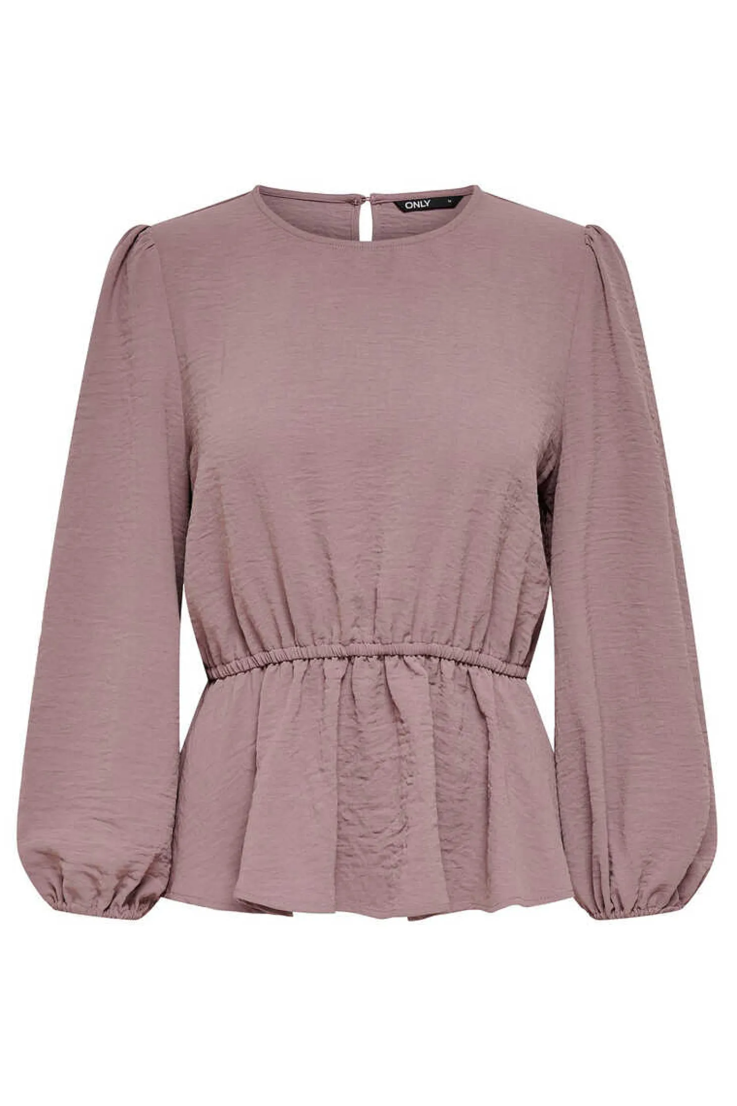 Blusa De Gola Redonda, Manga Comprida E Franzida Na Cintura.
