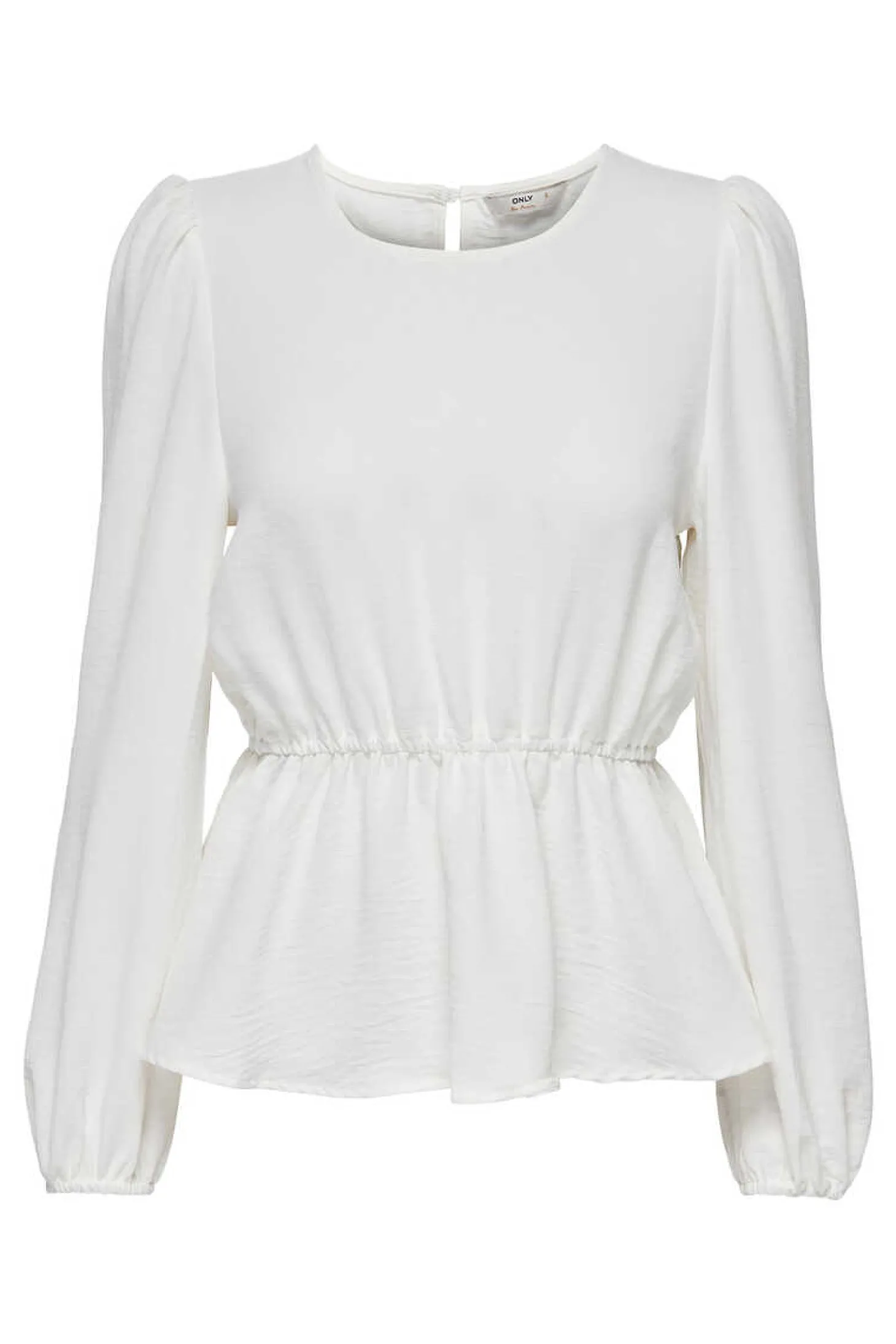 Blusa De Gola Redonda, Manga Comprida E Franzida Na Cintura.