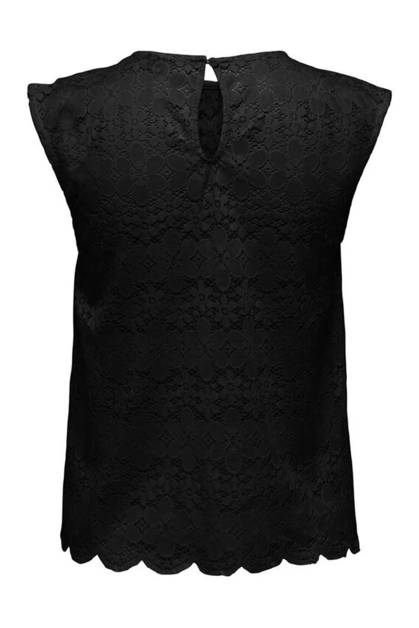 Blusa De Renda Sem Mangas, Com Detalhe De Folho Na Frente E Fecho De Botao Traseiro.