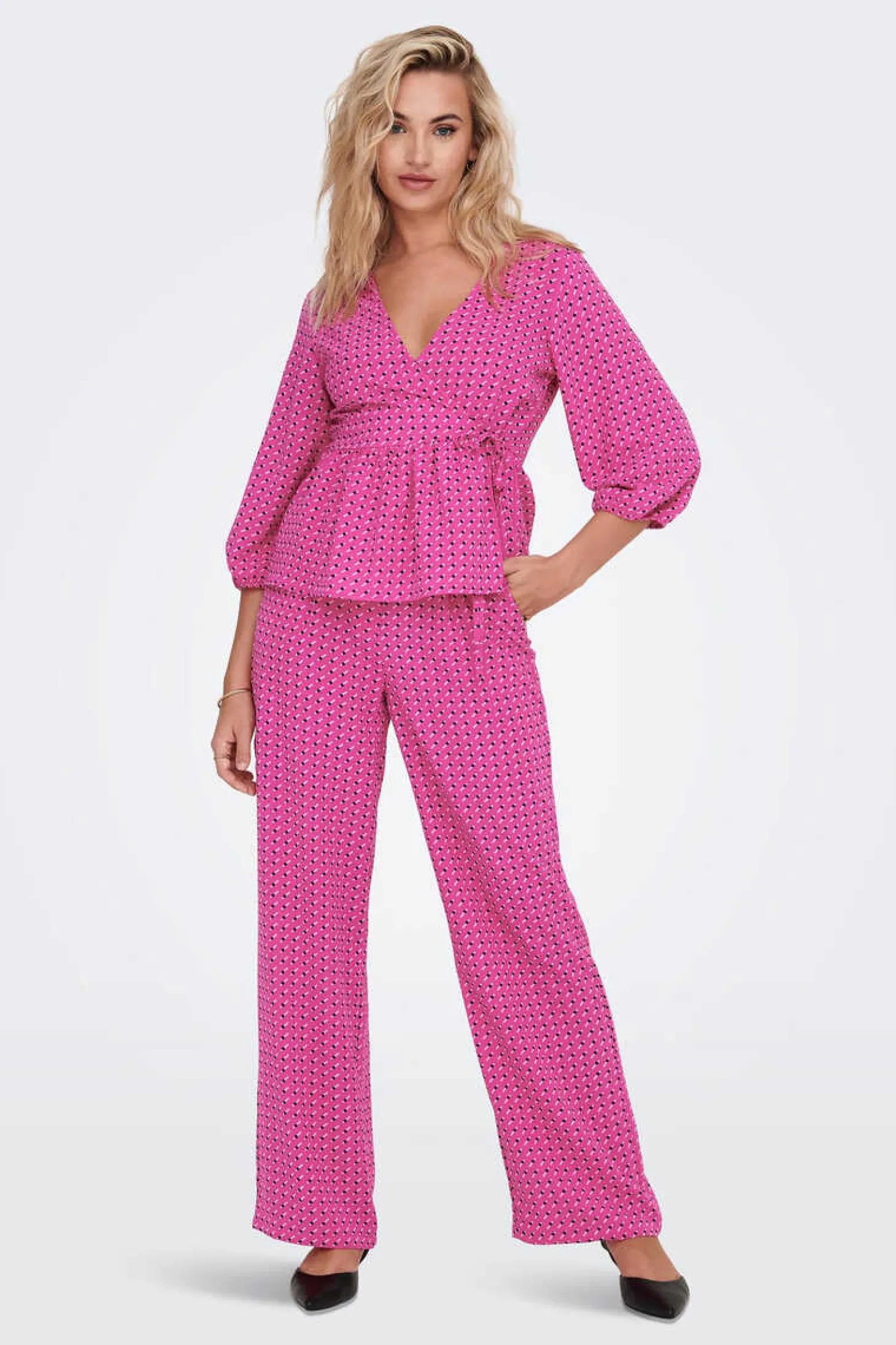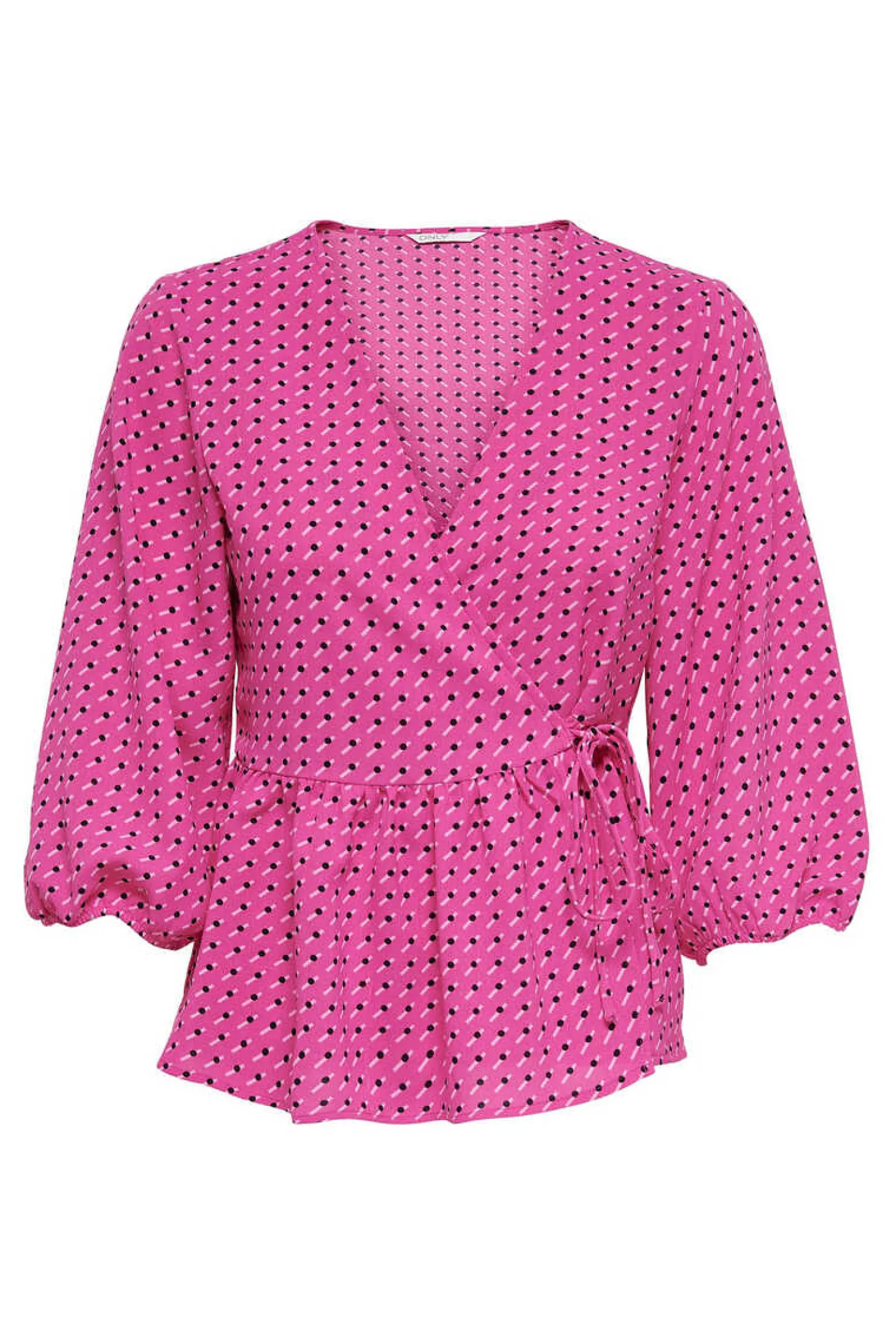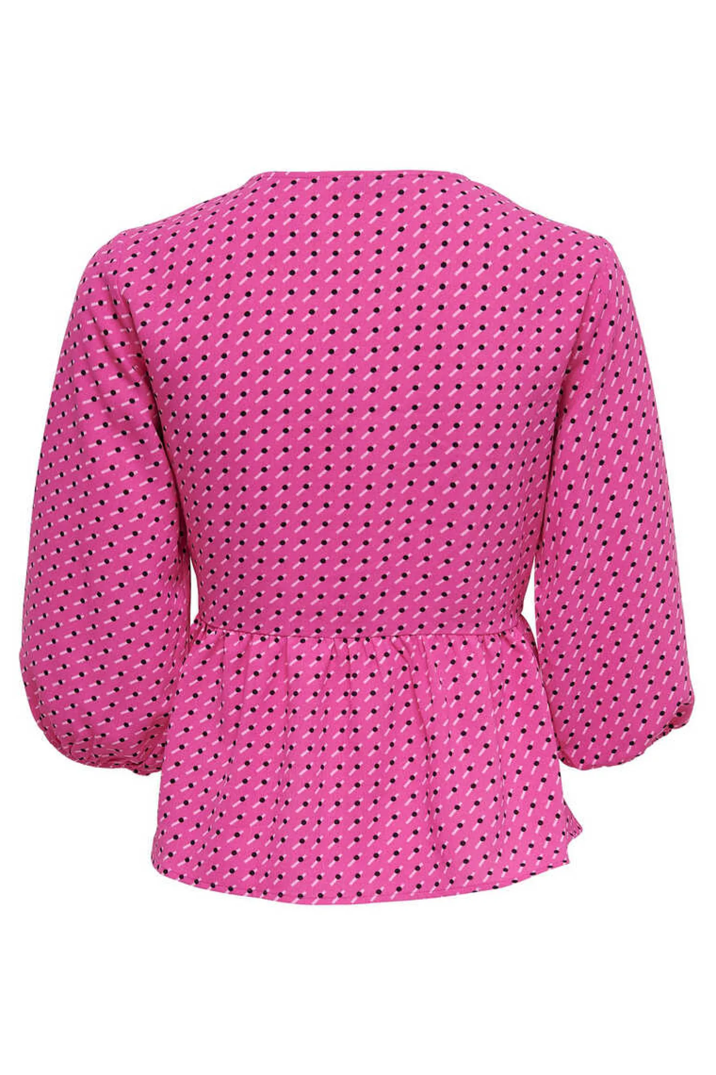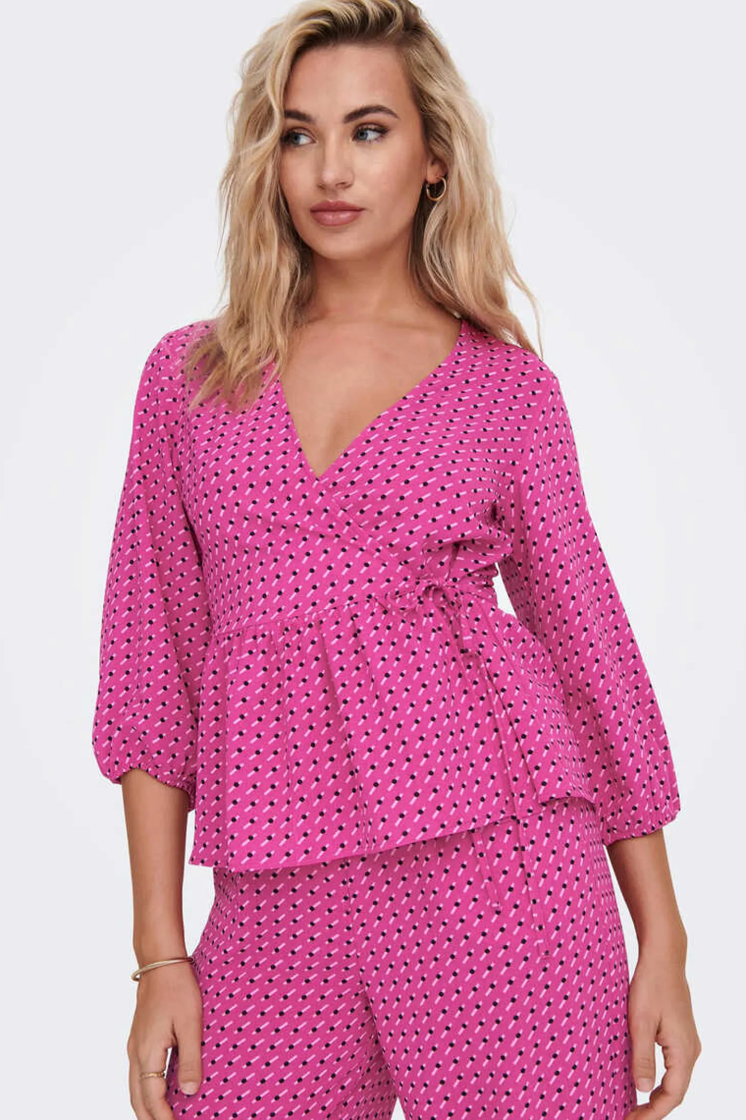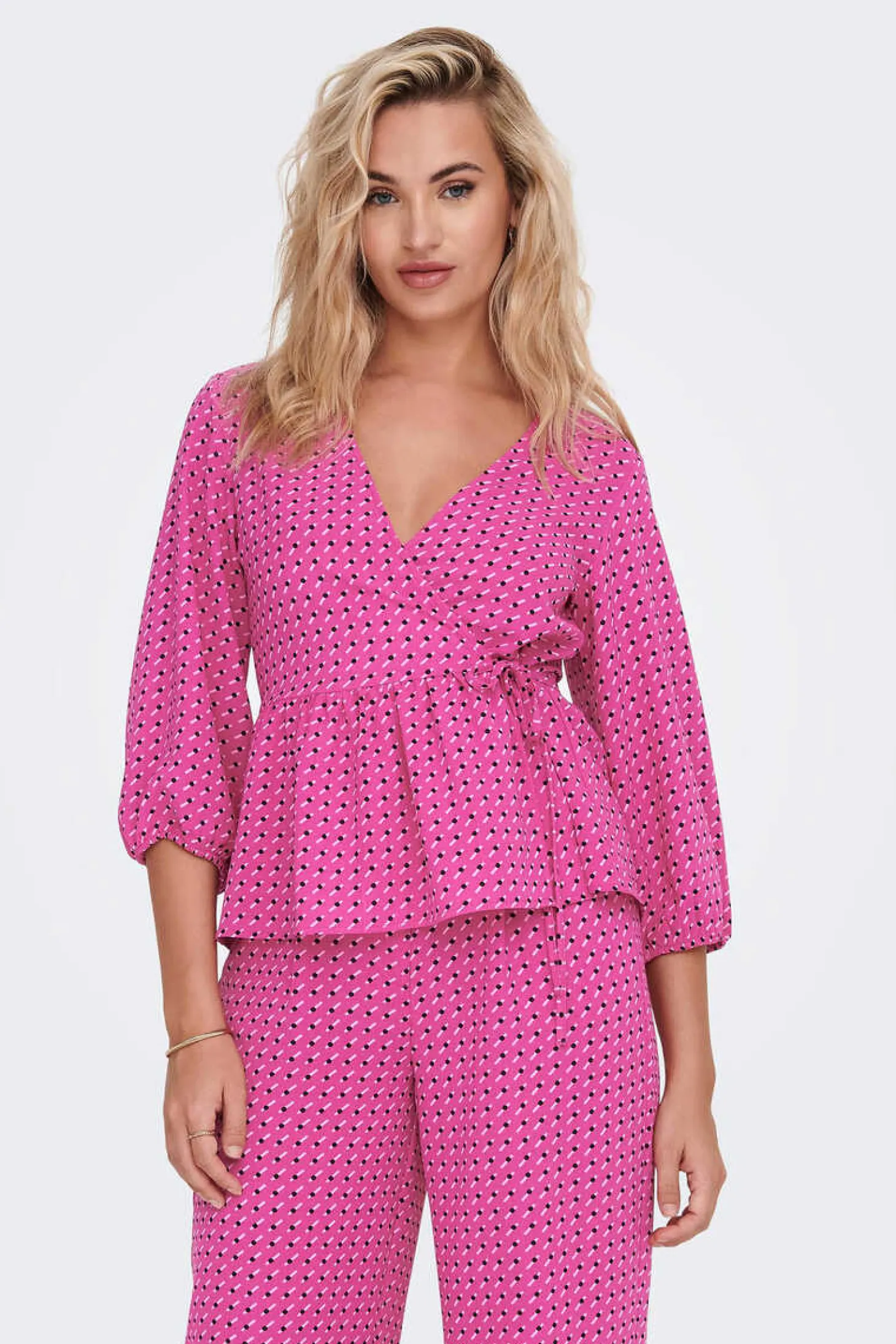 Blusa De Manga 3/4 Com Gola Em V Cruzado E Detalhe Franzido Na Cintura.