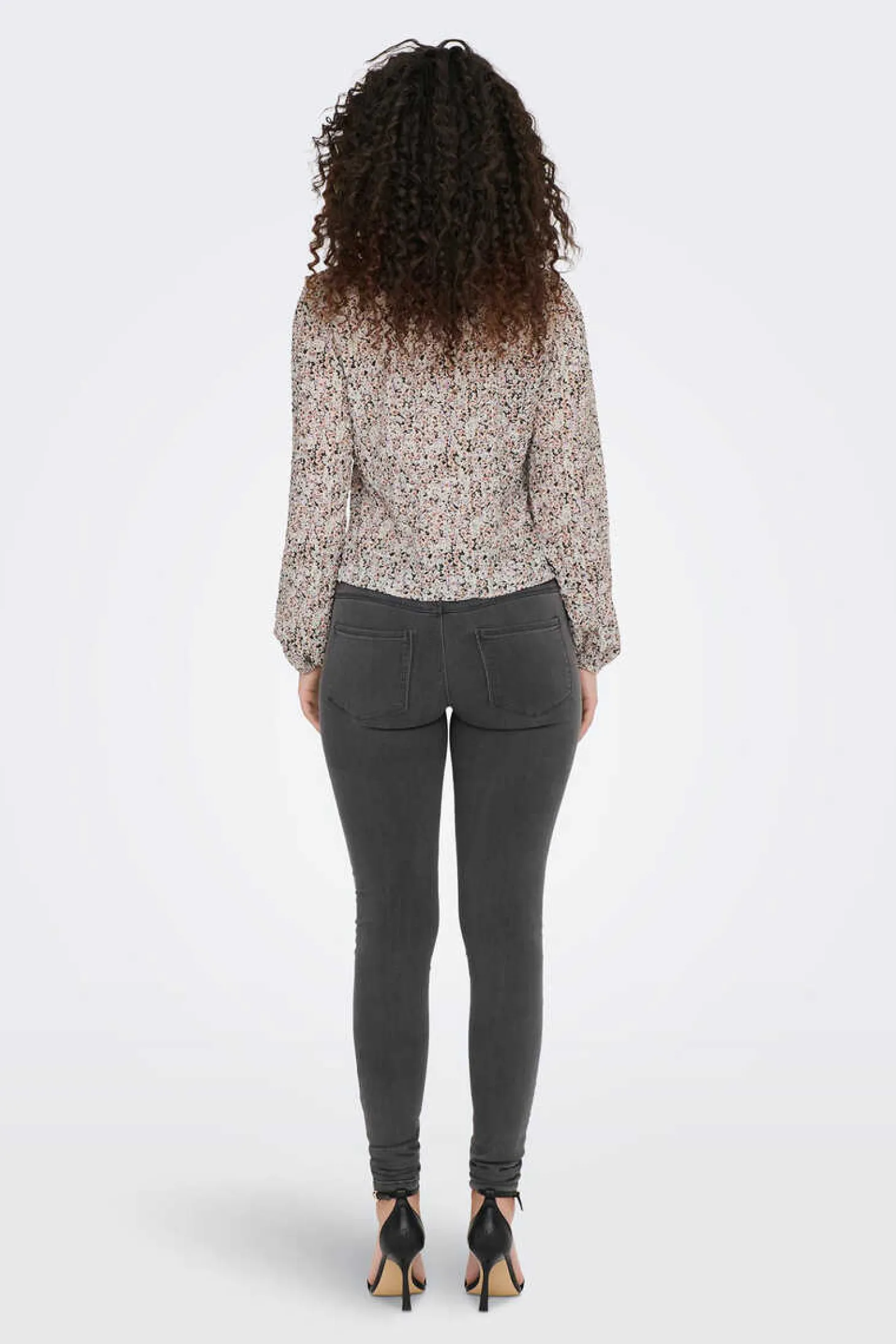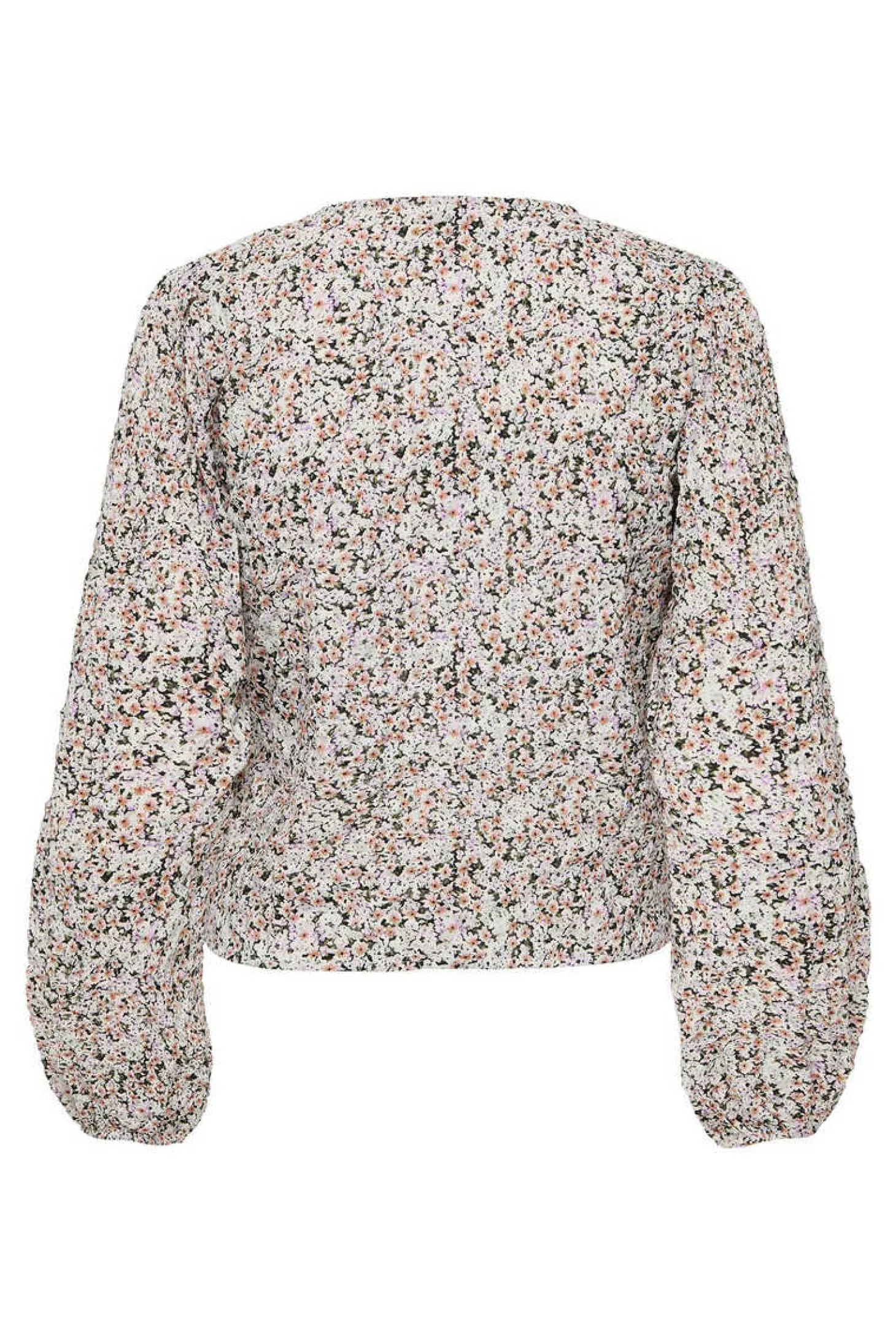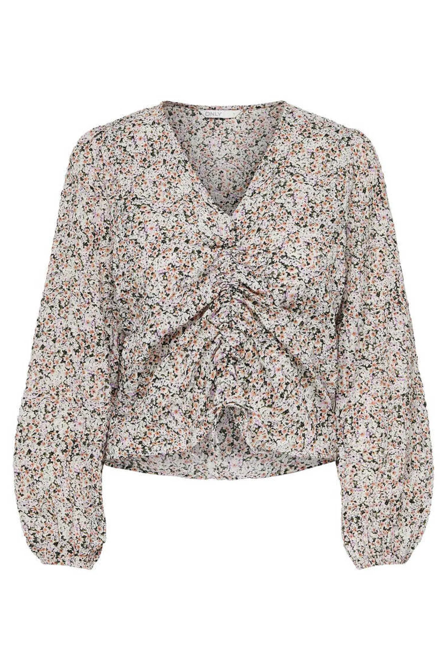 Blusa De Manga Comprida Com Gola Em Bico E Franzido A Frente.