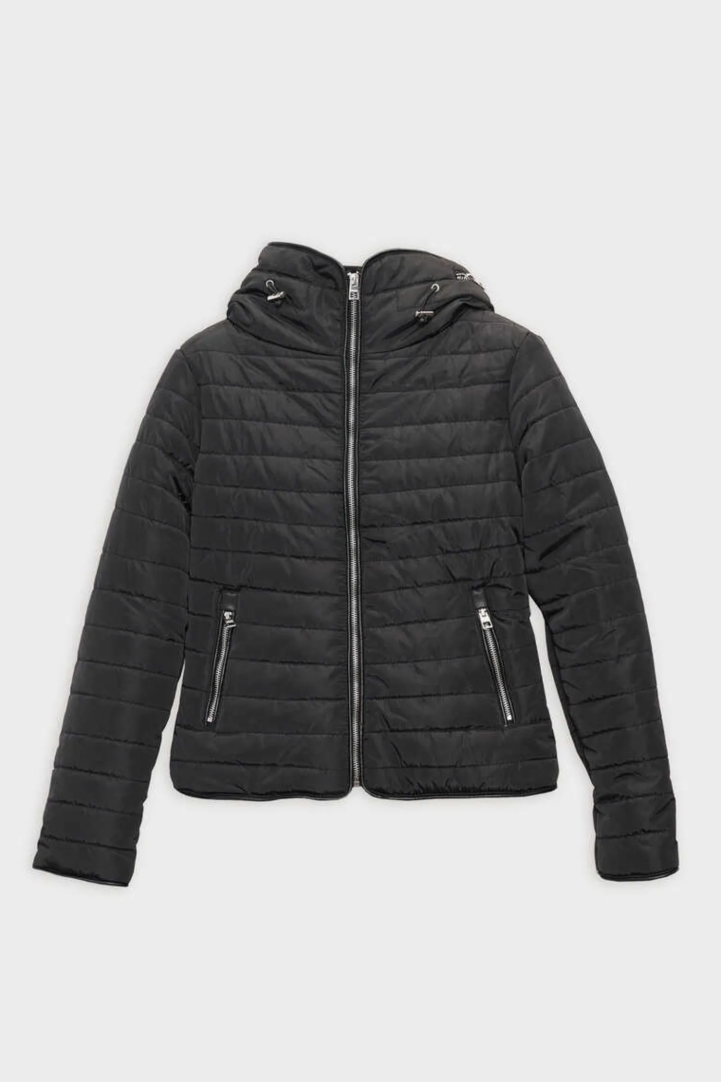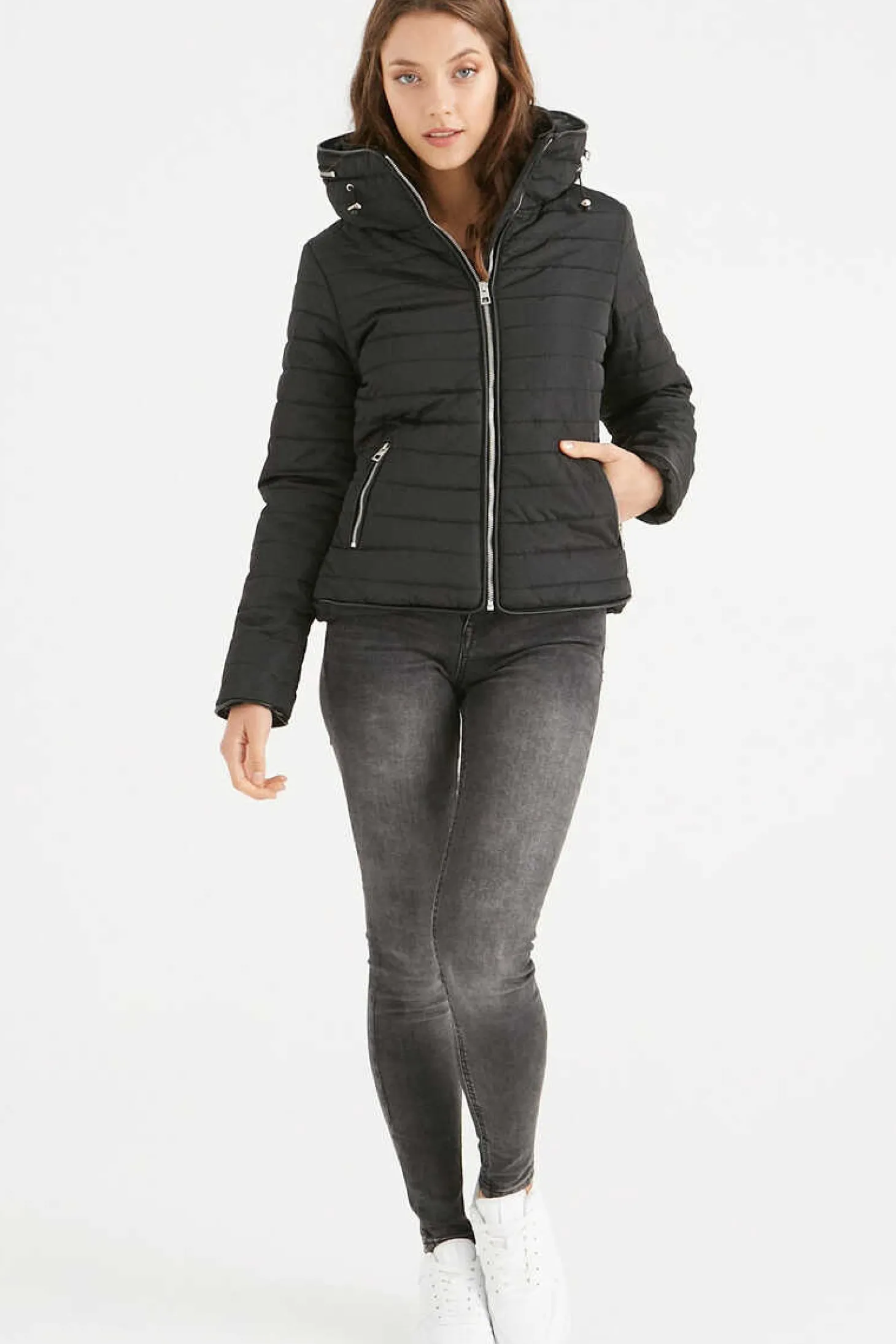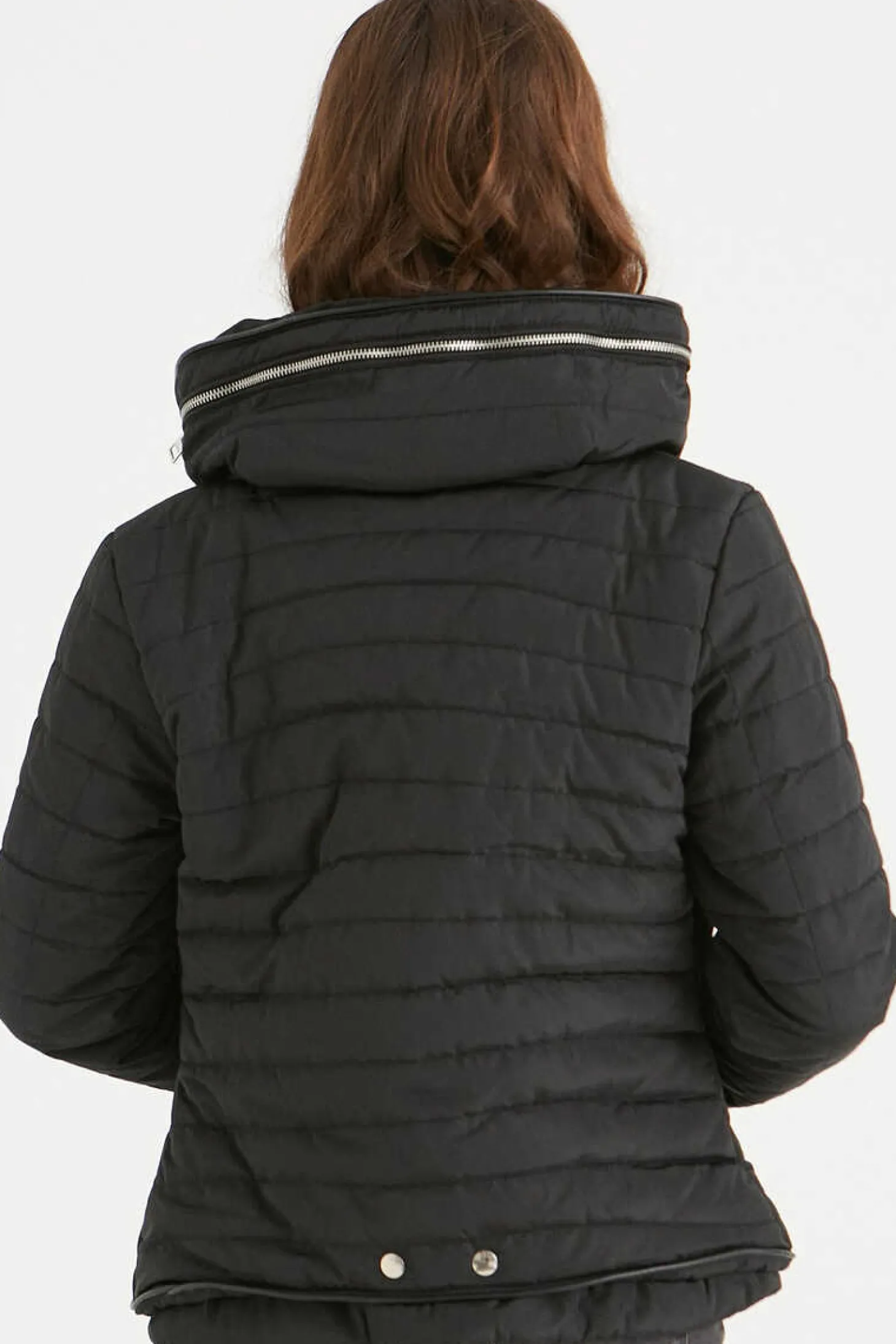 Sobretudo Slim Acolchoado, De Manga Comprida E Gola Alta, Com Capuz Com Bolso E Fecho-Eclair.