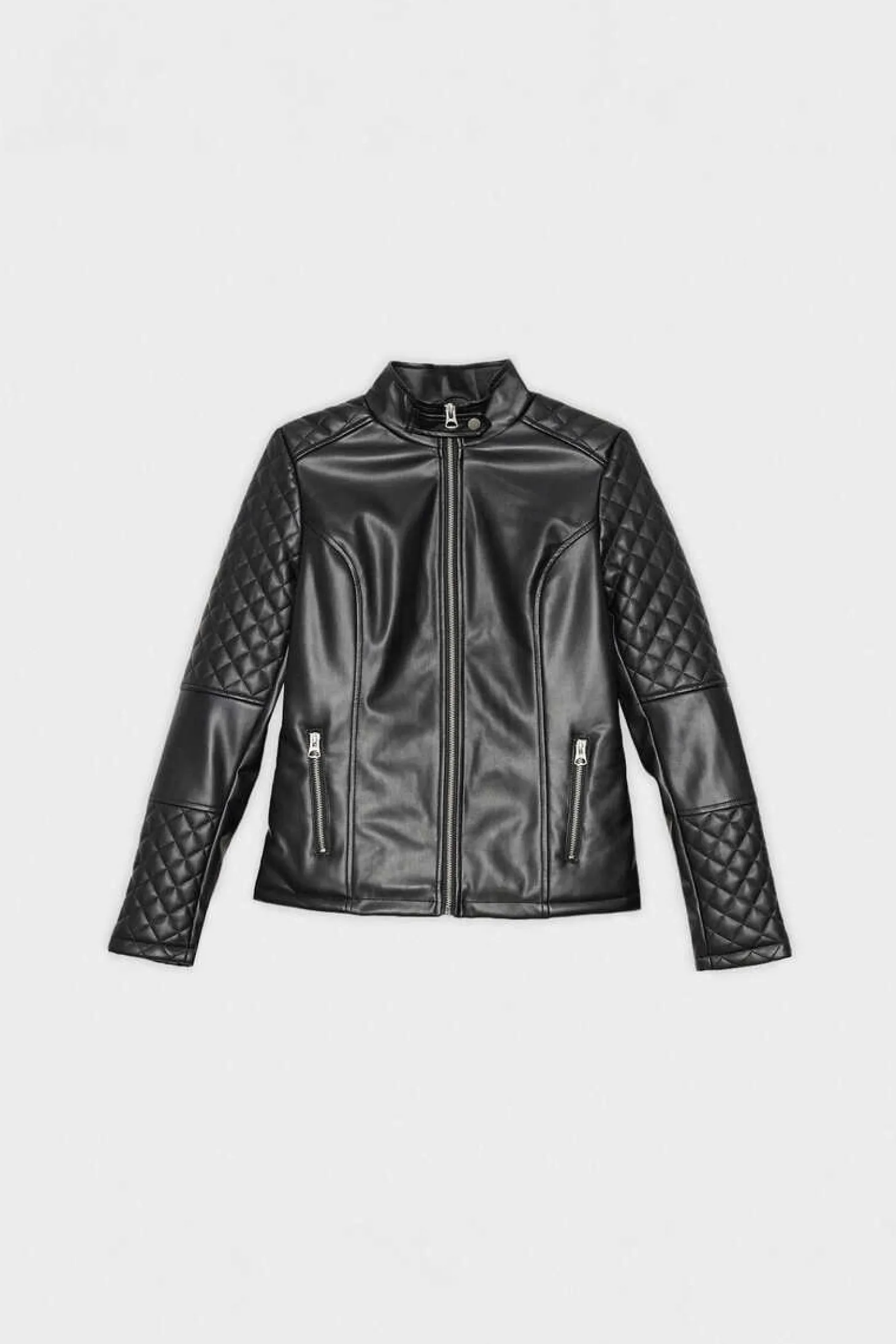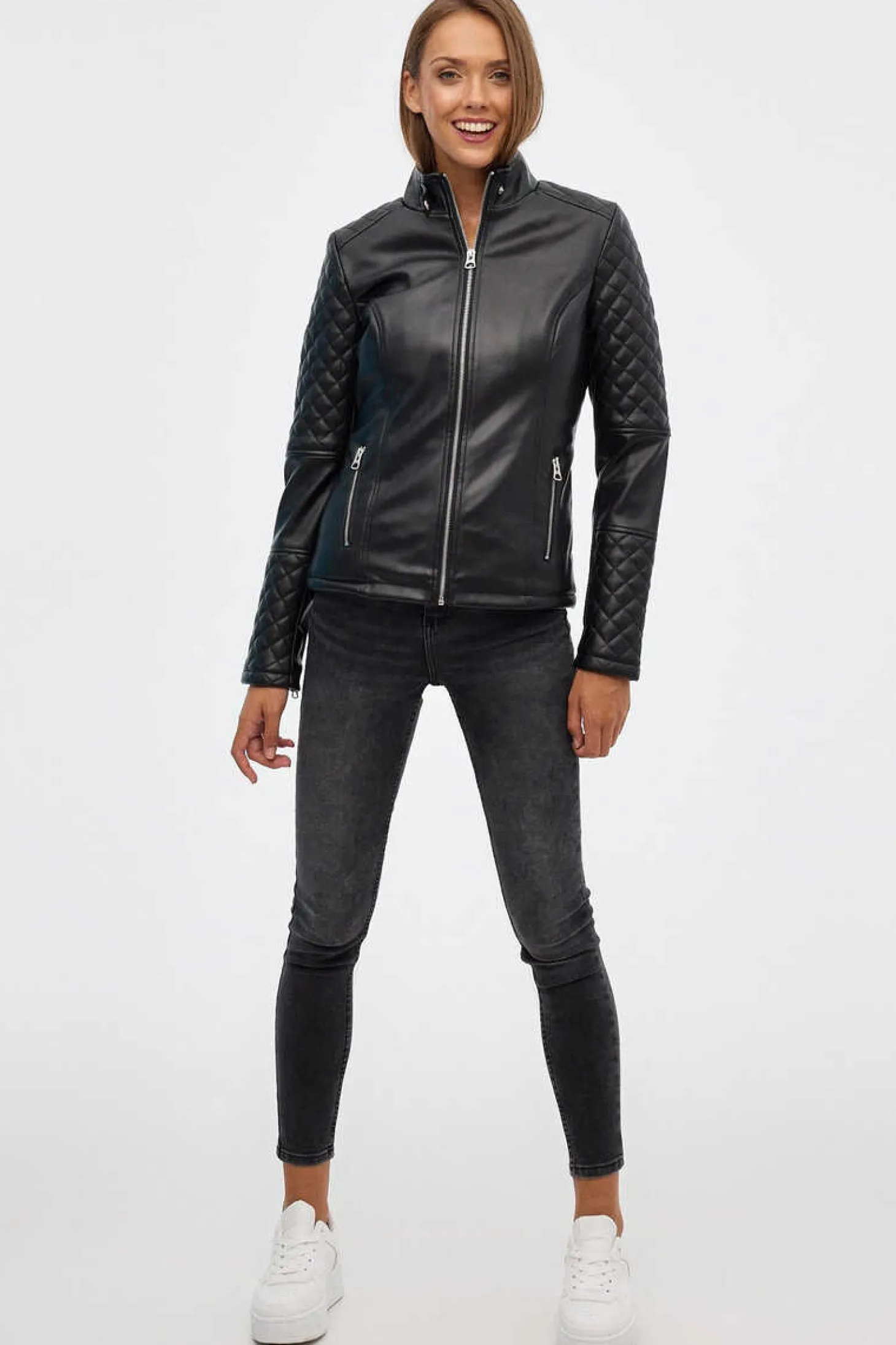 Blusao Slim De Polipele De Manga Comprida E Gola Alta Com Fecho-Eclair E Botao Com Bolsos.