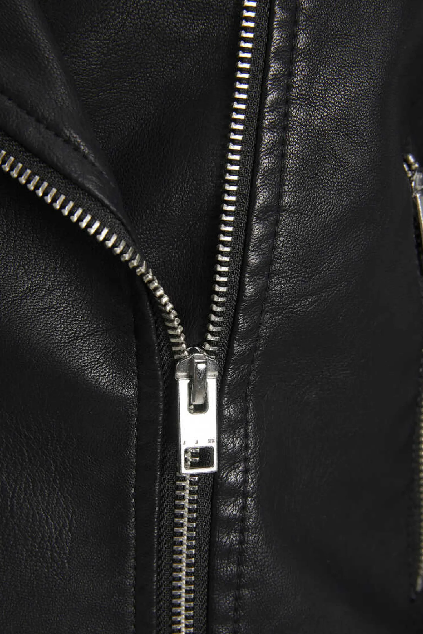 Blusao Biker Preto De Mulher Com Detalhes De Fechos-Eclairs E Adornos De Metal Prateado. Material Tipo Pele, Que Garante Qualidade E Durabilidade. Bolsos Latera … Is Com Fecho-Eclair E Forro A Condizer. Ver Mais