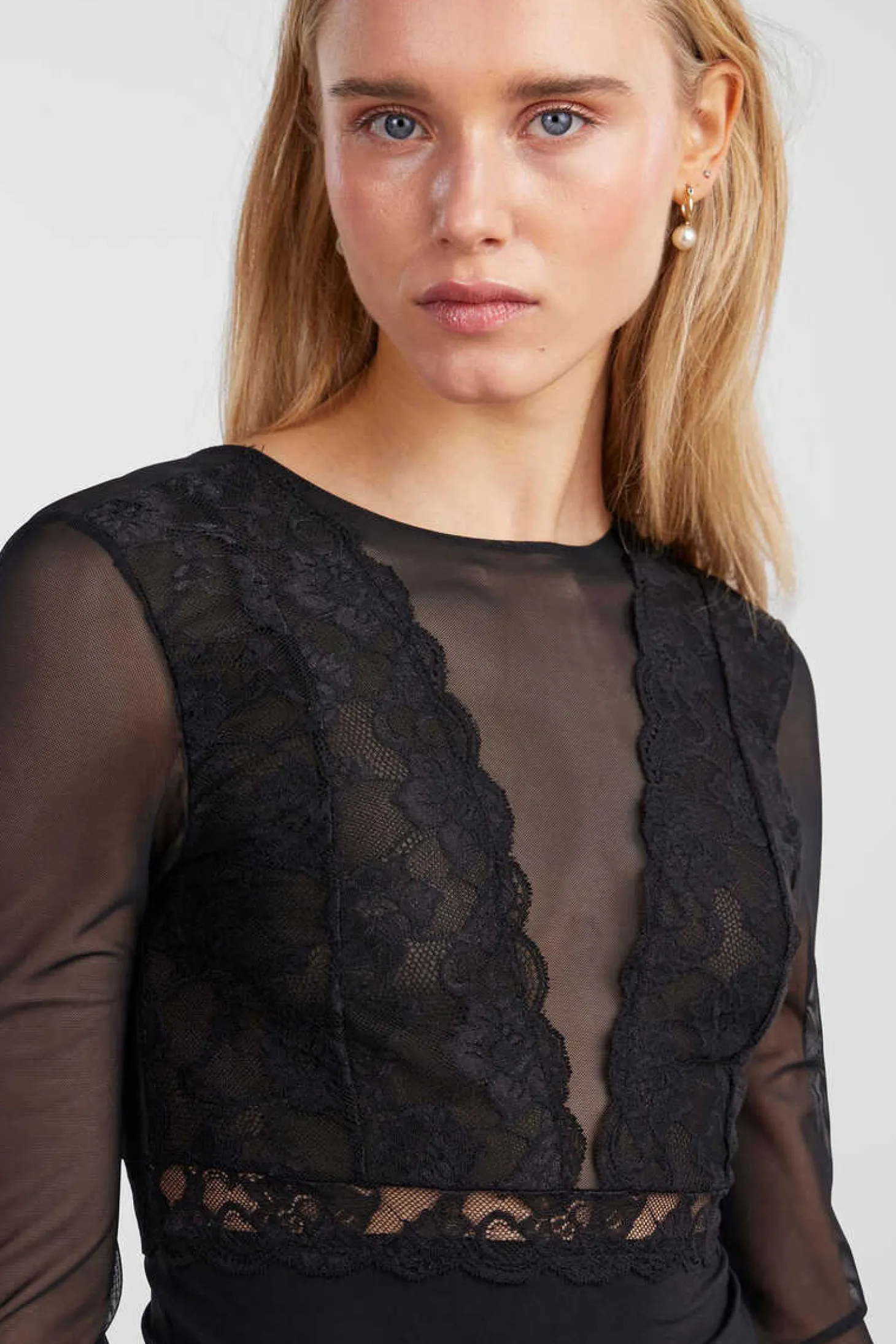 Body De Corte Tanga, De Manga Comprida, Decote Lingerie E Costas Fechadas. Fecho Traseiro Com Botao.