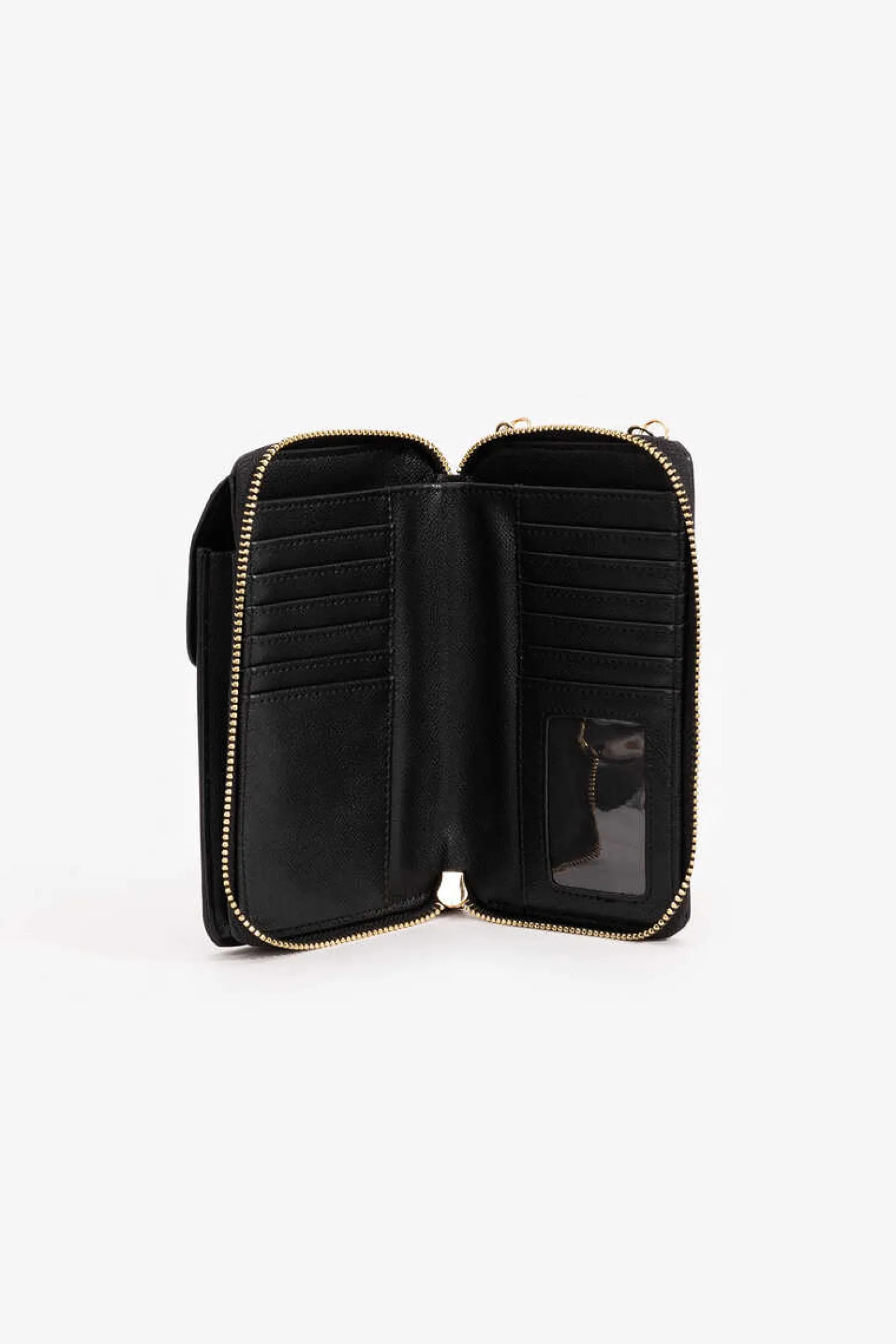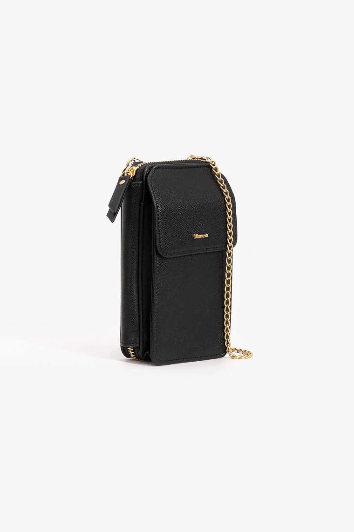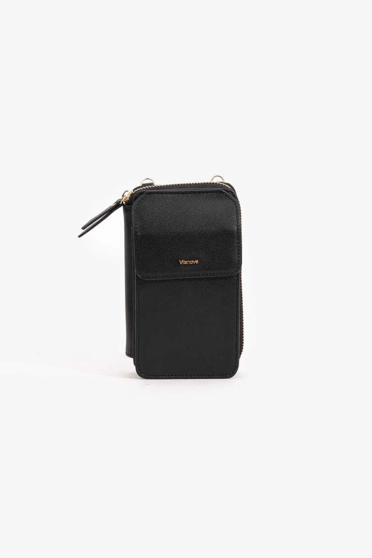 Bolsa Para Telemovel Com Alca Corrente Com Abertura Com Pala Com Botao E Fecho De Correr Superior. Compartimento Para Cartoes No Interior.