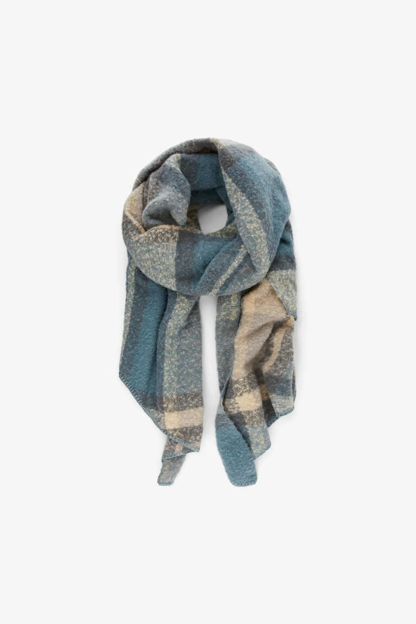 Cachecol Comprido De Tato Suave Com Acabamento Assimetrico E Estampagem De Xadrez.