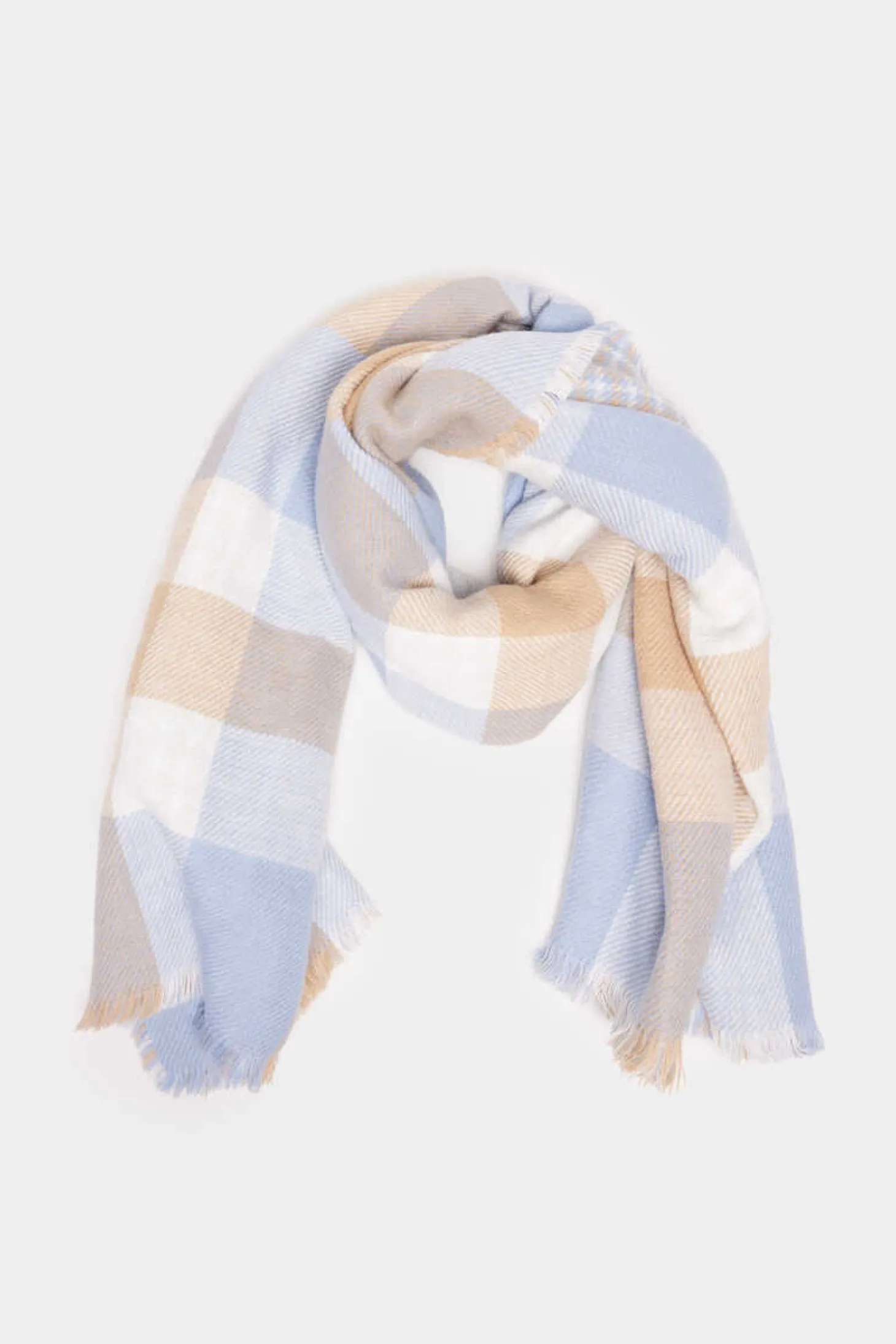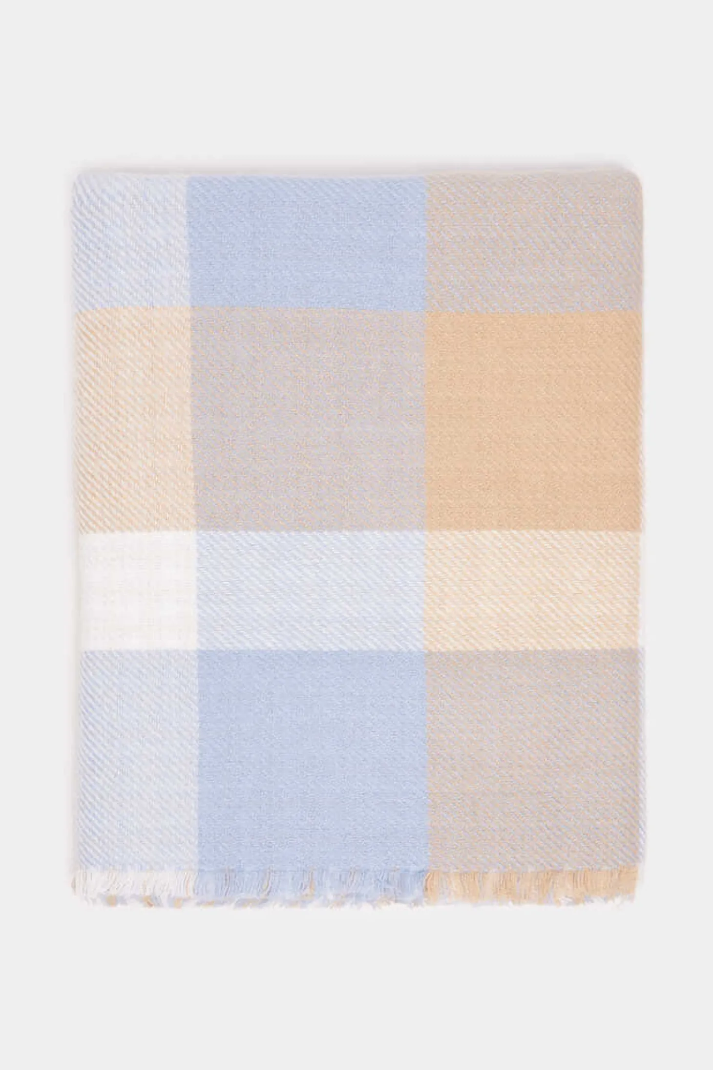 Cachecol Grosso De Quadrados Grandes Num Lado E Quadrados Pequenos Noutro Em Tons Mcastanhos, Com Detalhe De Franjas Laterais.