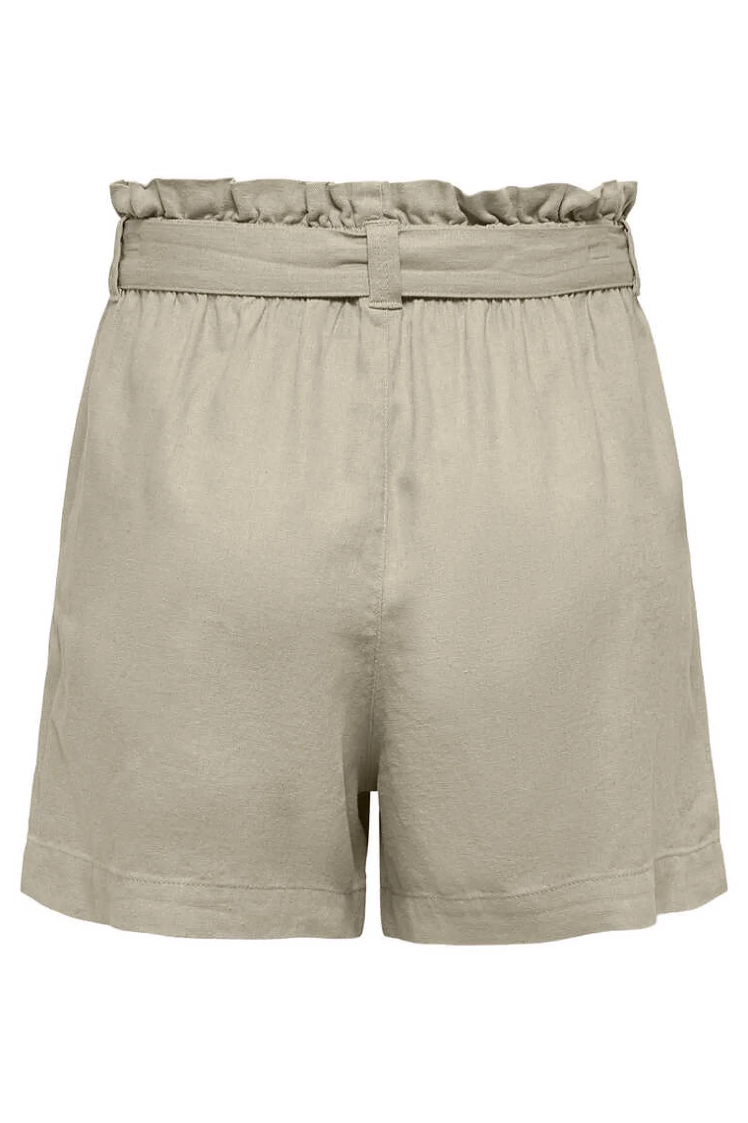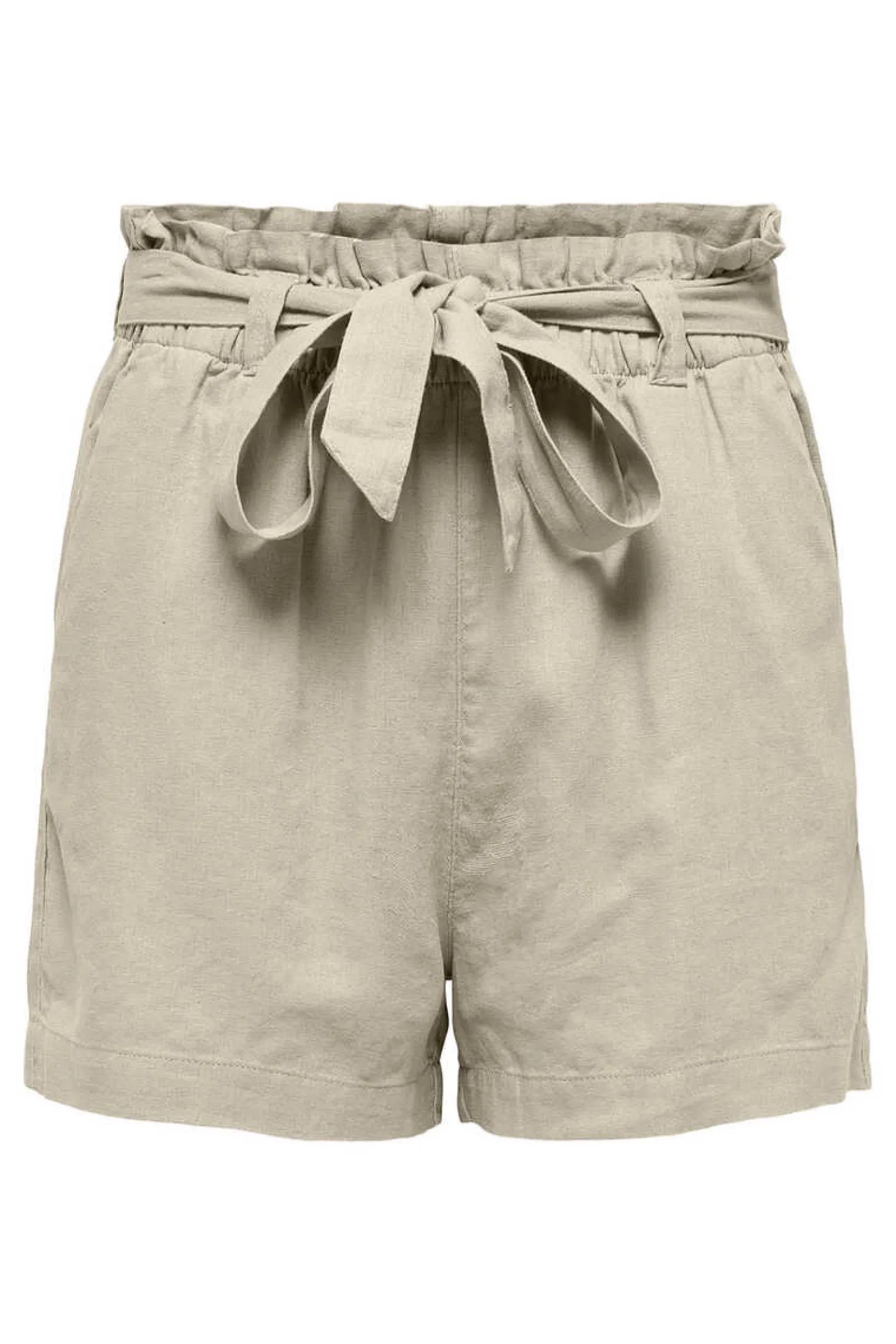 Calcoes De Mistura De Linho Fluido De Corte Alto Com Cintura Elastica E Cinto De Lacada Do Mesmo Tecido.