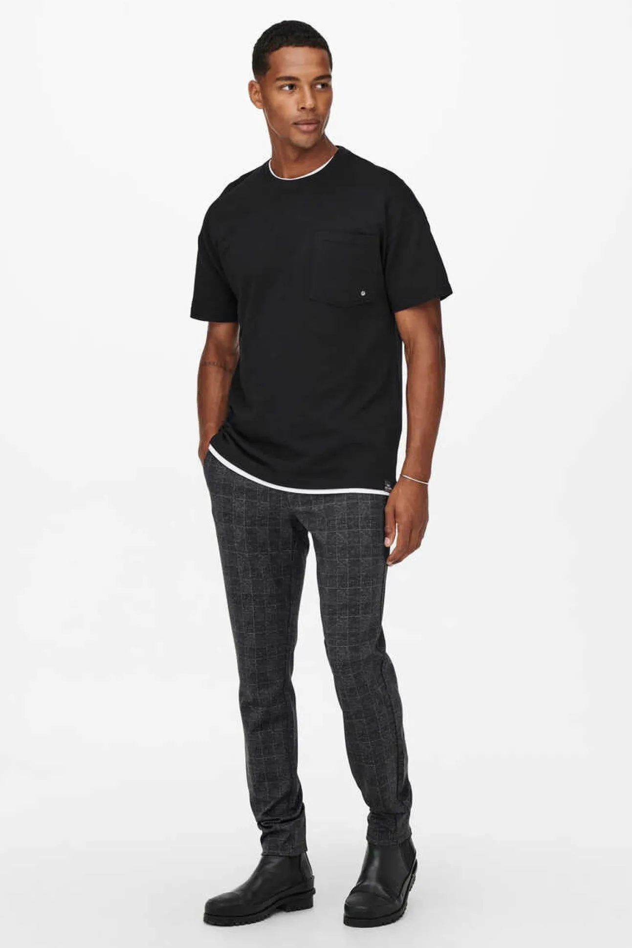 Calcas Cinco Bolsos Tapered Fit Com Xadrezes. Fecham-Se Atraves De Botao E Fecho-Eclair.