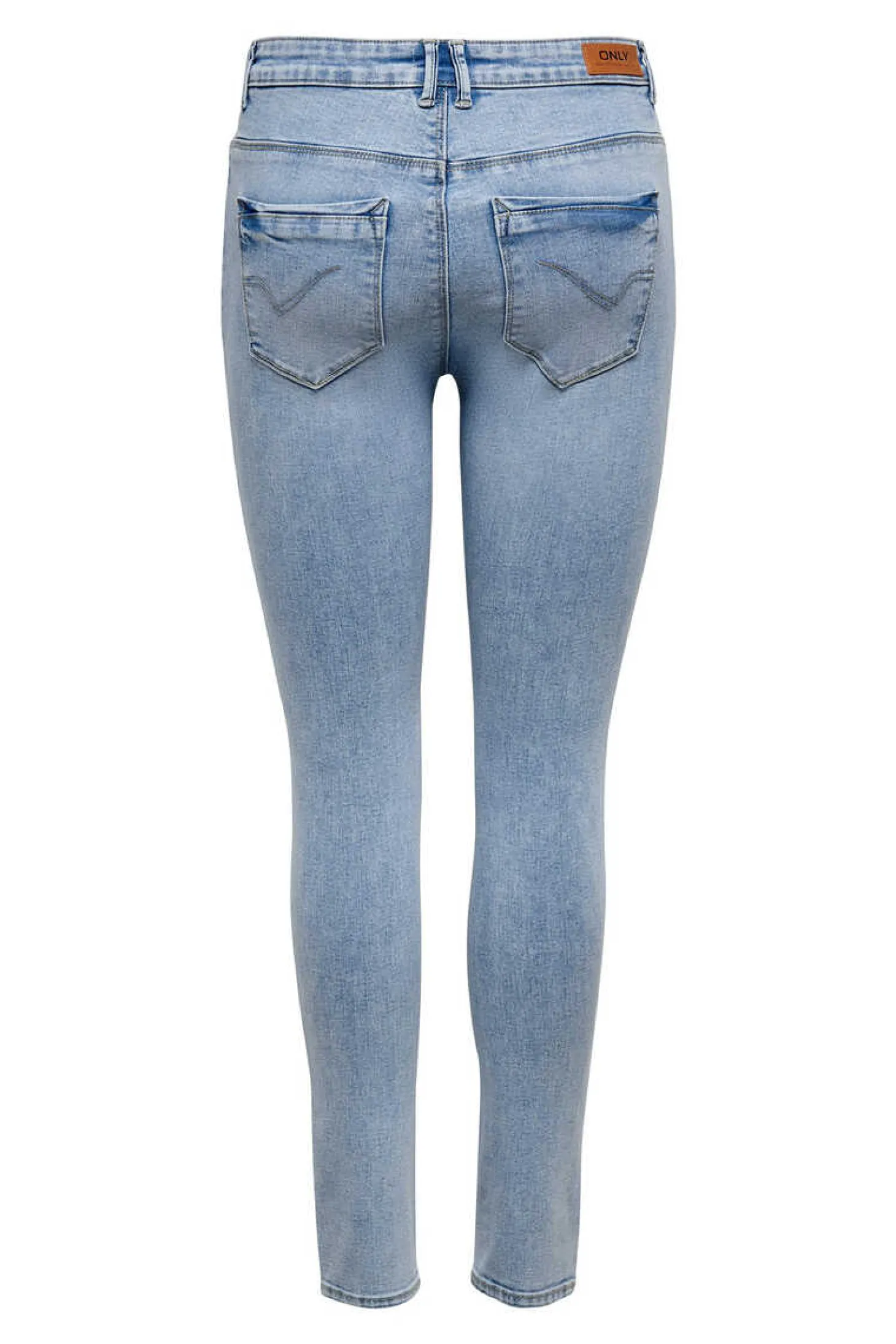 Jeans Cigarro Pelo Tornozelo Com Cintura Alta. Tecido Elastico, Com Cinco Bolsos E Presilhas.