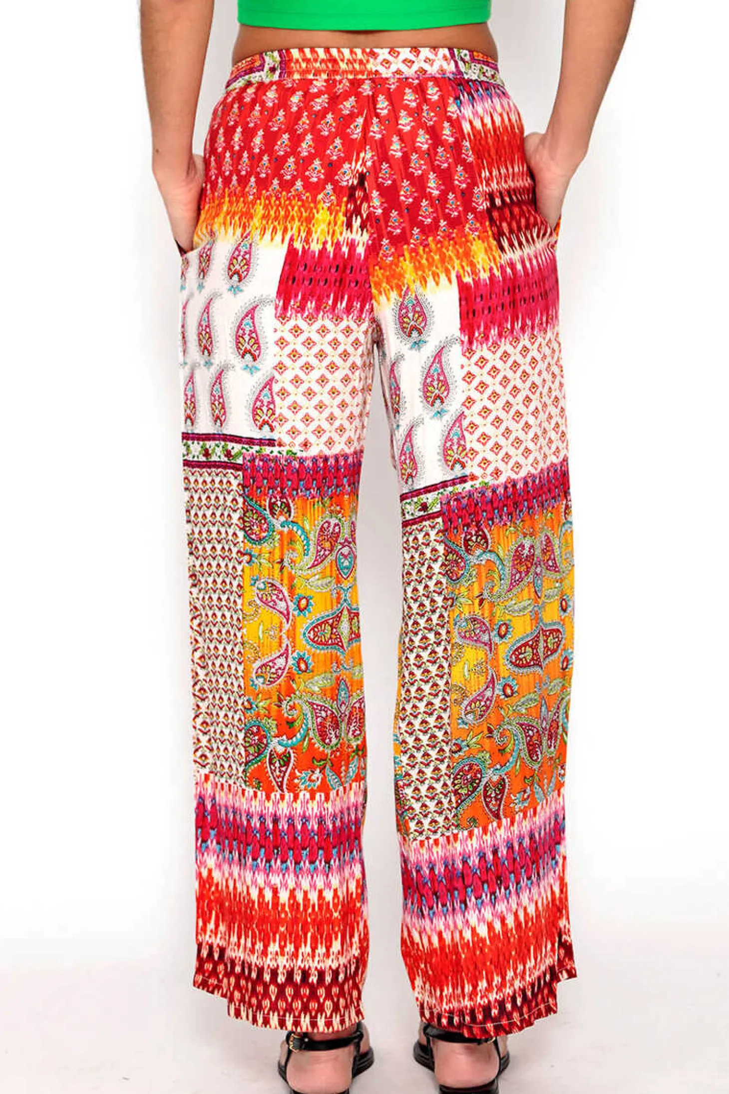 Calcas De Mulher Estampado Patckwork Com Cintura Elastica E Cordao.