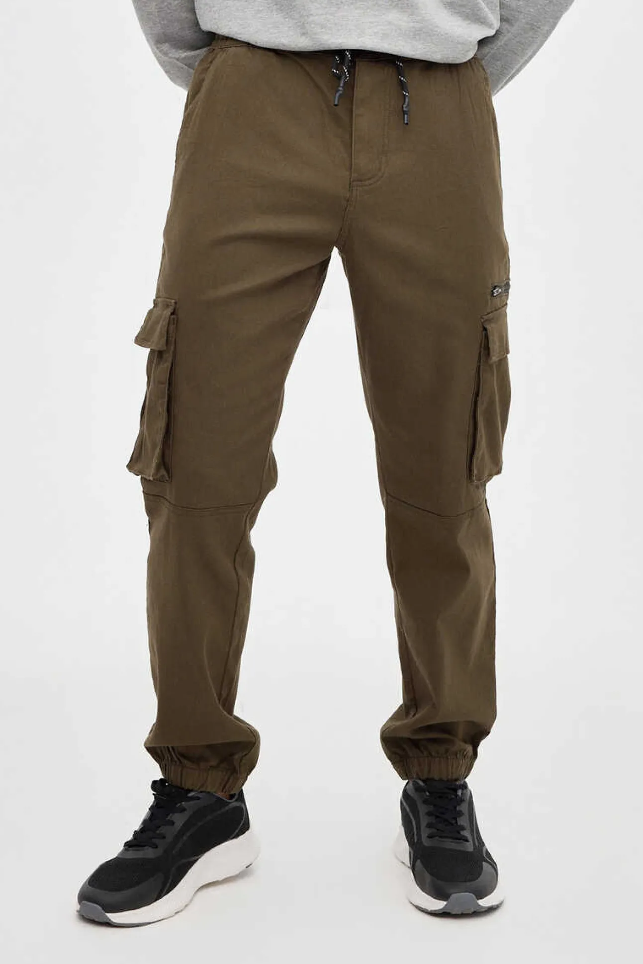 Calcas Jogger De Corte Medio De Felpa Com Bolsos Na Perna Com Cintura De Borracha E Fecho-Eclair Com Botao.