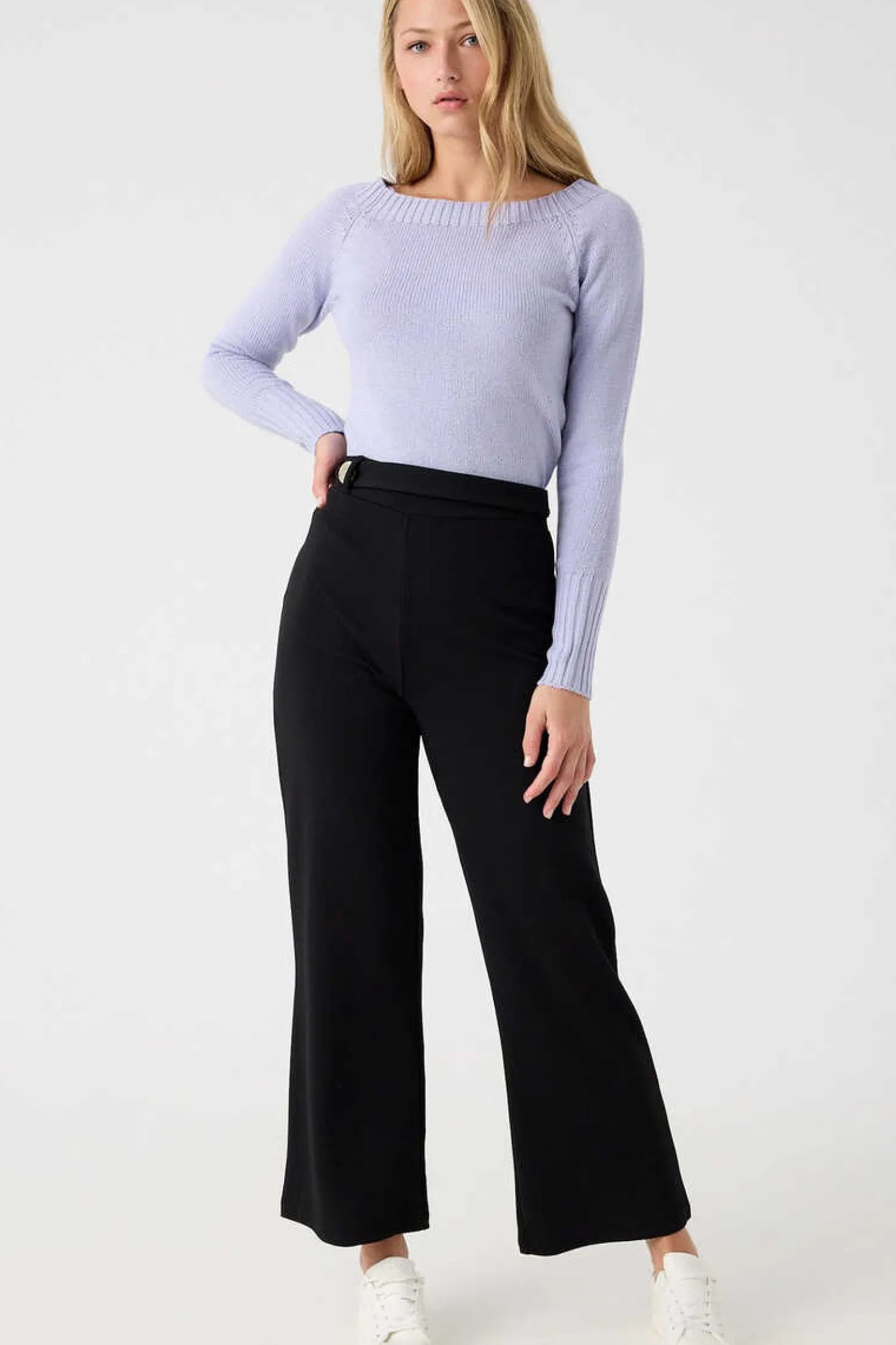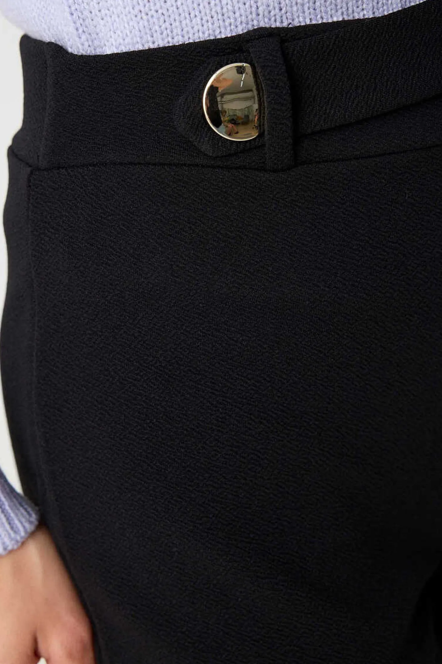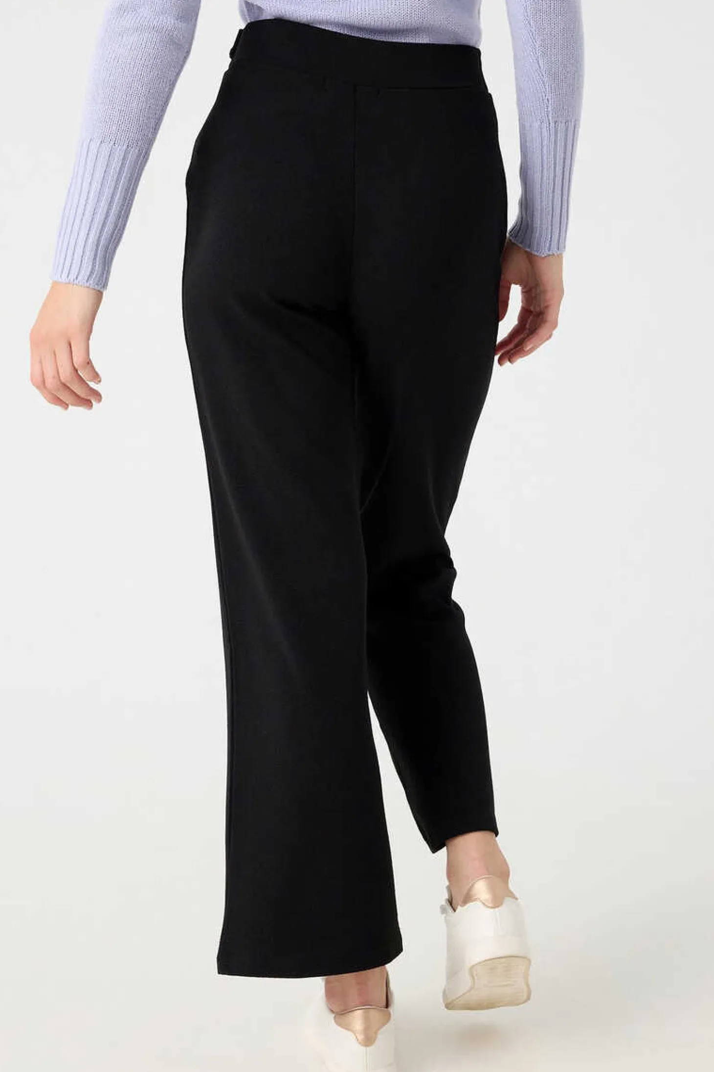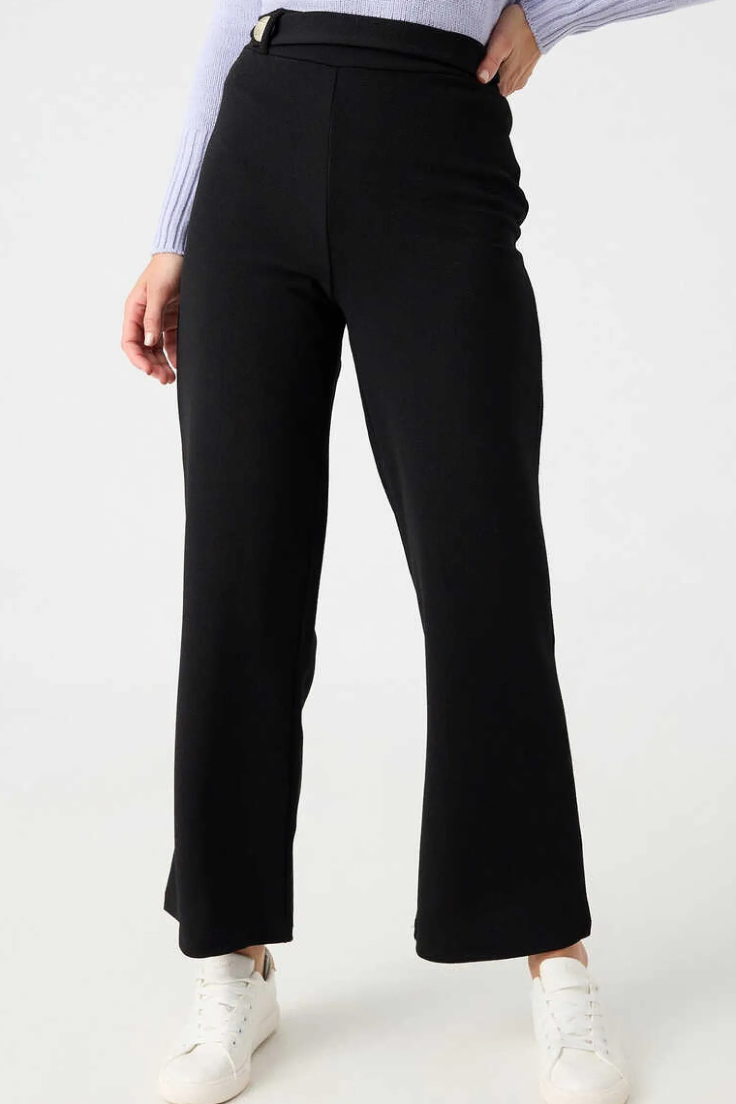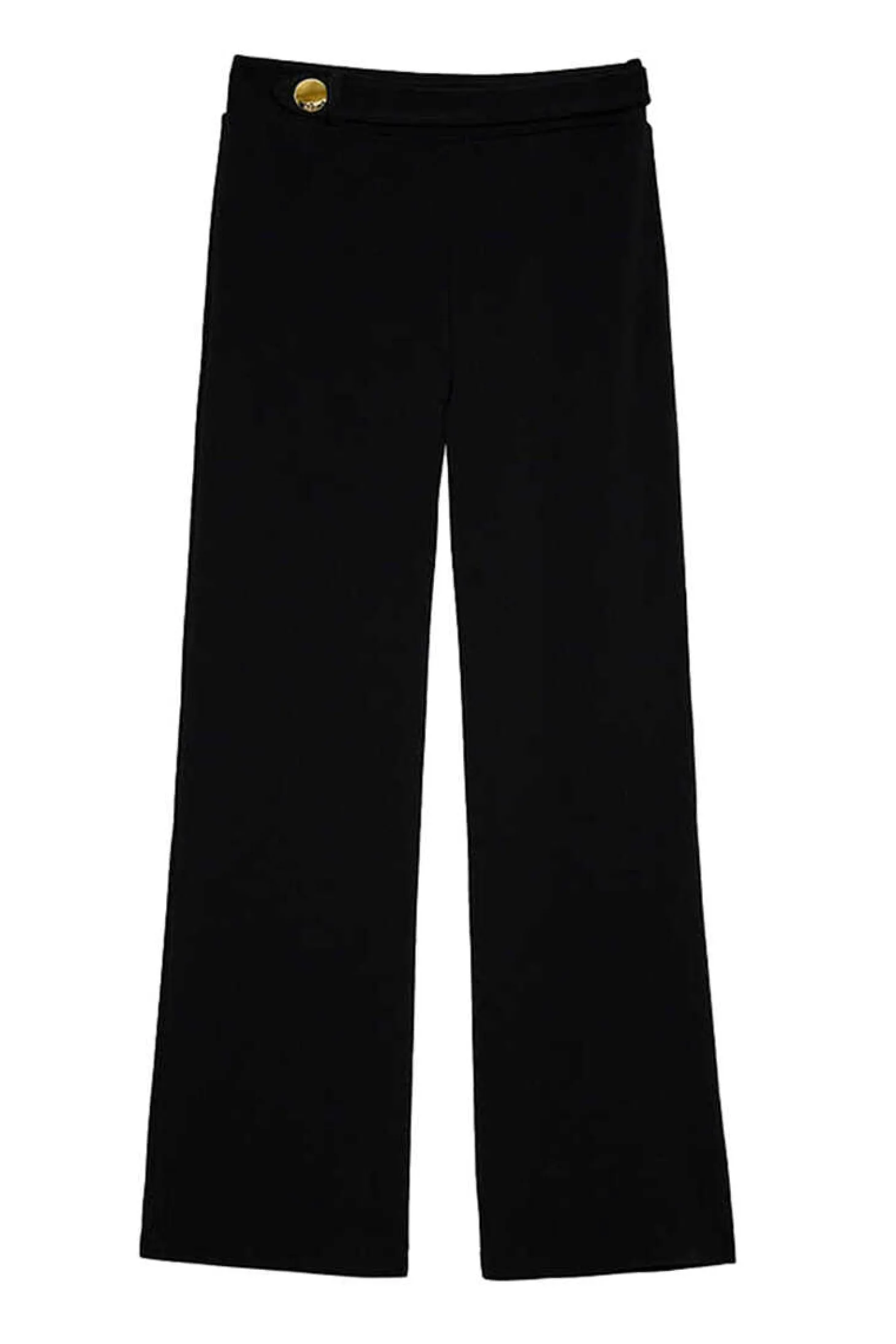 Calcas Palazzo De Cintura Subida Em Tecido Elastico. Detalhe De Presilha E Botao Na Cintura.