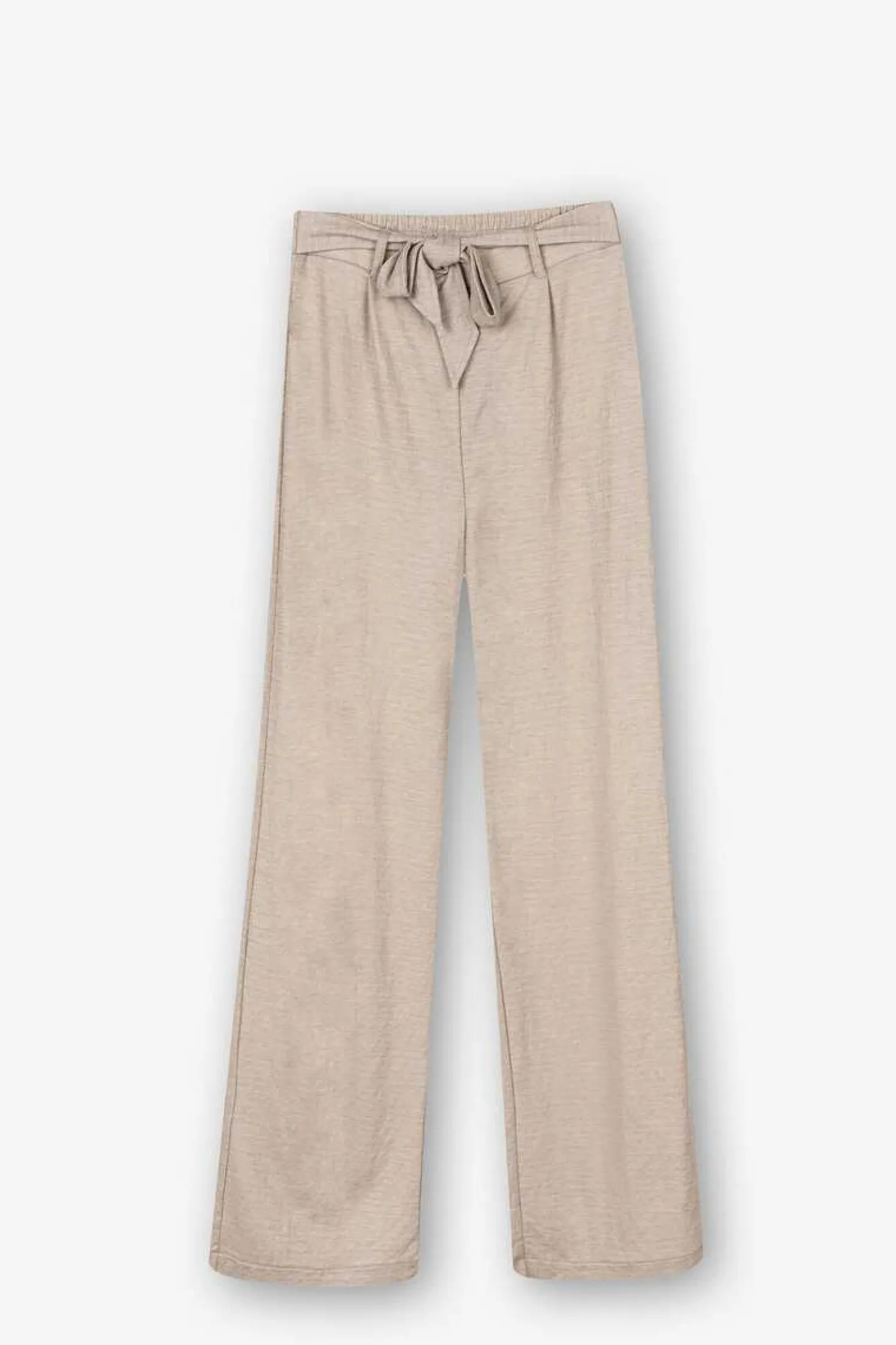 Calcas De Cintura Media Com Elastico Nas Costas E Perna Larga. Aplicacao De Cinto Do Mesmo Tecido.