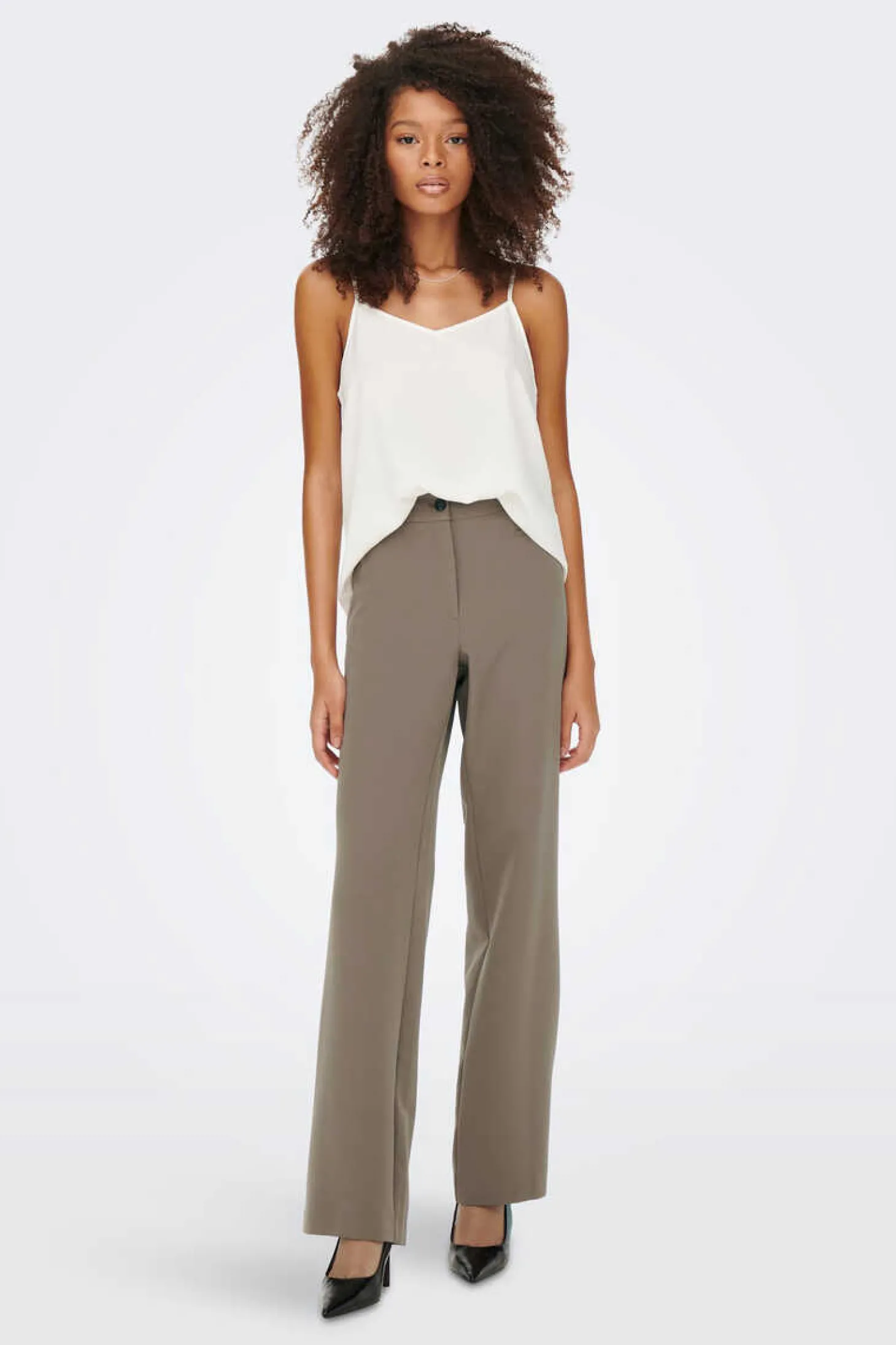 Calcas De Corte Reto Com Cintura Media E Fecho Com Fecho-Eclair E Botao.