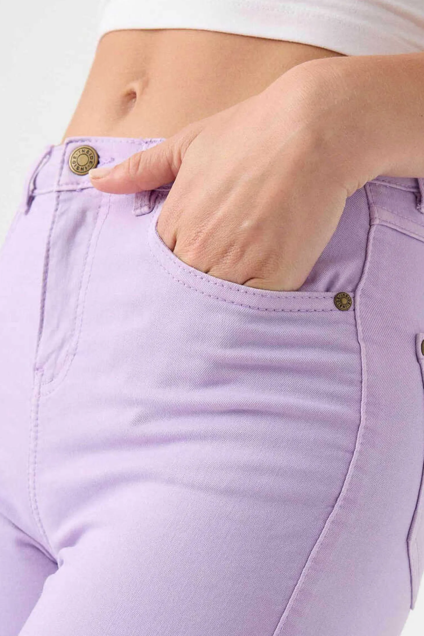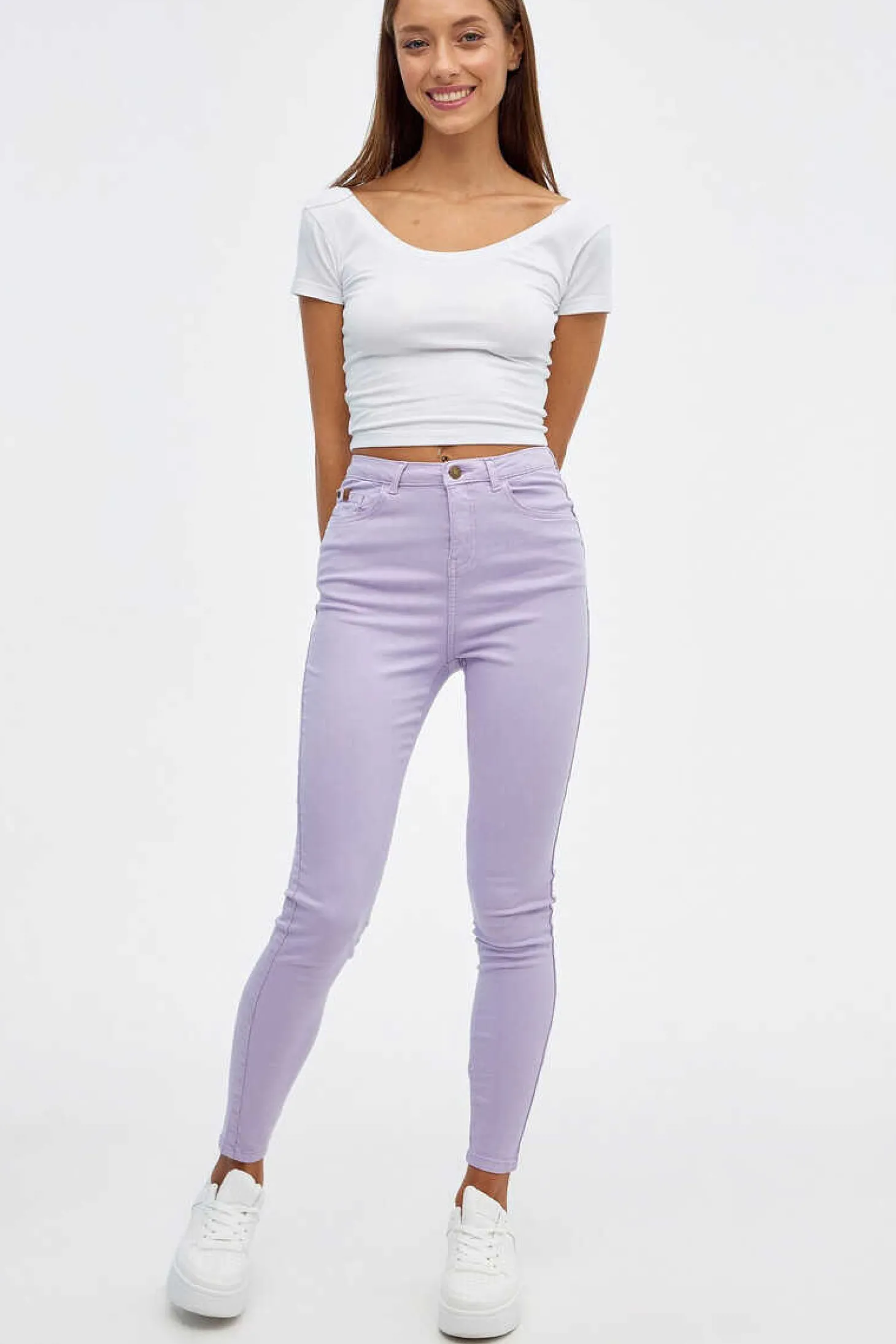 Calcas Skinny De Cintura Subida De Tecido De Algodao E Elastano Em Varias Cores.