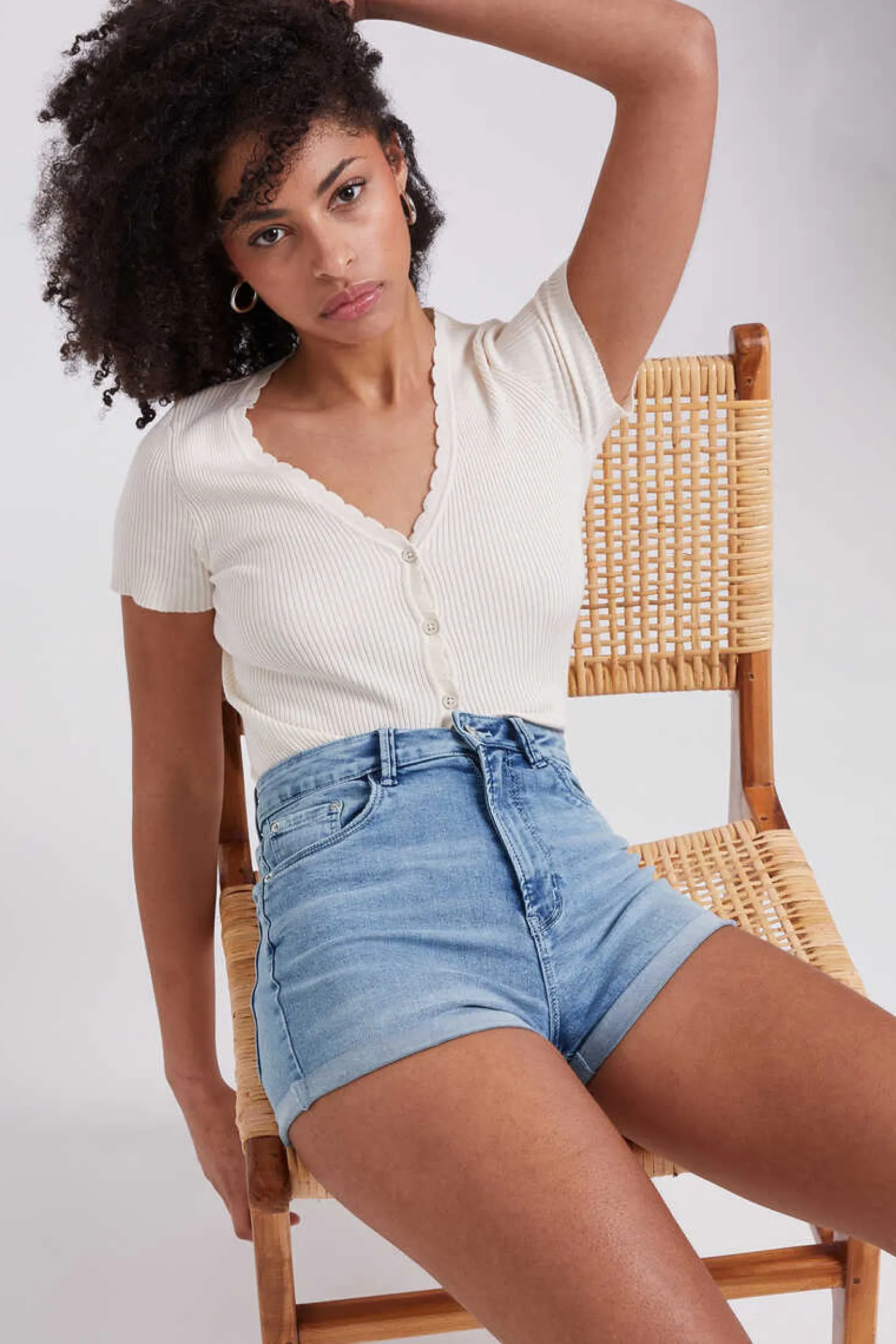 – Calcoes De Ganga De Cintura Subida Azuis Stone.