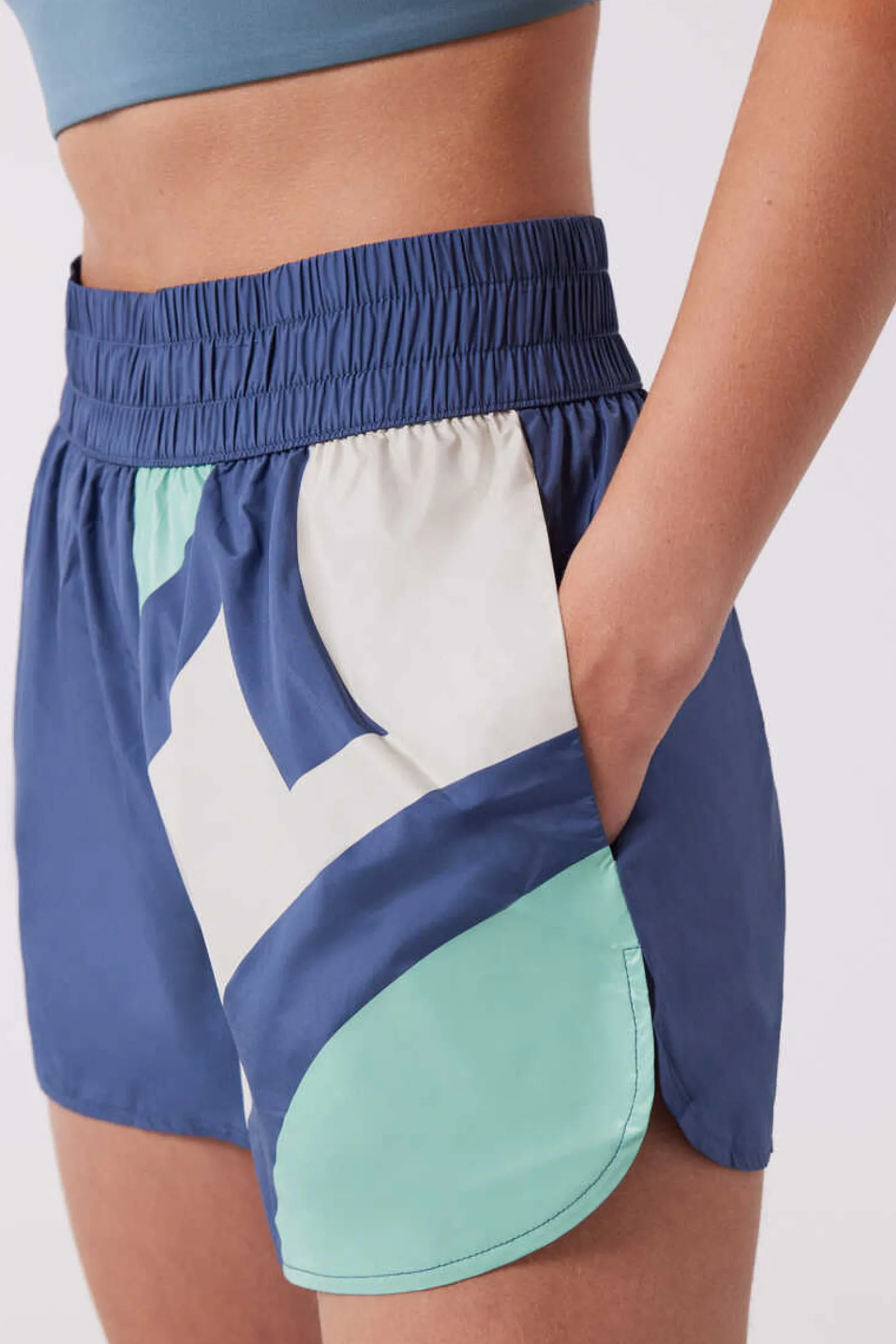 – Calcas Curtas De Tecido Tecnico Leve Com Estampado Retro Em Cor Azul. Com Cueca Interior Para Maior Comodidade, Esta Calca Possui Cintura Franzida Com Ela … Stico No Interior.