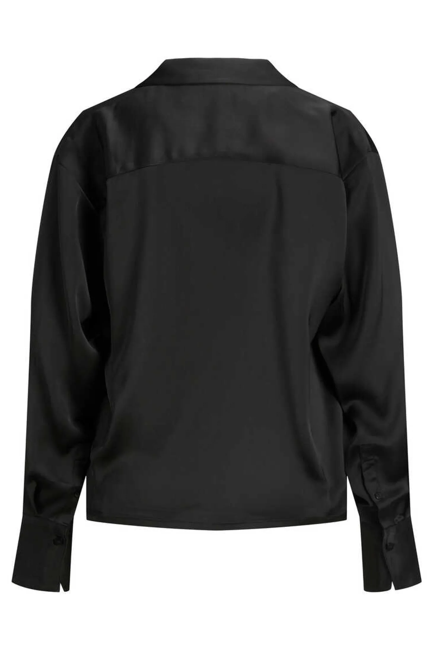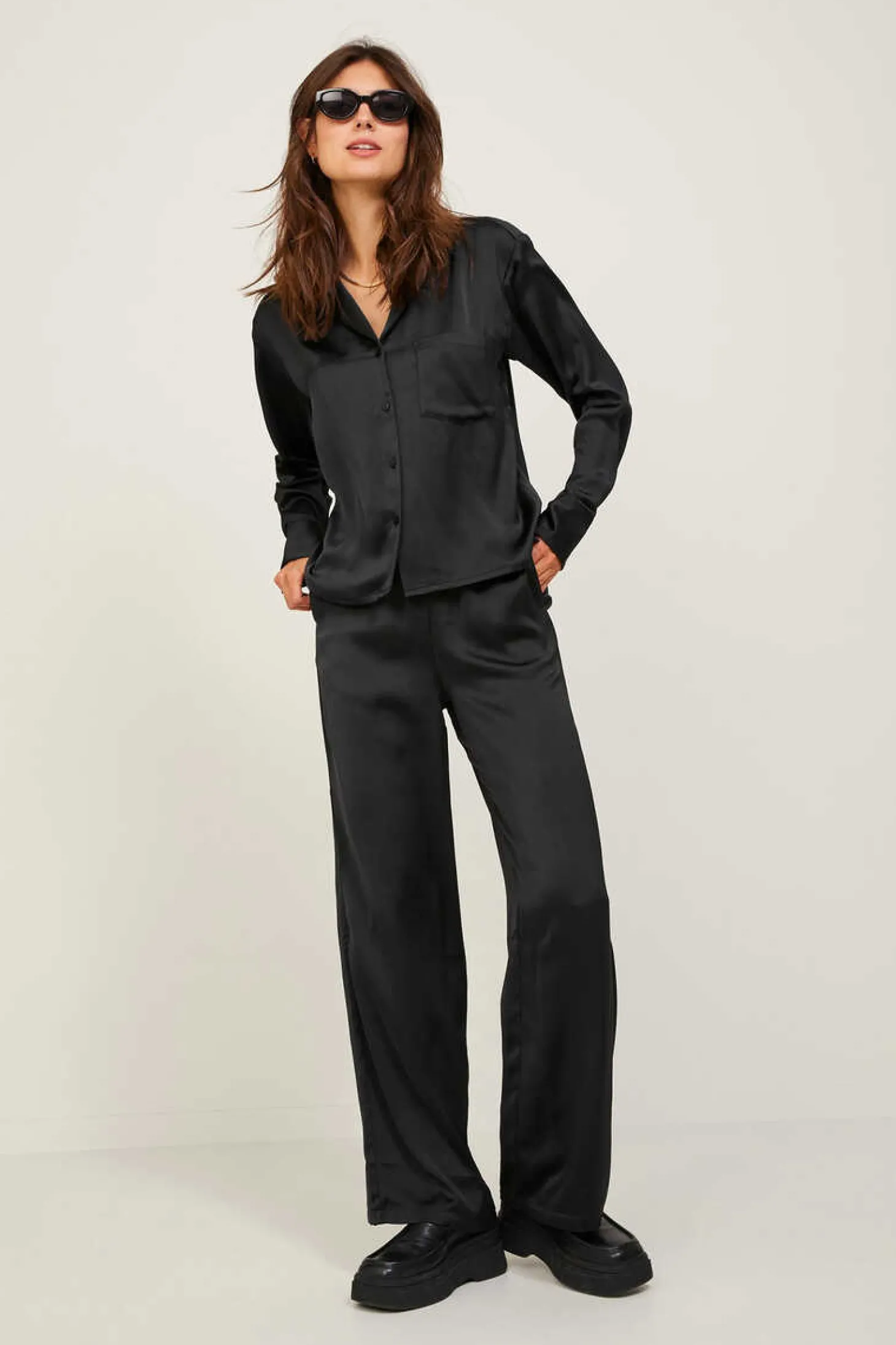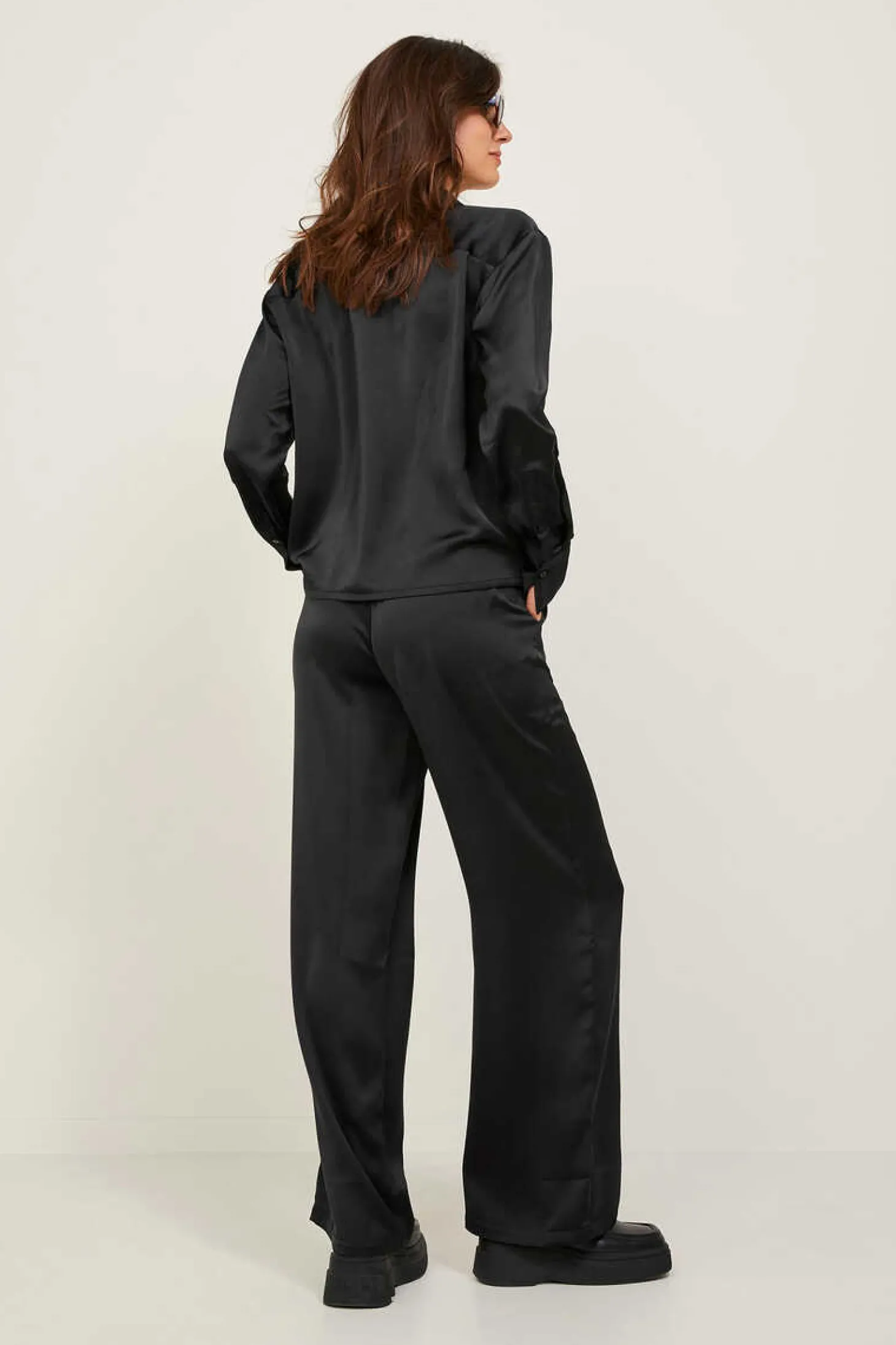 Camisa Acetinada. Fecho Com Botoes. Bolso Dianteiro. Ajuste Descontraido. Detalhe Gole De Camisa Em Bico.