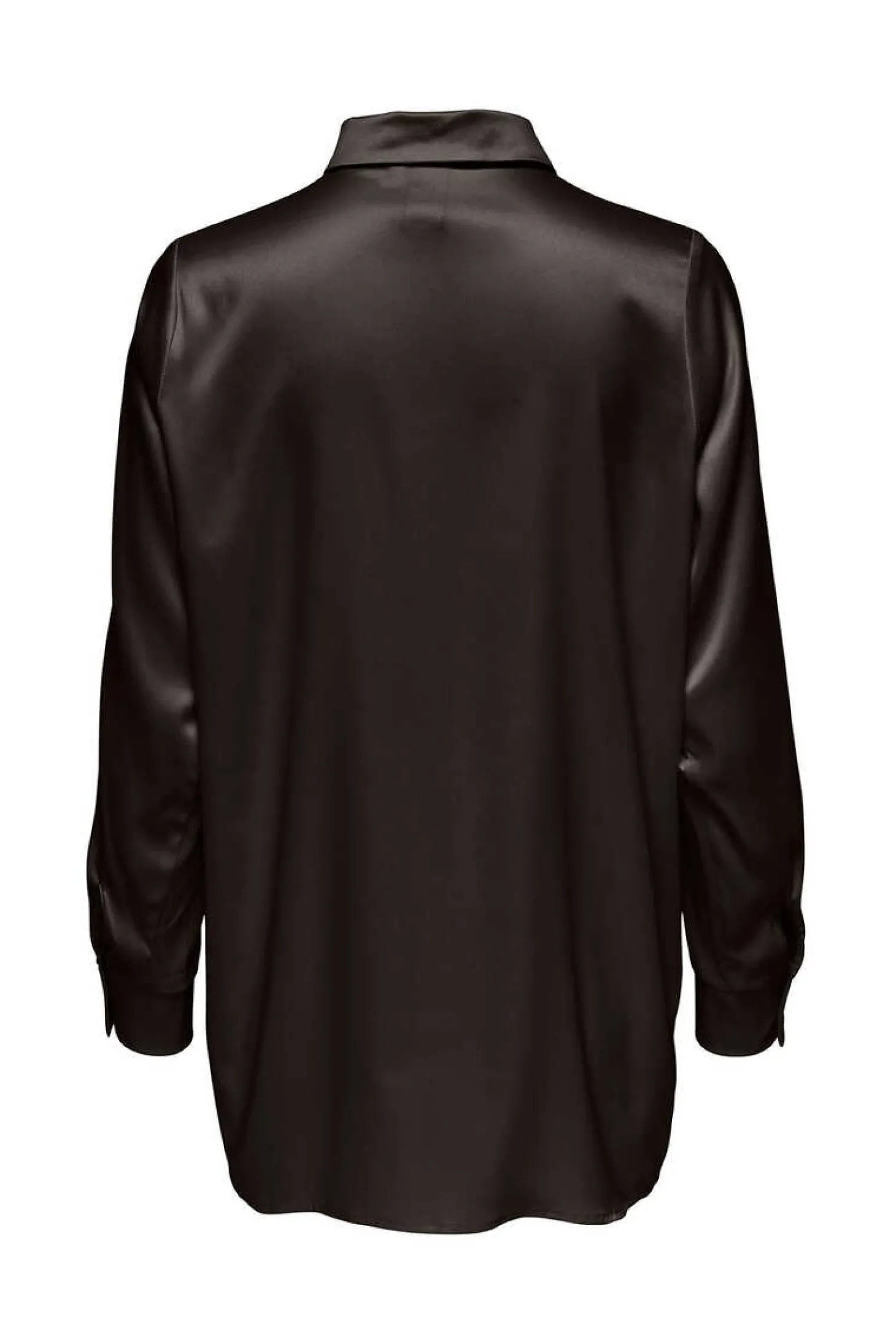 Camisa Acetinada De Manga Comprida Com Decote De Lapelas E Botoes Dianteiros.
