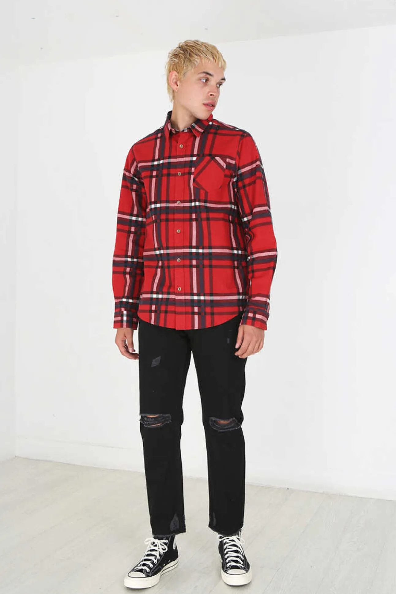Camisa De Homem Abotoada Aos Quadrados. De Manga Comprida. Botao Nos Punhos.