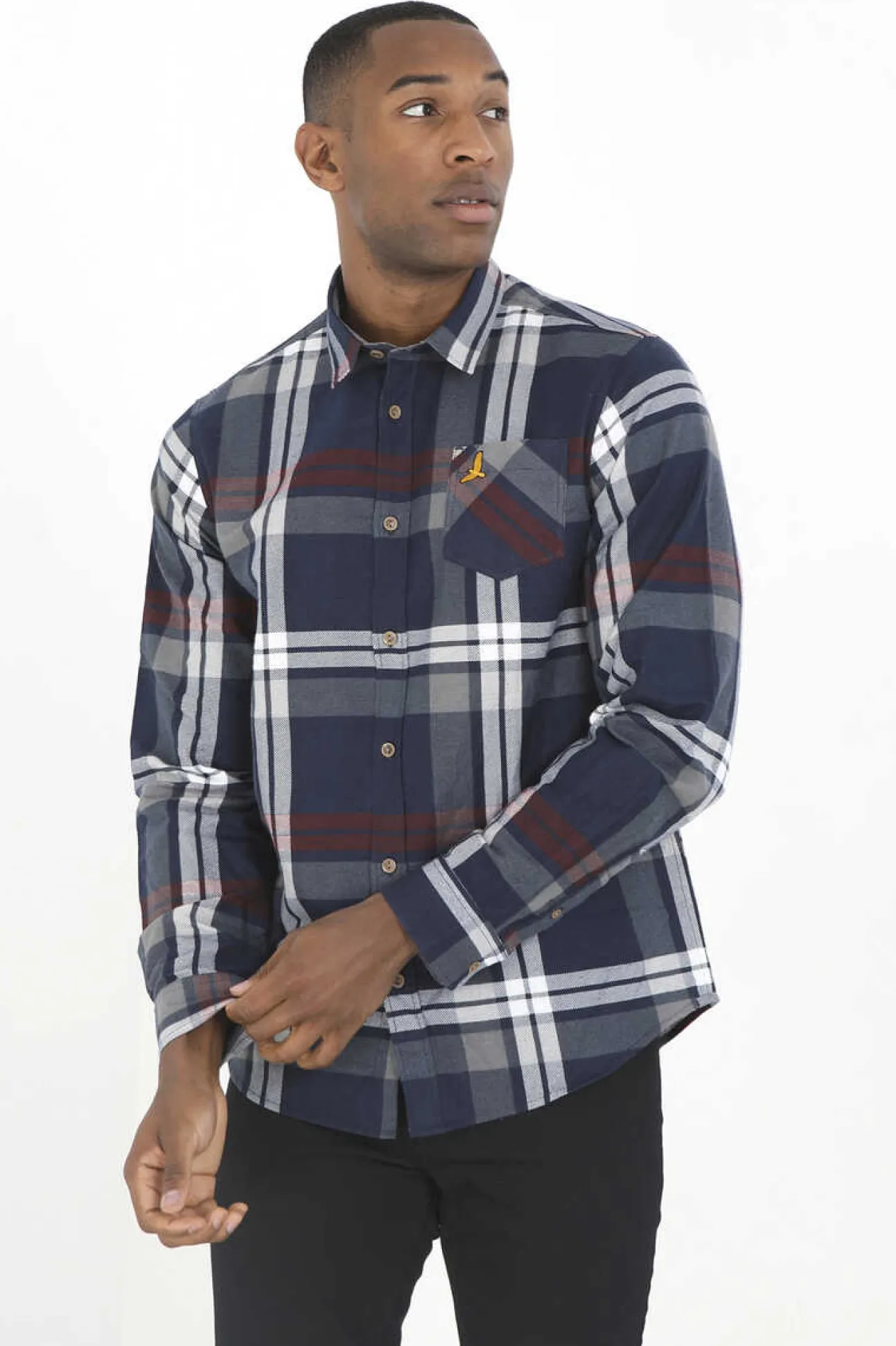Camisa De Homem Abotoada Aos Quadrados. De Manga Comprida E Bolso Com Bordado De Aguia No Peito. Botao Nos Punhos.