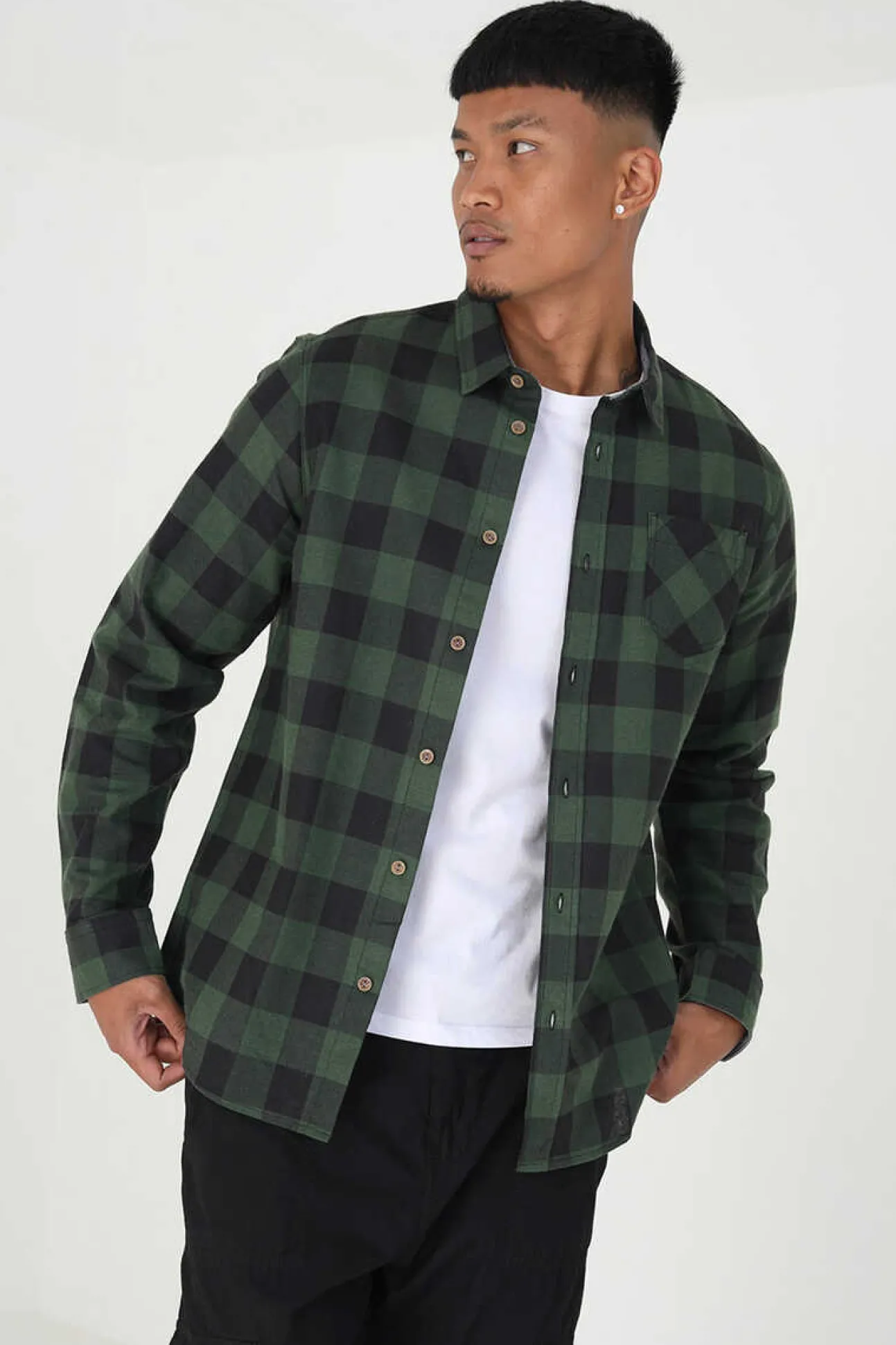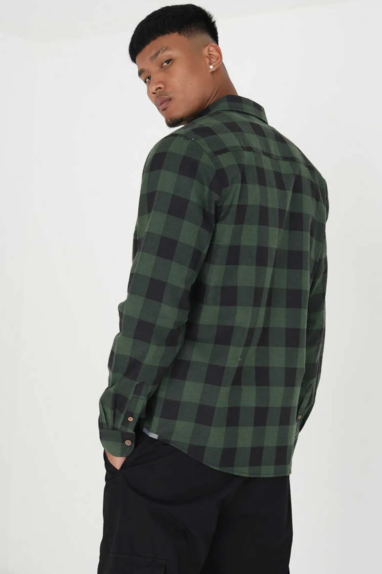 Camisa De Flanela De Homem Aos Quadrados. De Manga Comprida E Bolso No Peito. Botao Nos Punhos.