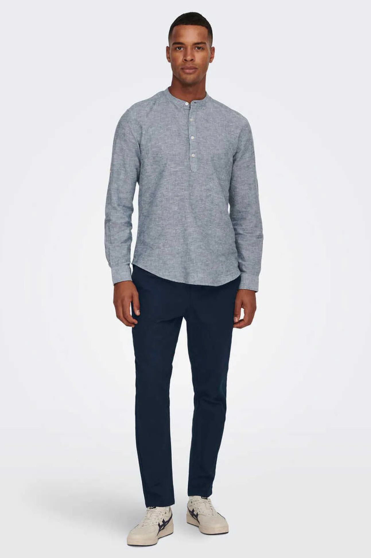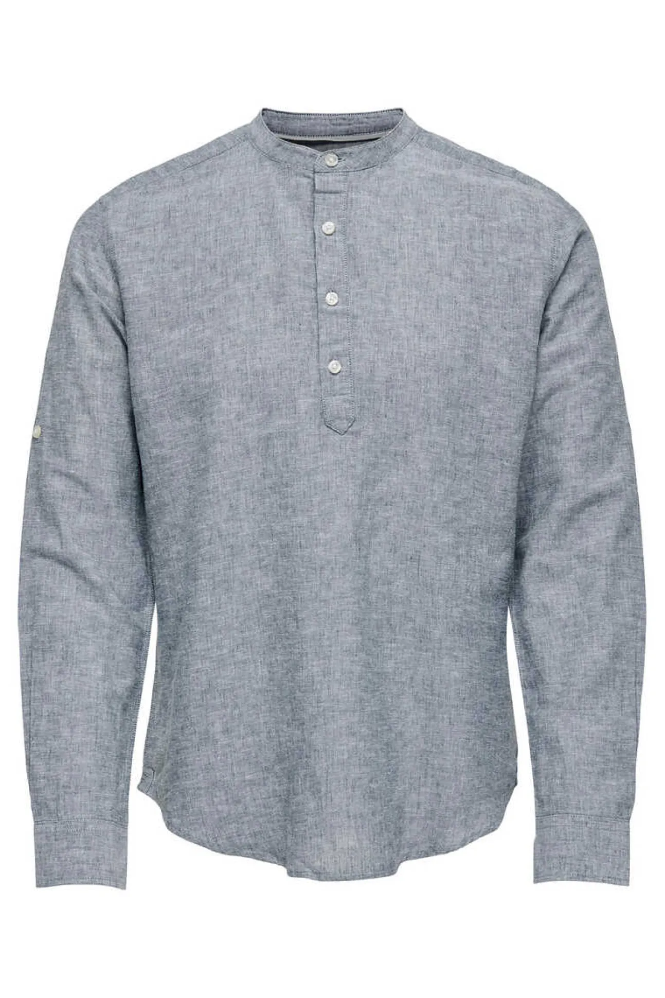 Polo Linho Mao Com Botoes, Manga Comprida Em Punho