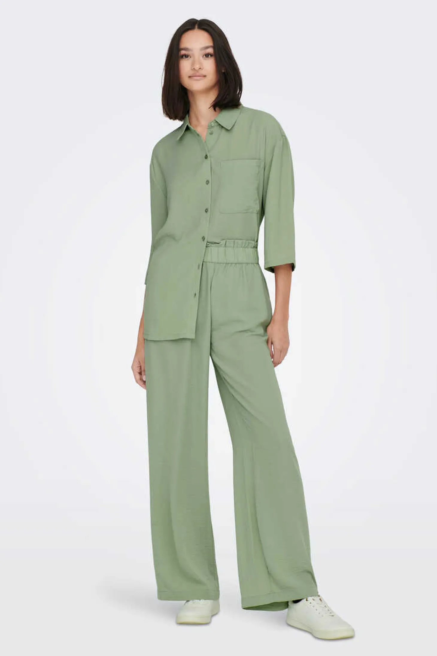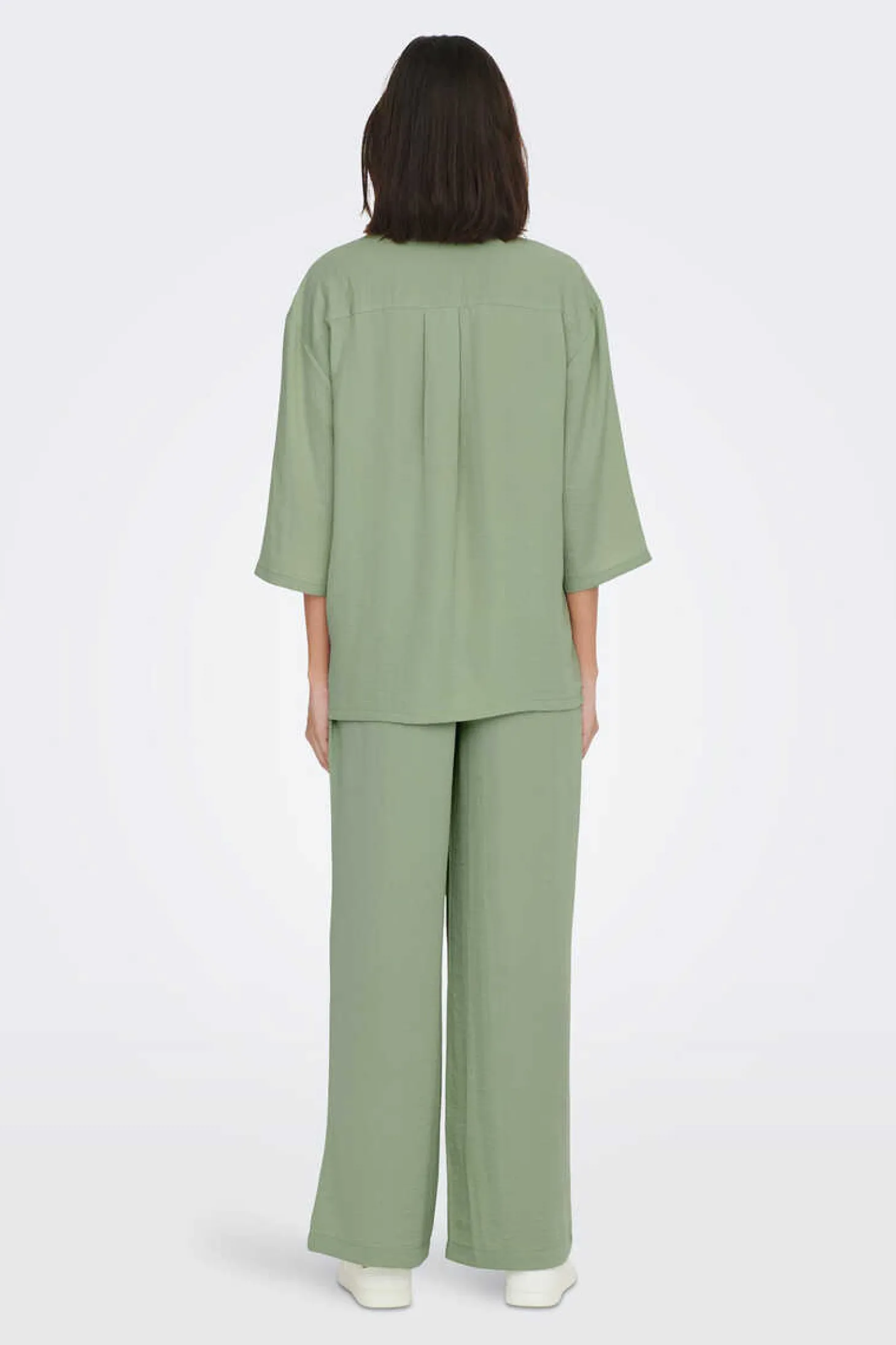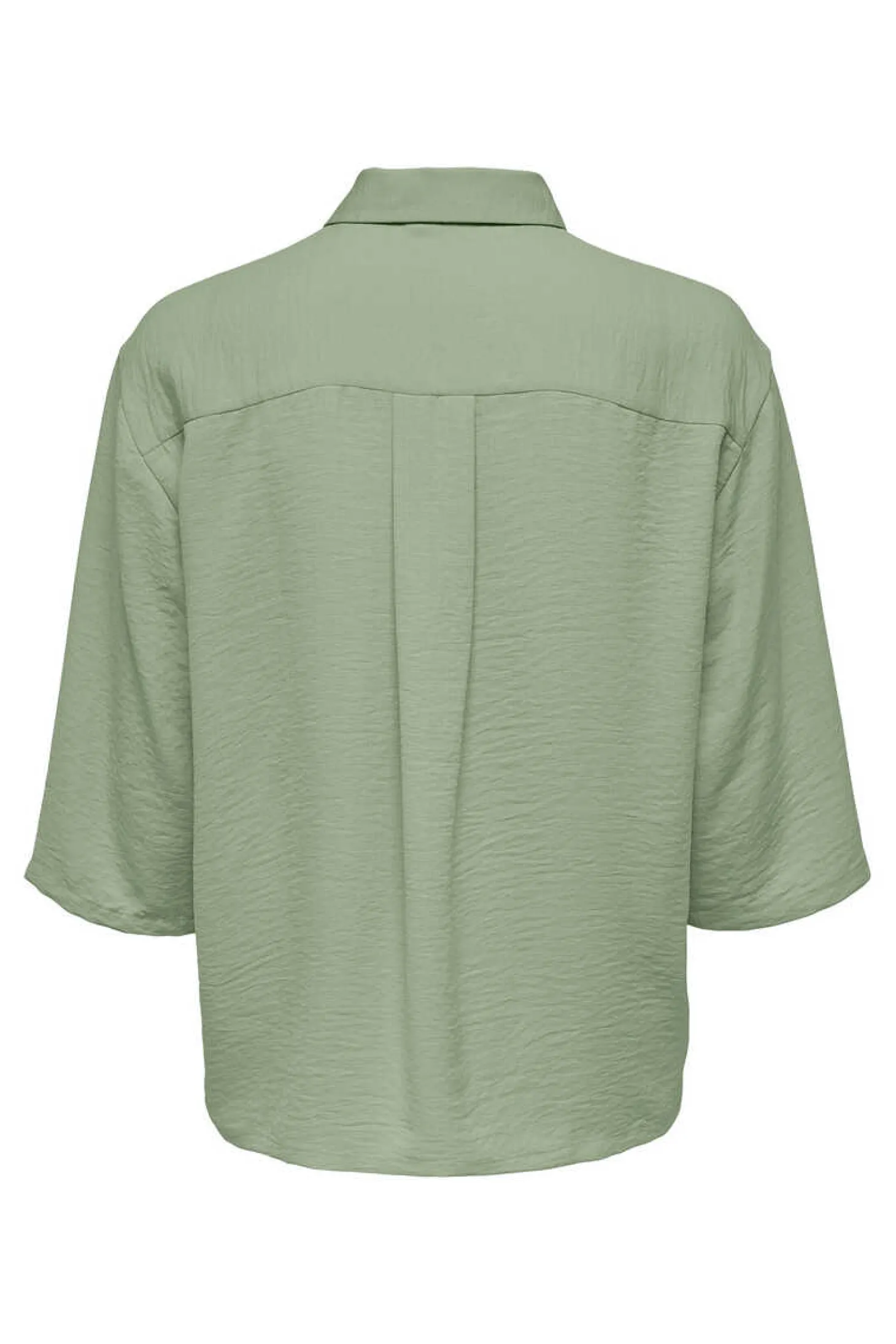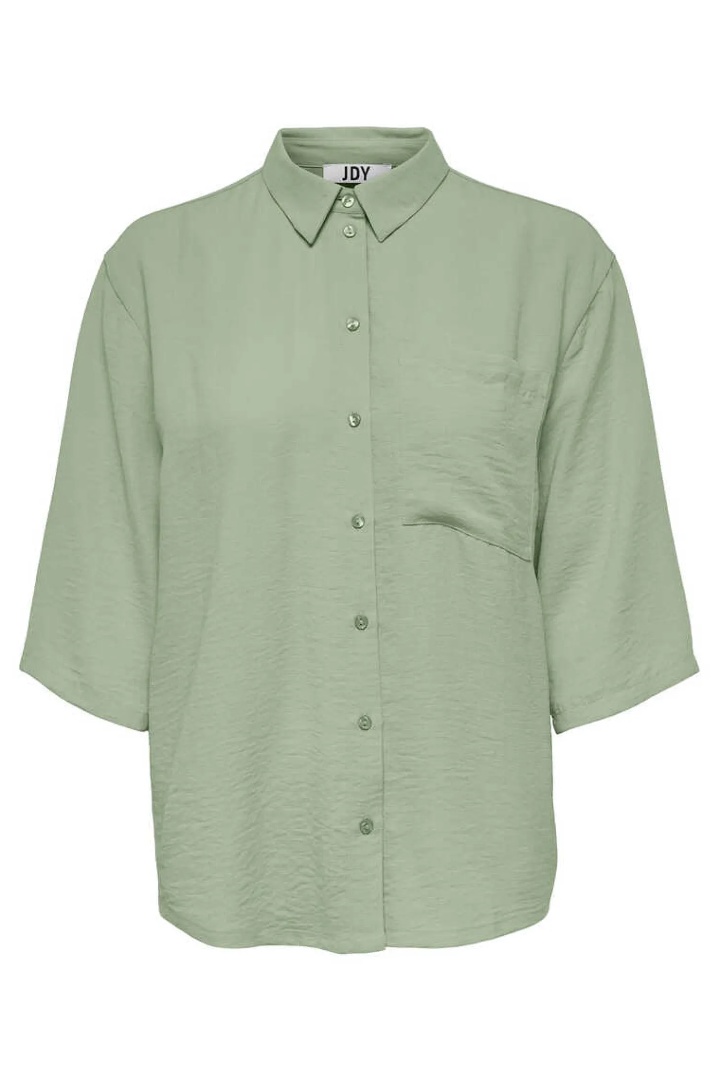 Camisa Com Manga 3/4, Gola Camiseira, Fecho Com Botoes Frontais E Bolso.