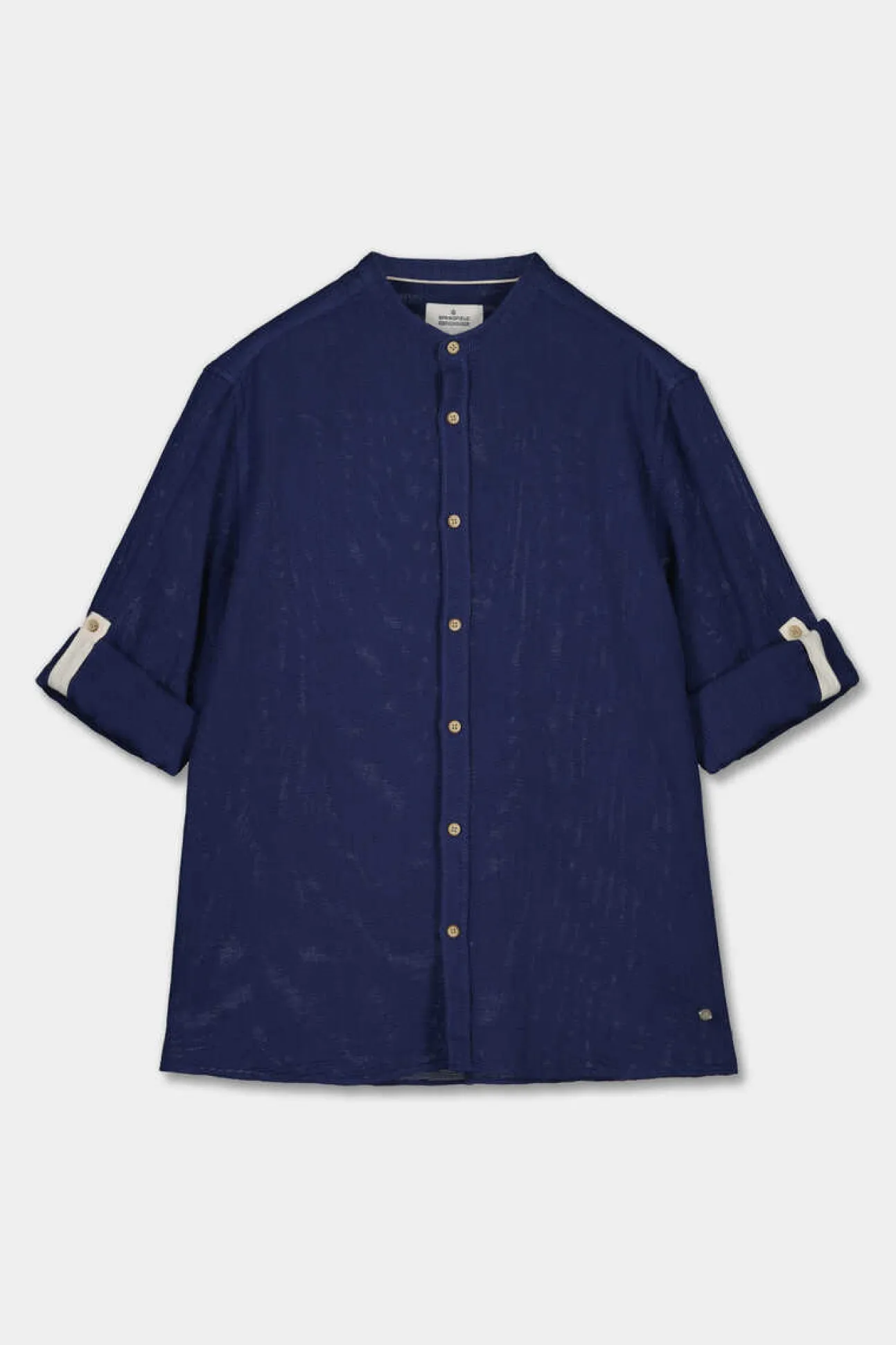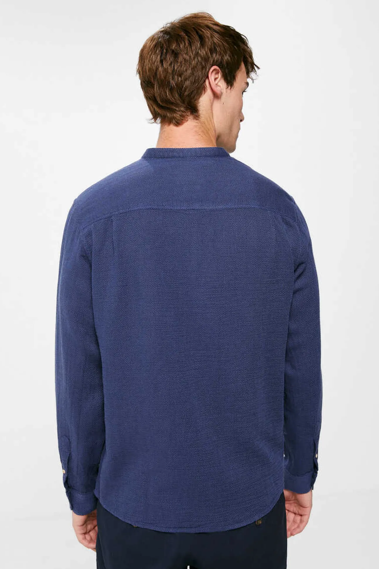 Camisa De Manga Comprida, Regular Fit, Em Tecido Tipo Estrutura De Algodao. Colarinho Mao E Mangas Enrolaveis. Projeto Reconsider.