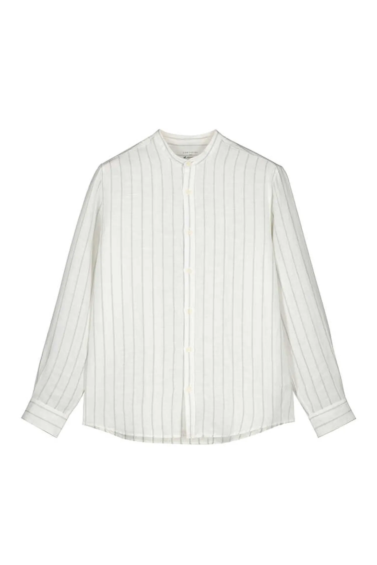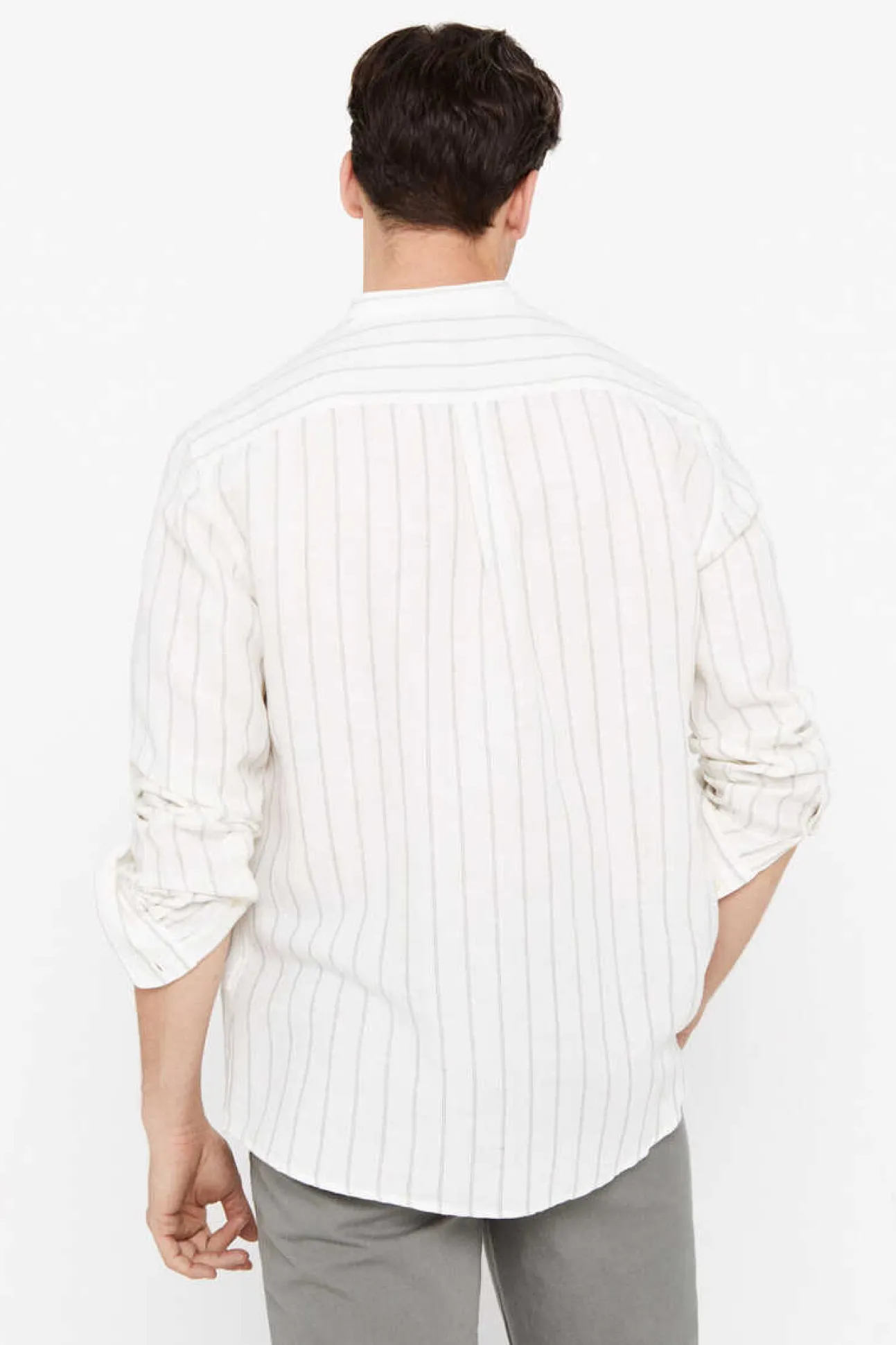 -Tecido De Riscas Em Linho E Algodao, Lavado Para Maior Suavidade