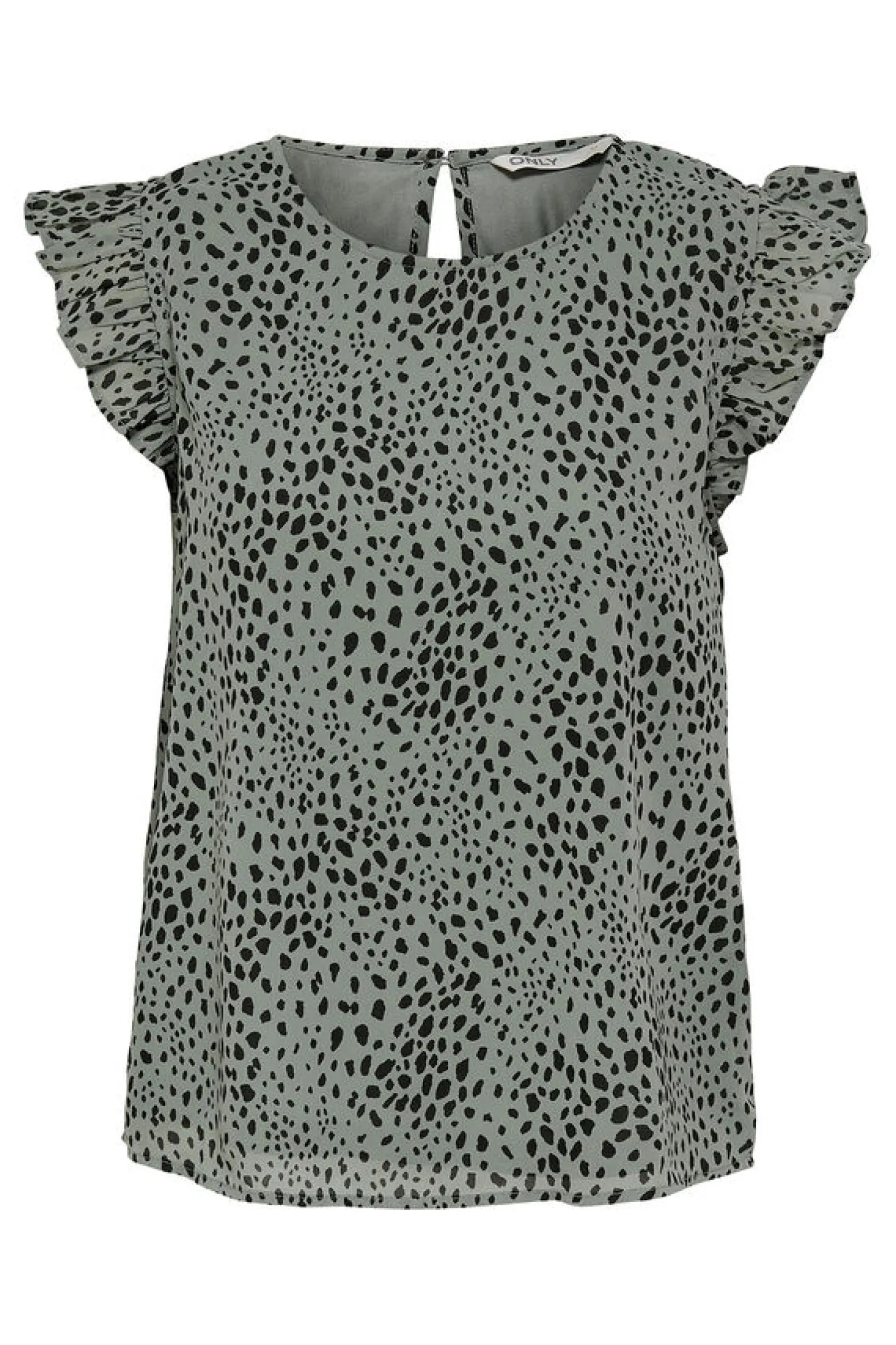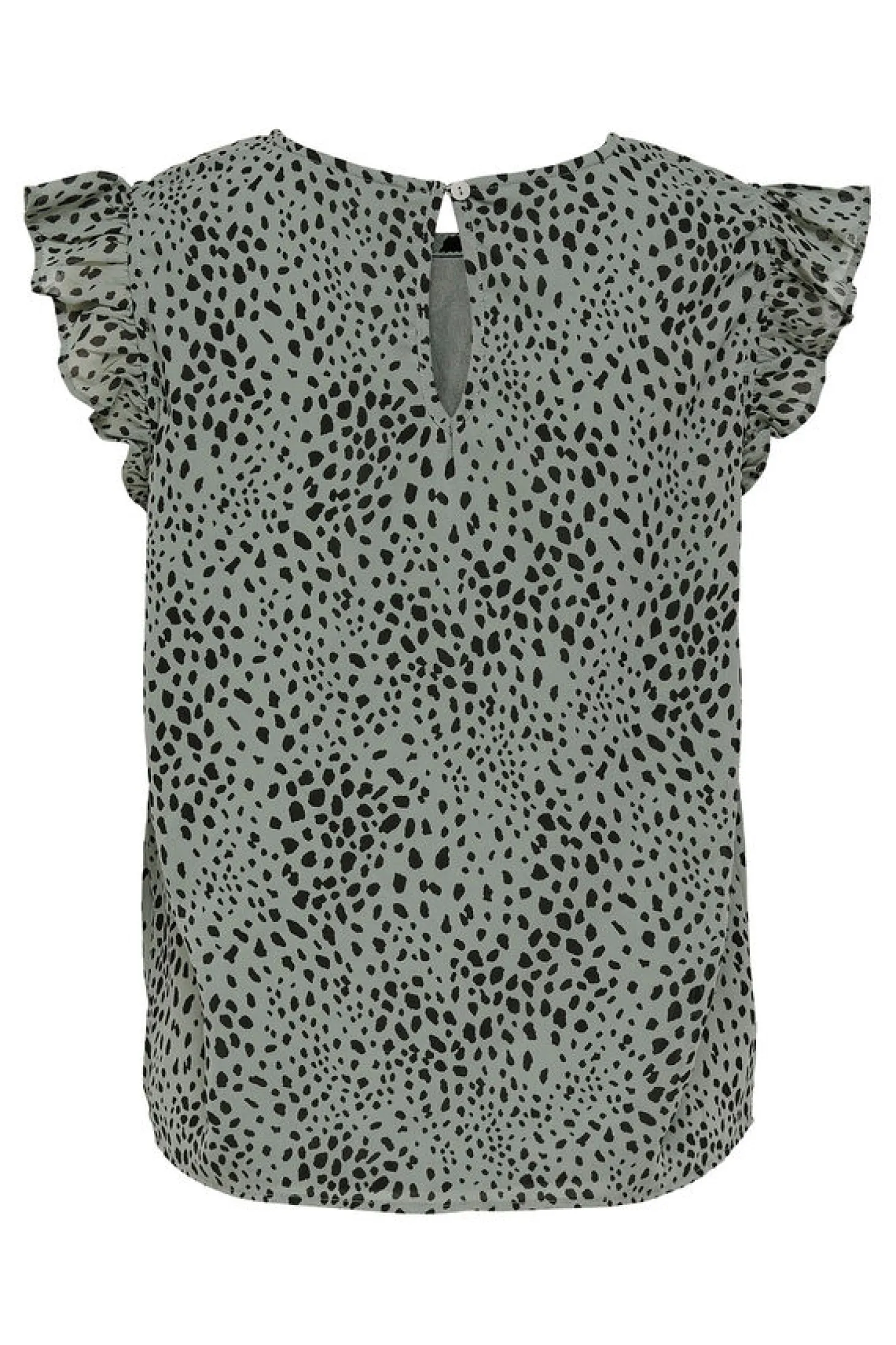 Camisa Sem Mangas Com Detalhe De Folho Nos Ombros E Gola Redonda.