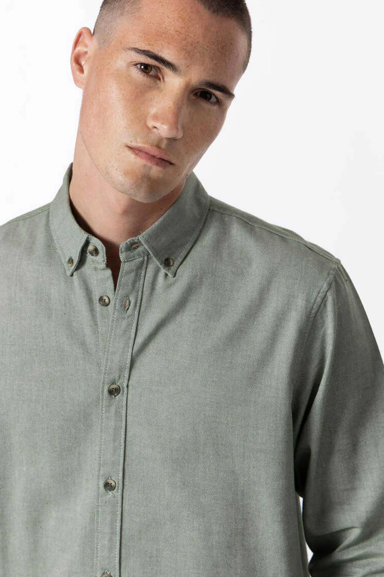 Camisa De Manga Comprida E Gola Lapela Com Botoes. Fecho Frontal Com Botoes. Efeito De Twill. Altura Do Modelo: 188 Cm | Tamanho: M