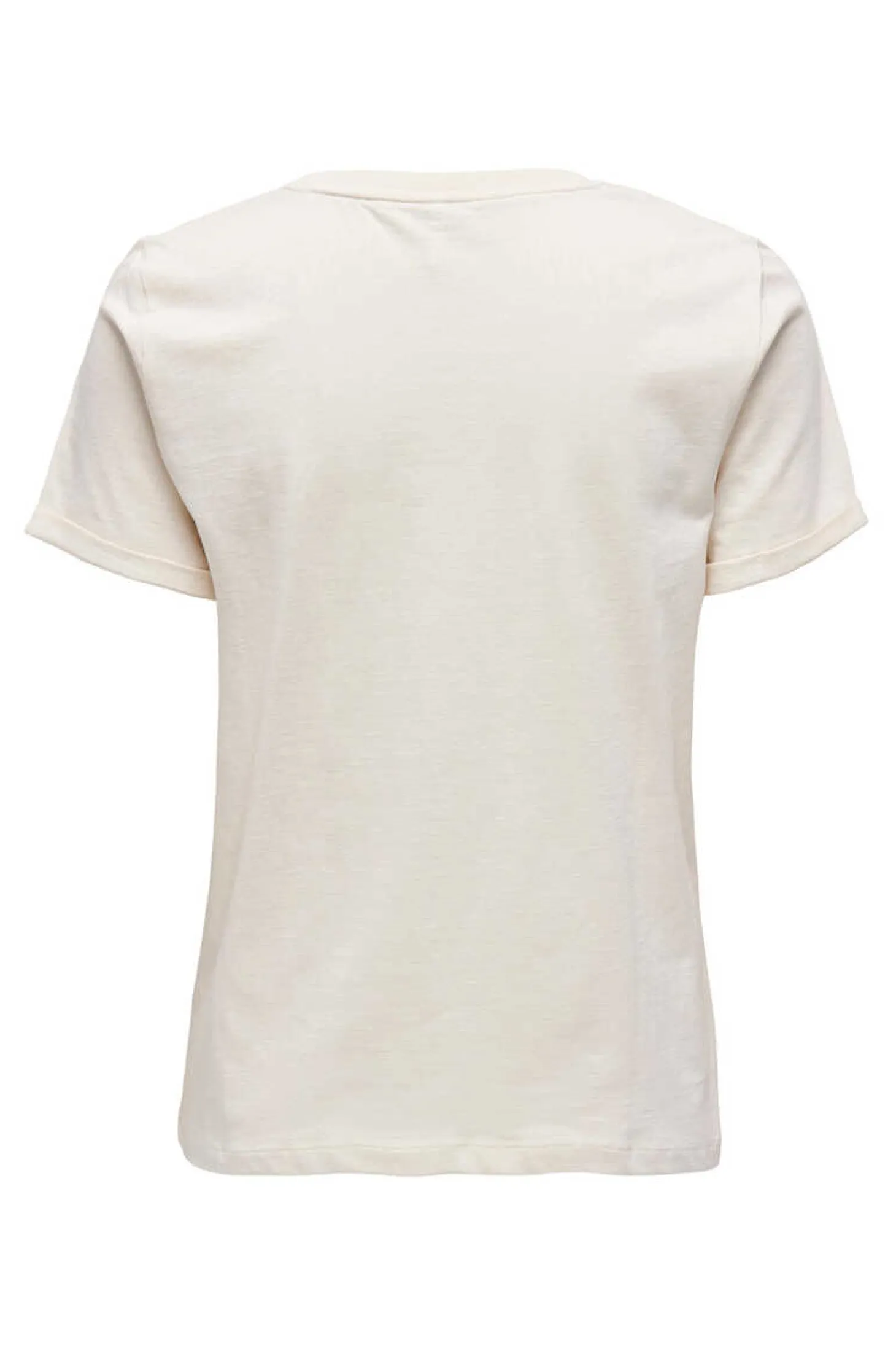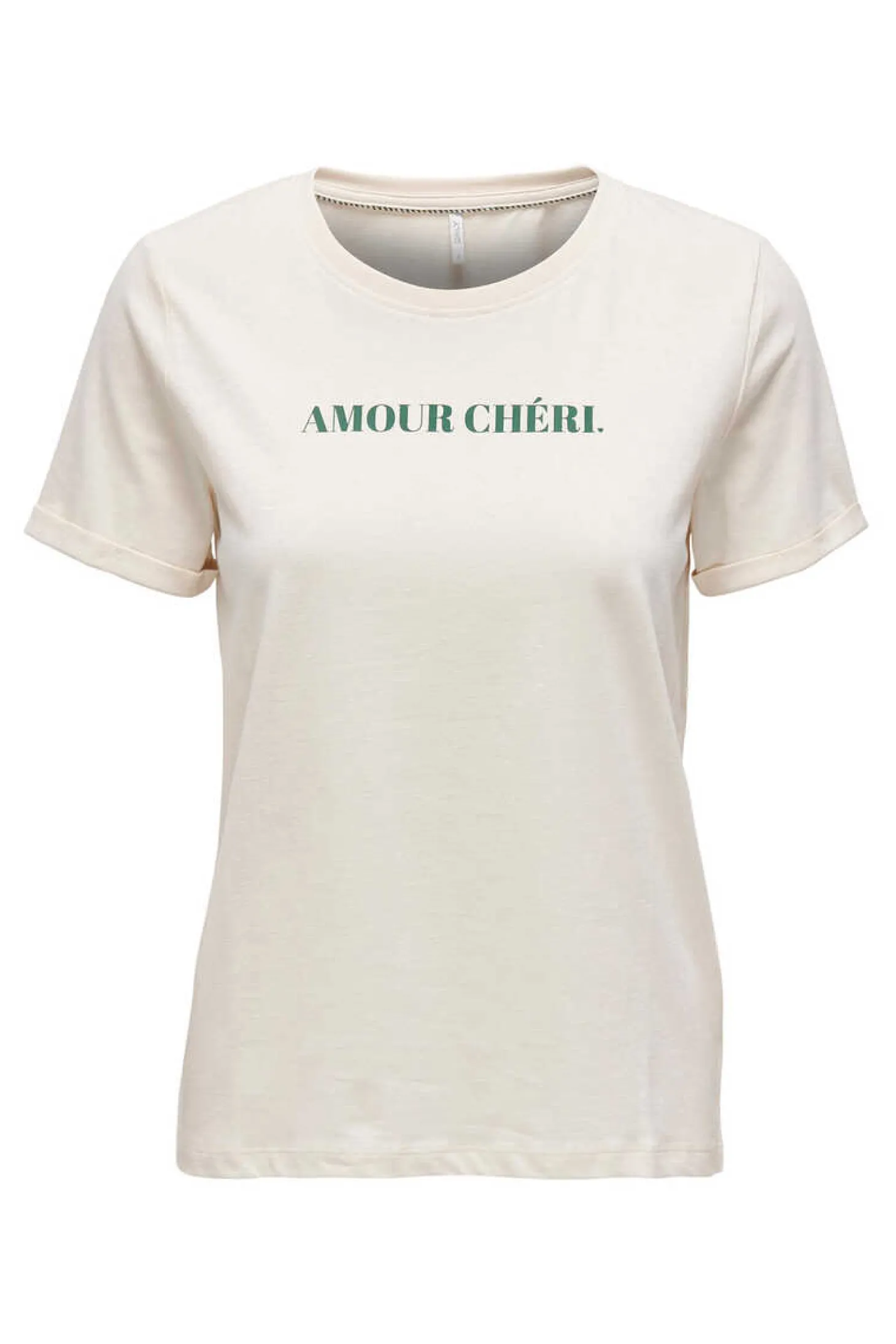 Camisola De Algodao Com Desenho Reto, Gola Redonda, Manga Curta E Mensagem Estampada.