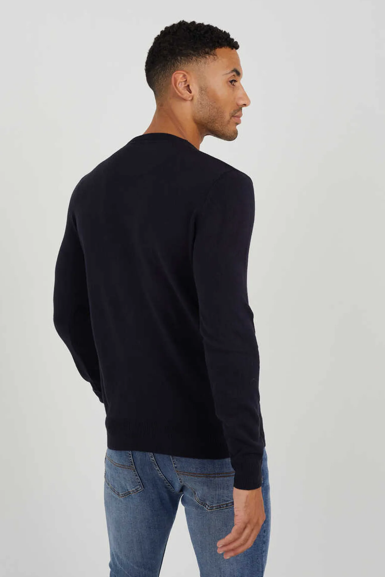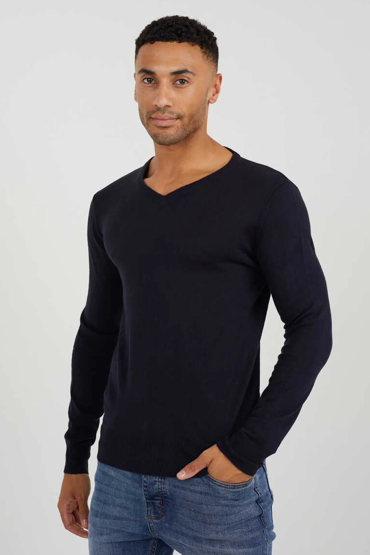 Camisola De Homem Basica Com Gola Em Pico. Tecido Plano. Gola, Bainha E Punhos Canelados