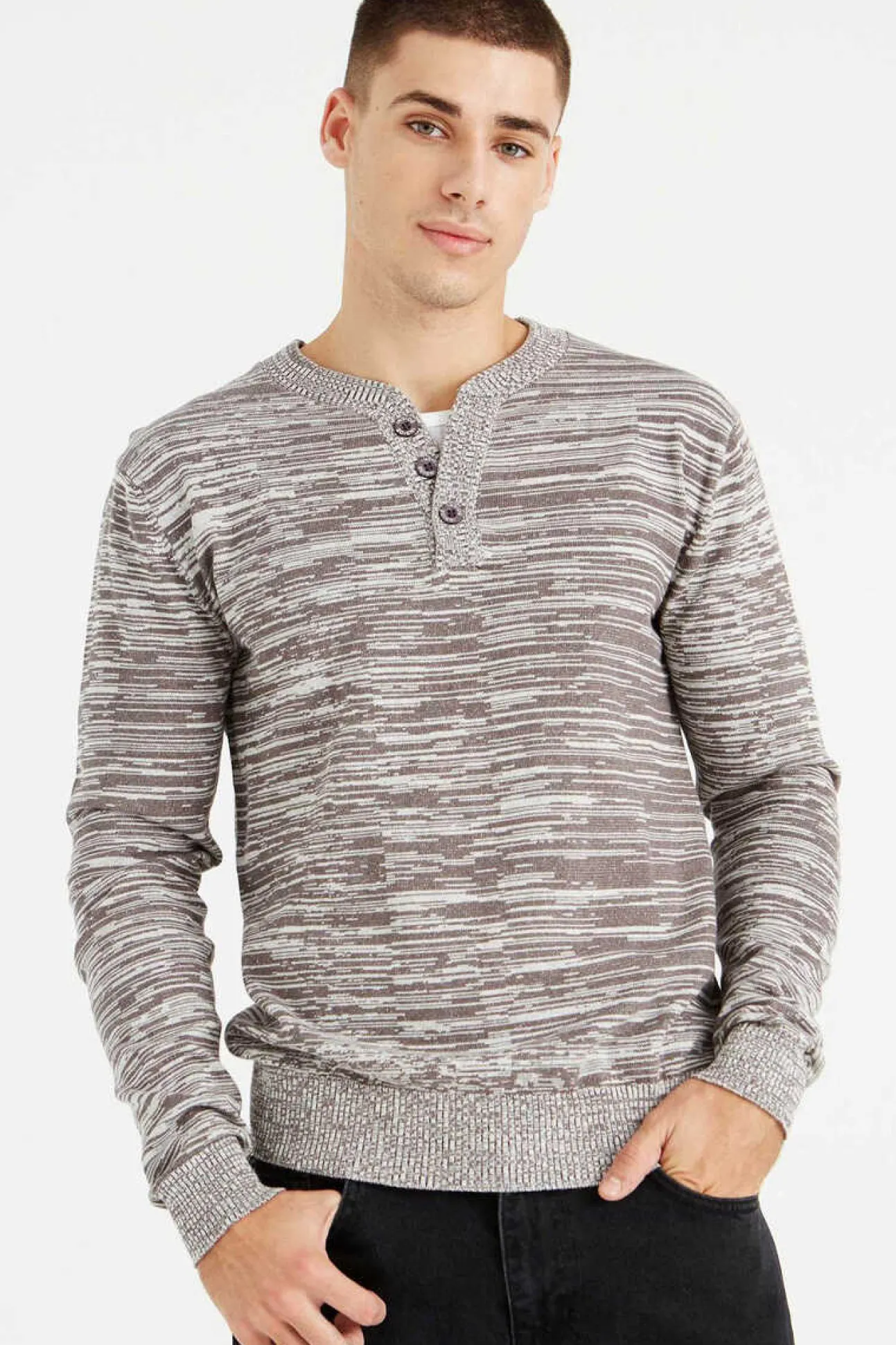 Camisola Regular De Manga Comprida E Gola Em Bico Com Botoes E Tecido Jaspeado.