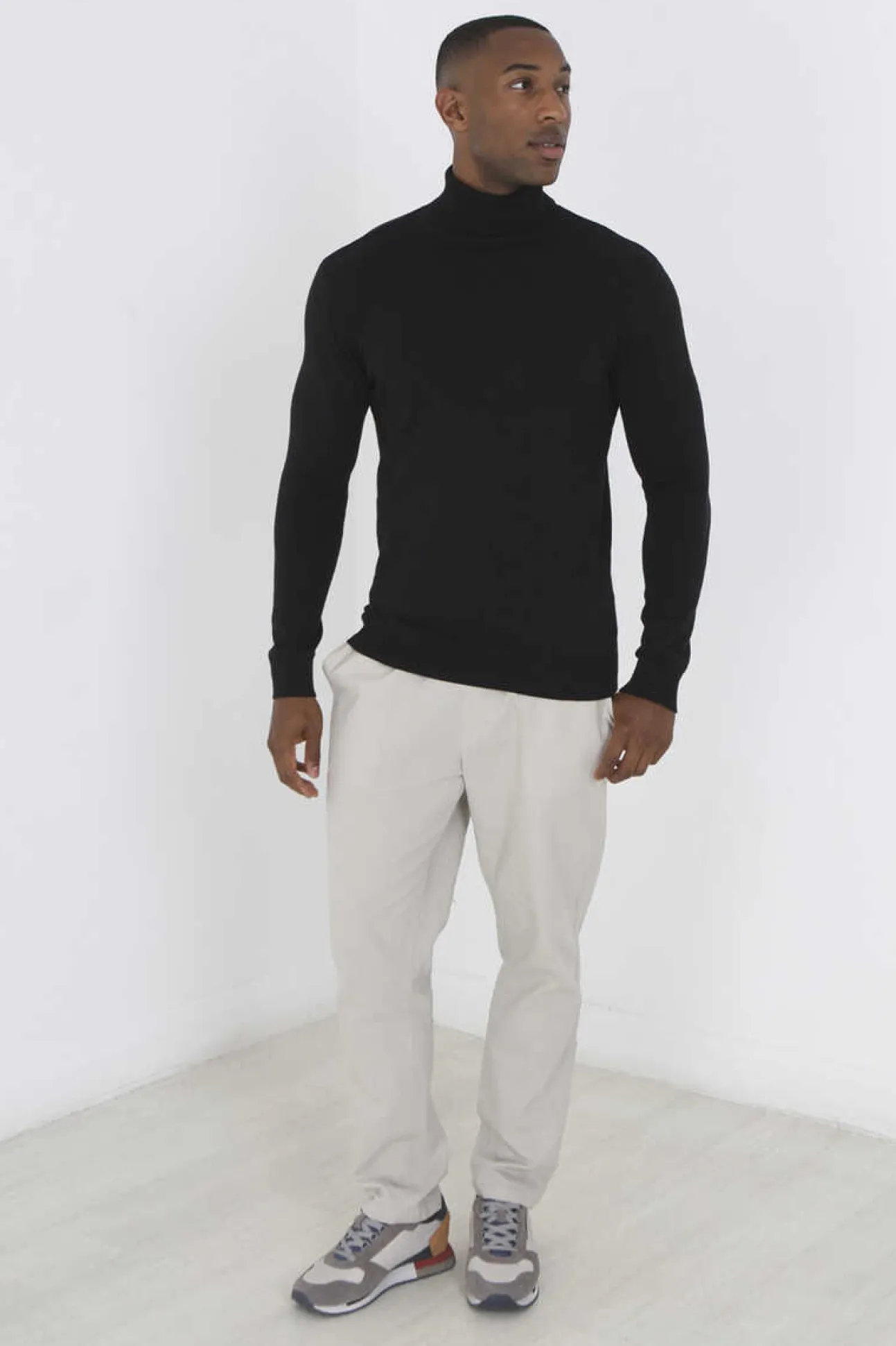 Camisola De Homem Com Gola Alta. Detalhe Canelado Na Gola, Bainha E Punhos