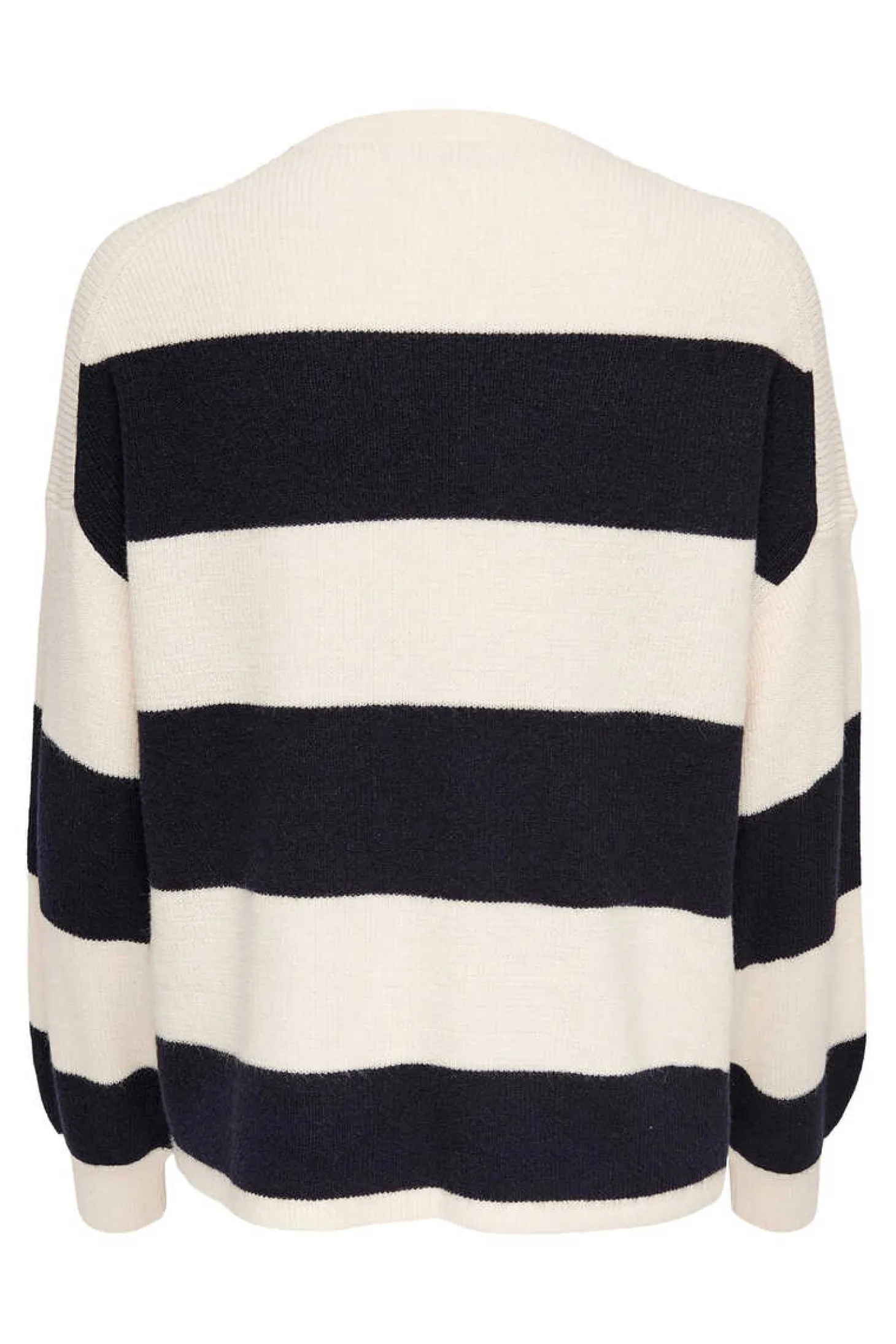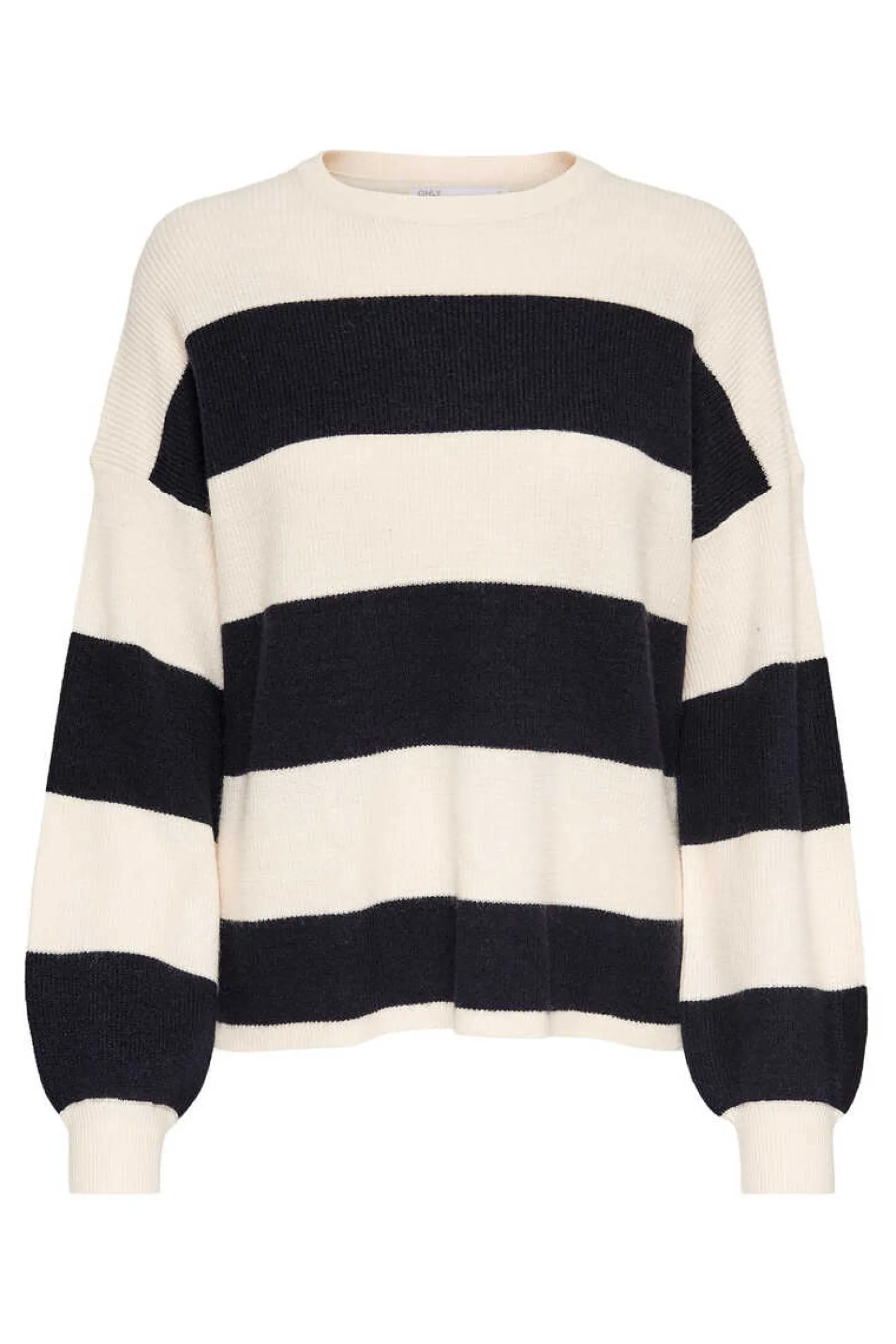 Camisola As Riscas Com Manga Comprida Ligeiramente Abalonada E Gola Redonda.