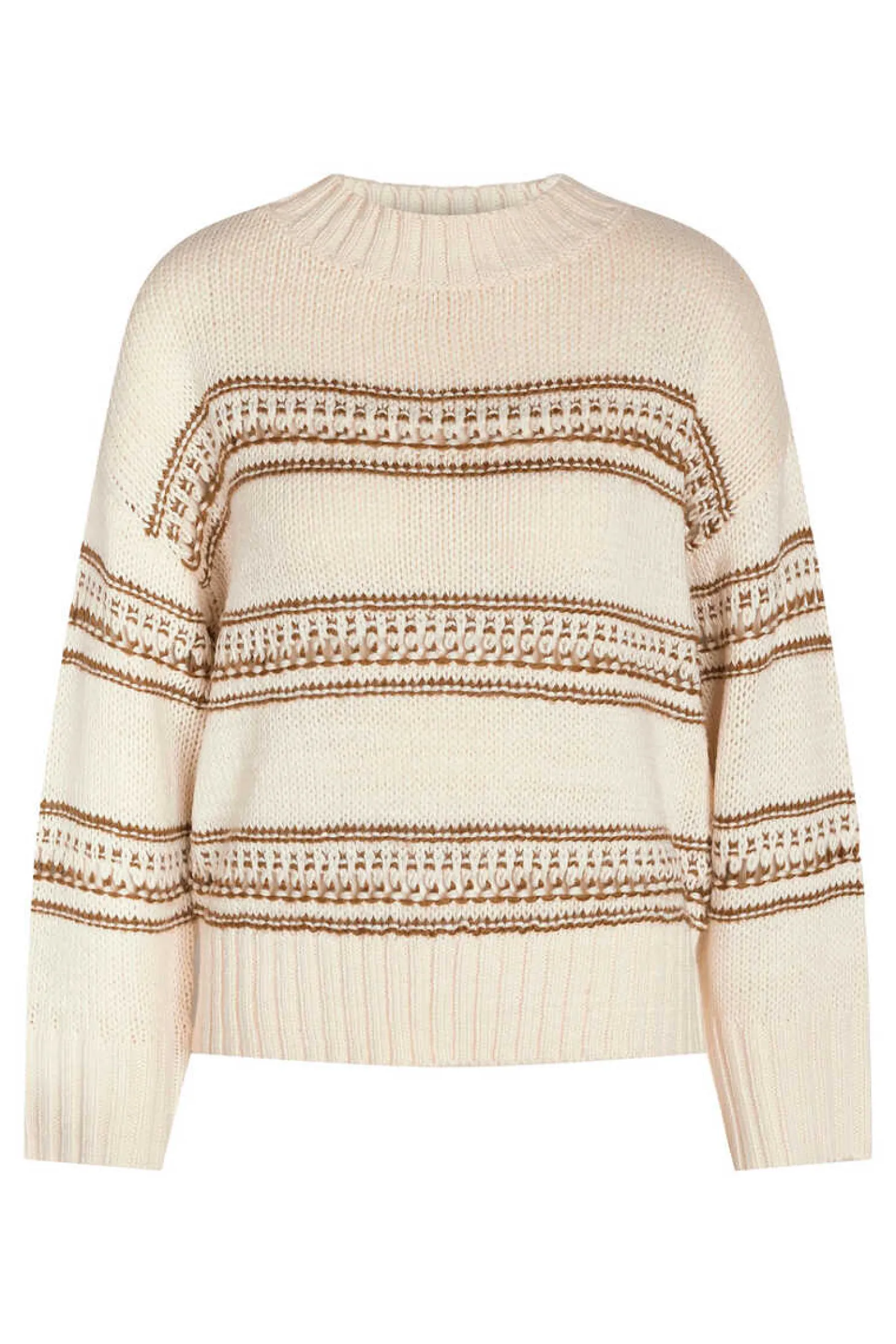Camisola De Malha Com Detalhe Em Cor Em Contraste De Tom, Com Decote Redondo, Mangas Compridas Com Ombros Descaidos, Gola, Bainha E Punhos Canelados.
