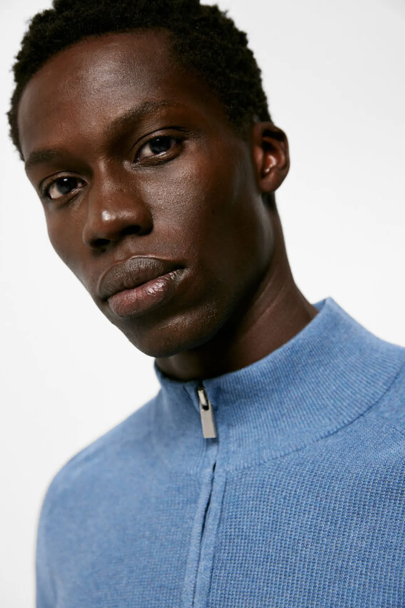 Jersey Estrutura De Gola Alta E Fecho-Eclair Em 100% Algodao. Cotoveleiras Efeito Pele.